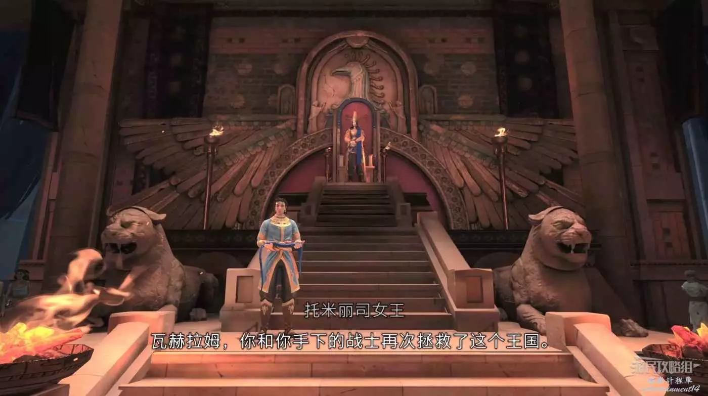 畫面一轉來到了波斯女王托米麗司的王座前,因為這次戰鬥薩爾貢的擊殺了貴霜人的將軍,女王決定讓波斯王子加薩尼授予薩爾貢皇家腰帶。