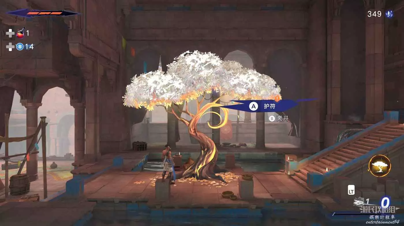 接著來到右側啟動天穹的存檔點,並選擇護符選項即可將福佑裝備到身上。