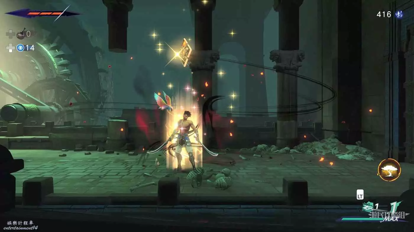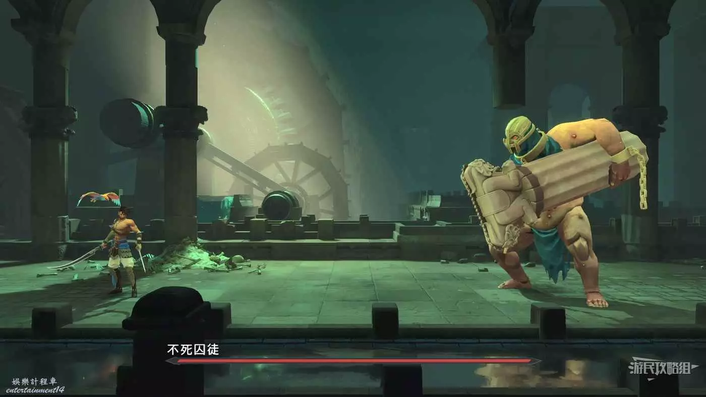不死囚徒的攻擊非常好躲,唯一的難點是格擋黃色光芒的攻擊,需要抓住柱子即將碰到我們的時機。