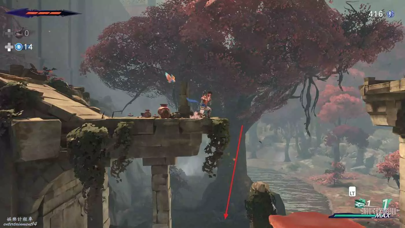 接著跳會剛剛的平台上,通過折返跳繼續往高處走觸發劇情。