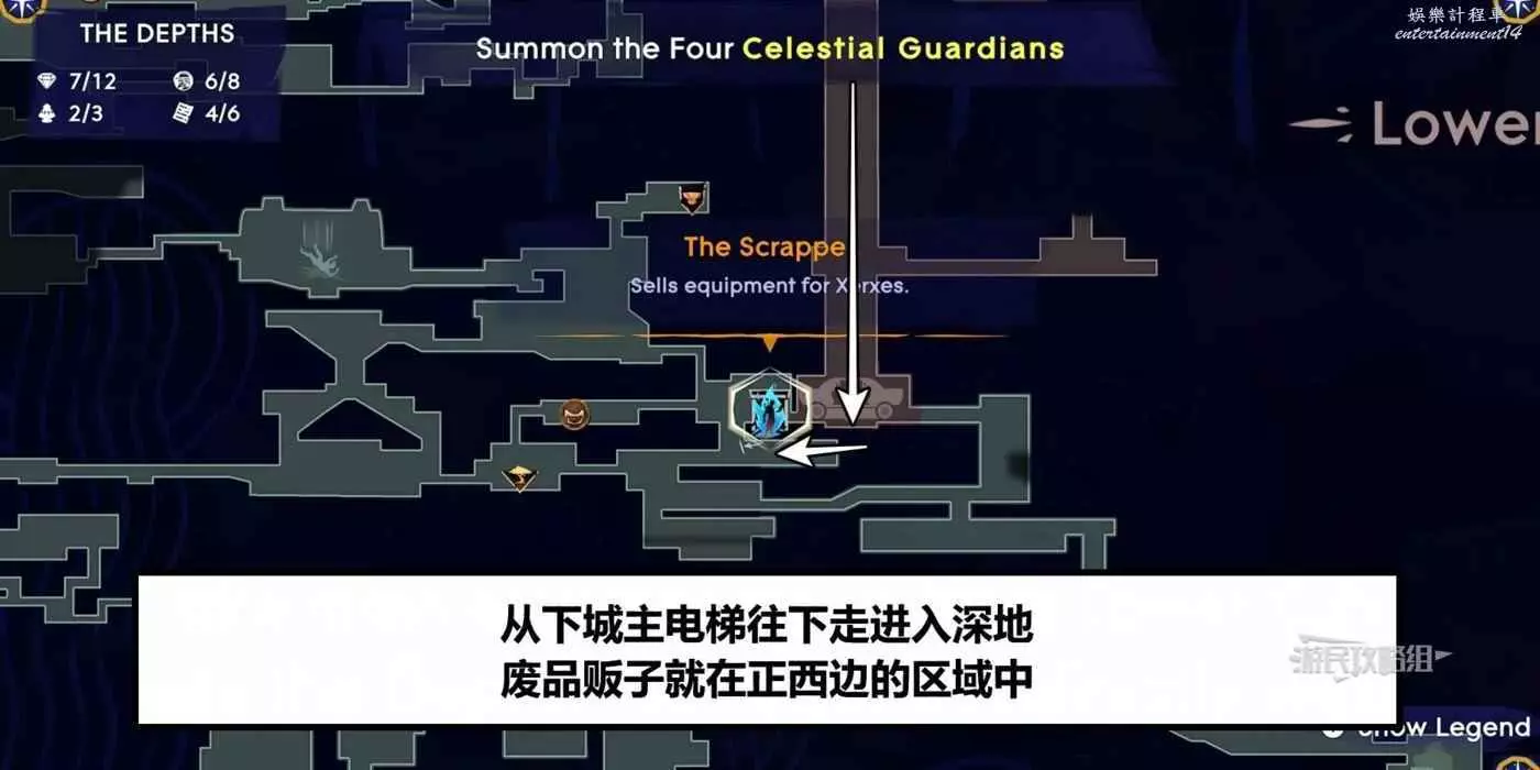 廢品販子位於深地,用薛西幣可以購買護符,位置如下圖所示。這裡出售3種護符: