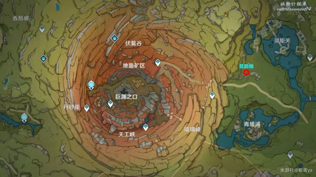 來到層岩巨淵和老戴匯合後進入對話,然後在附近展開調查。檢查附近所有的線索後得出的結論是四名礦工跟著一名小孩離開了礦區,和眾人討論後跟隨遺留的線索進行追查