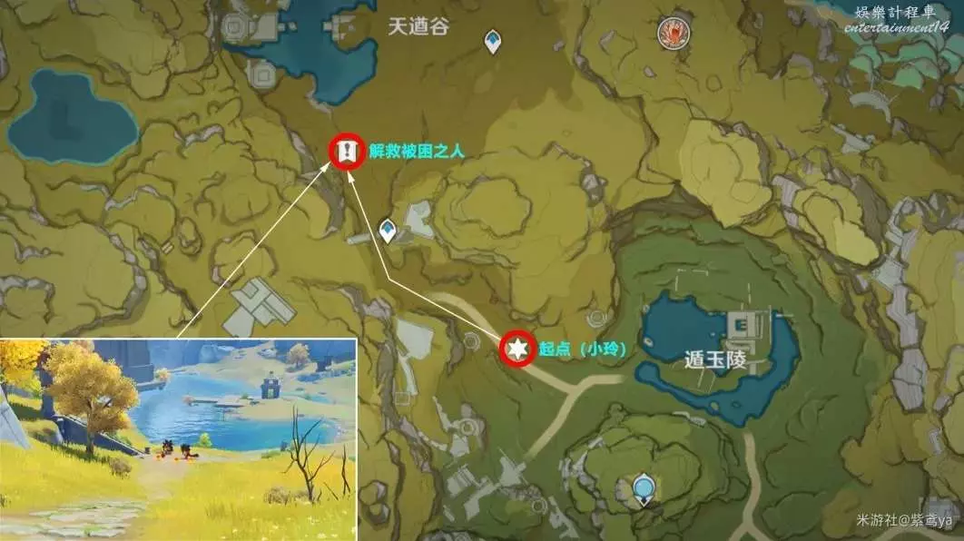沿著小玲所指的方向來到天遒谷後會遇到一名被魔物襲擊的女士,將魔物擊敗後與她對話得知她是來自璃月港盛露廳的婉玉。然後她會告訴我們有關失蹤礦工的消息,後經過昆鈞確定了是同一批人