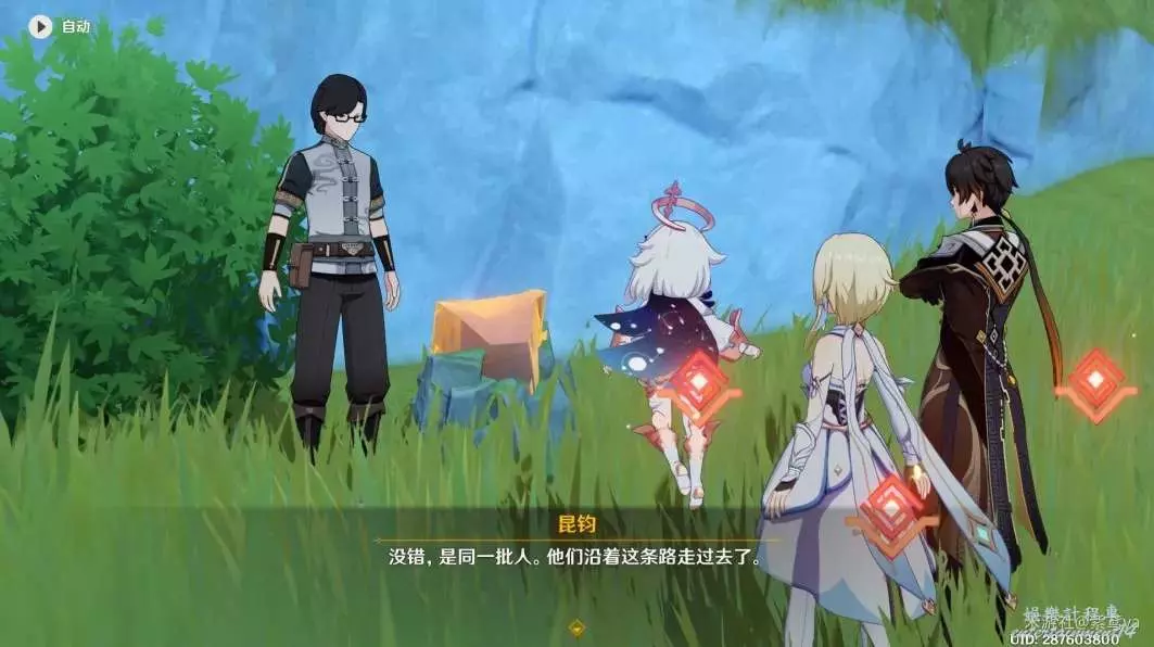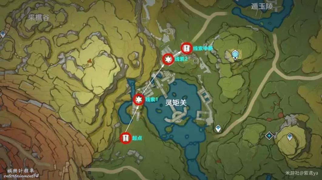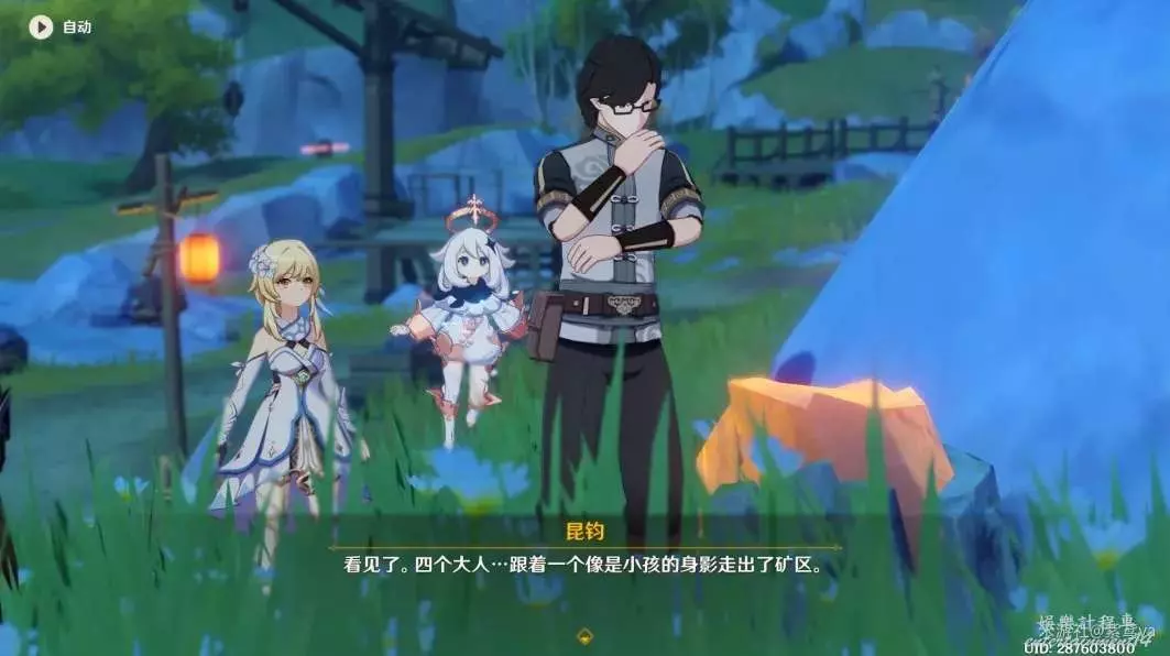 與昆鈞對話後跟著遺留的線索往北方向追查,抵達最後位置時線索卻中斷了。接著向附近的人詢問資訊,與小玲對話得知礦工和小孩往西北方向去了