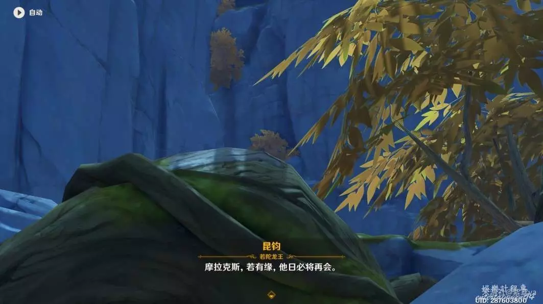 成功擊敗若陀龍王後離開秘境,然後返回古樹後方的洞穴入口處靠近老戴觸發對話。對話結束後附身在昆鈞身上的若陀龍王便消散了,最後在和鐘離對話即可完成任務