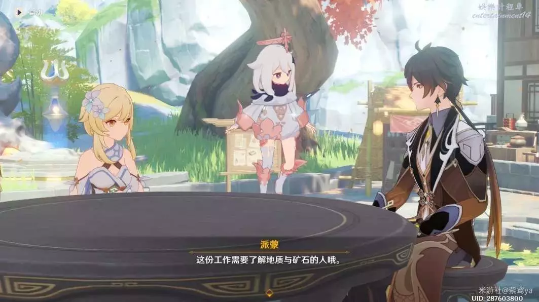 和鐘離對話後通知昆鈞前往南天門北邊的古樹下調查,在觸碰石碑的一瞬間他應該恢復記憶了。然後沿著鐘離的聲音前往古樹後方的洞穴中調查,在這裡終於找到了失蹤的礦工