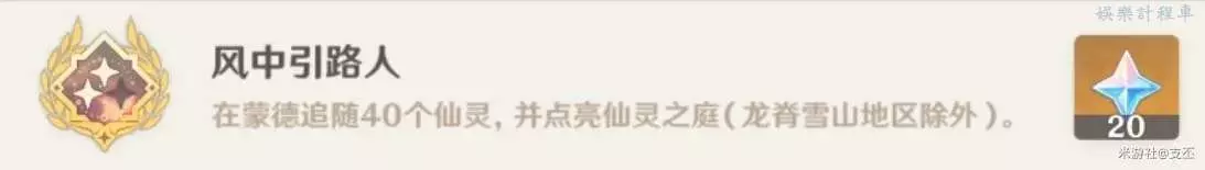 追隨仙靈歸位,完成10/20/40只仙靈,獲得成就——風中引路人,會分別獎勵5/10/20原石