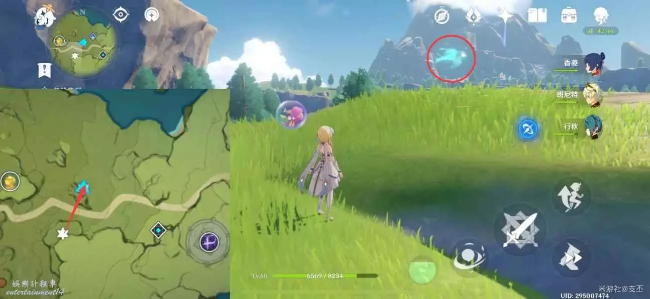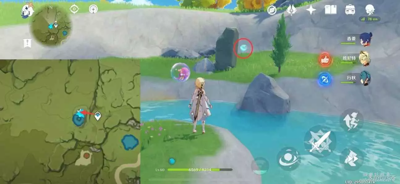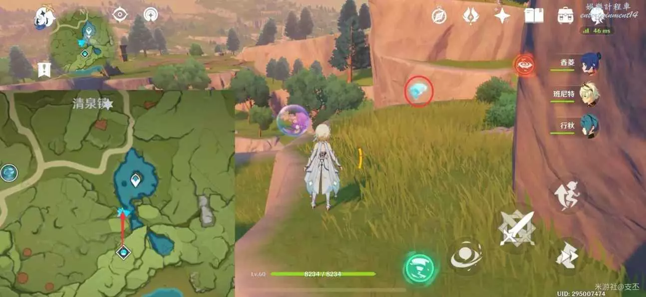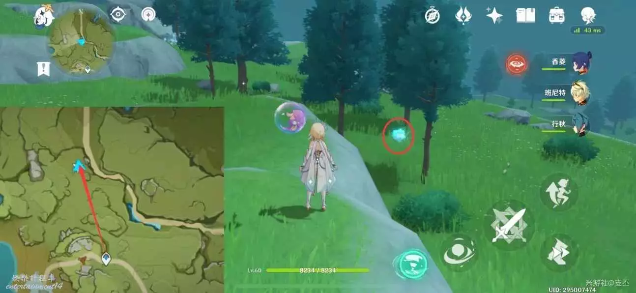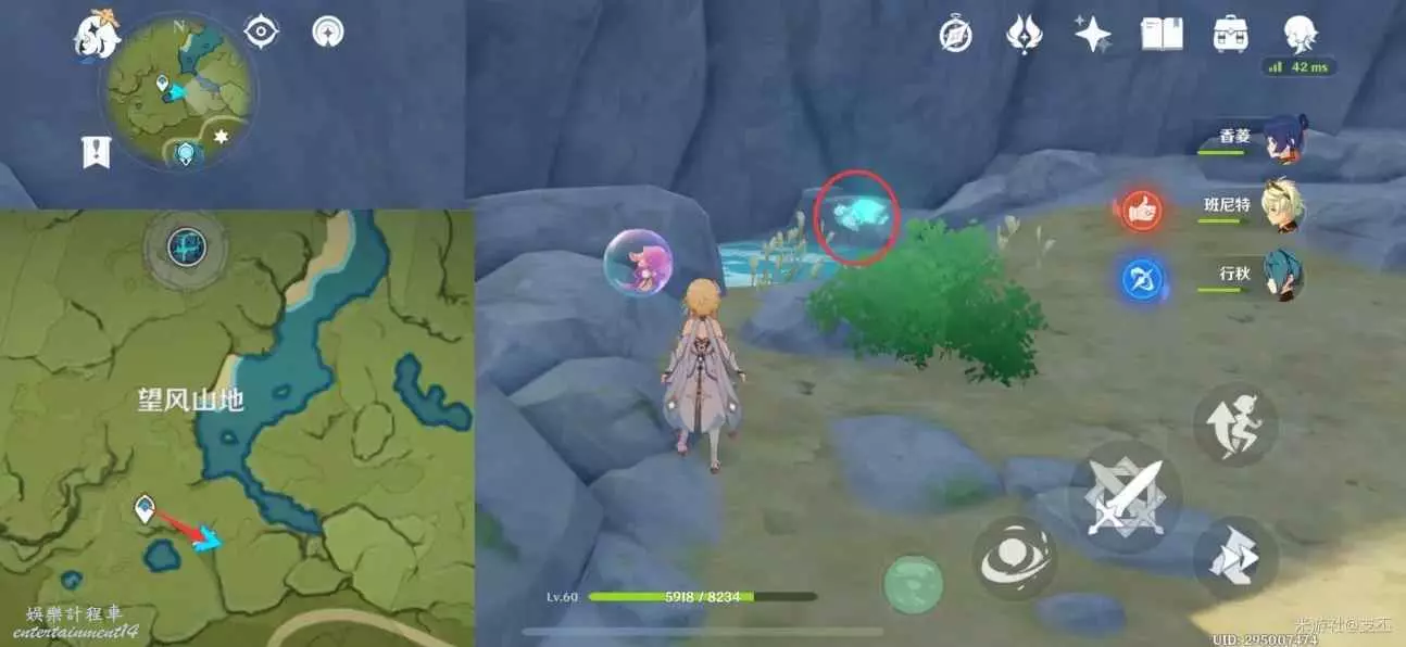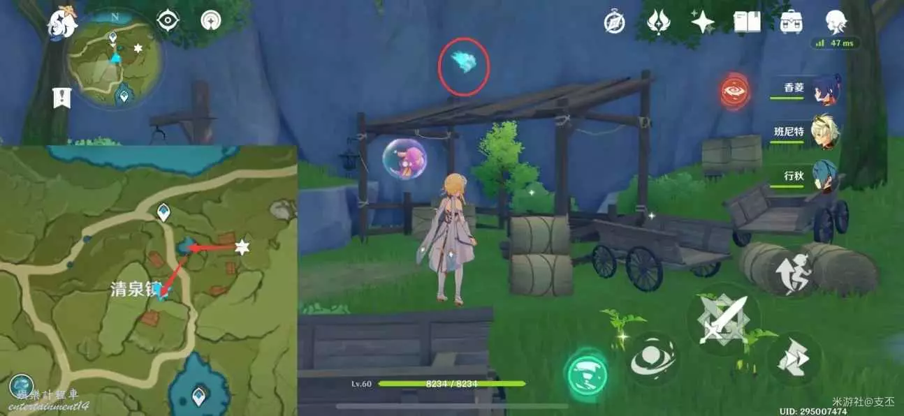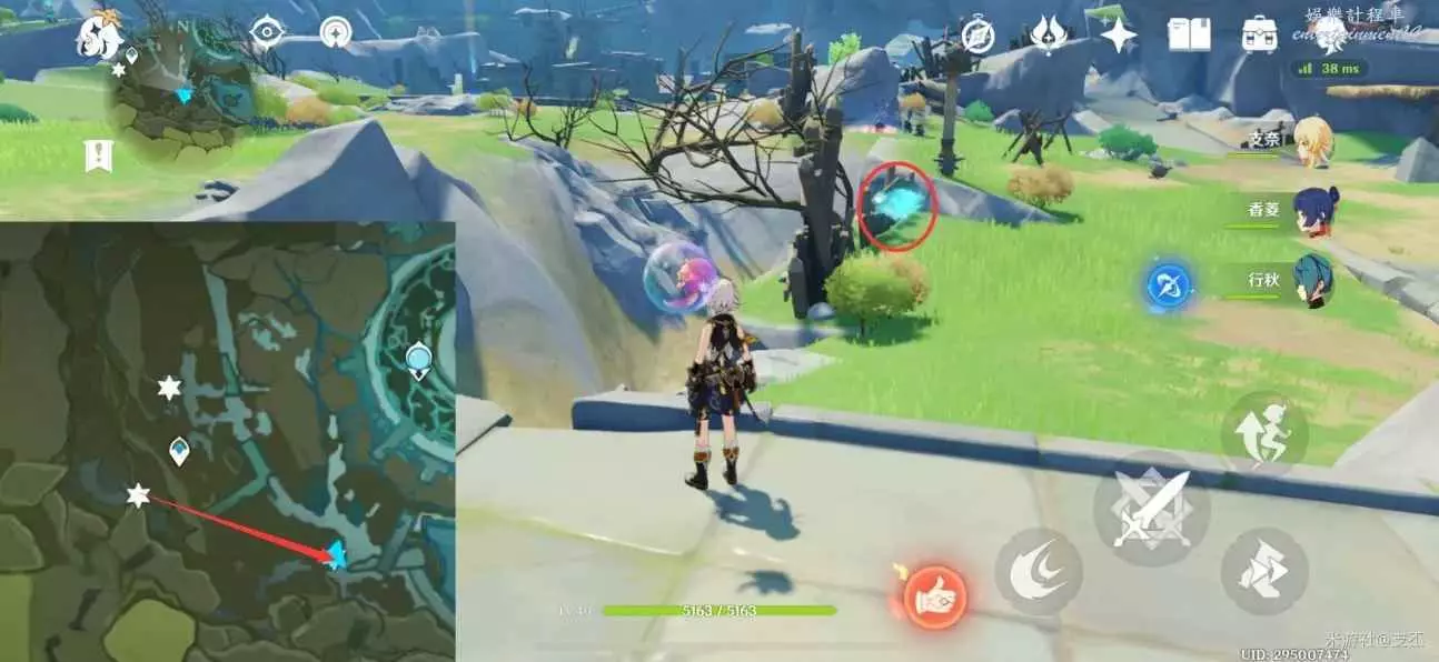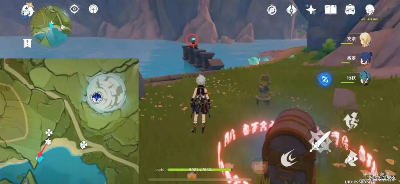 仙靈在寶箱左邊湖面平台上,一路跟隨、歸位