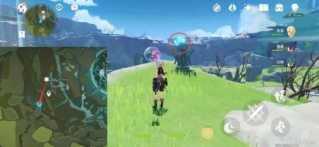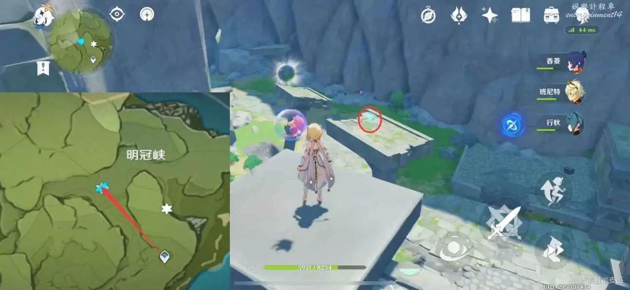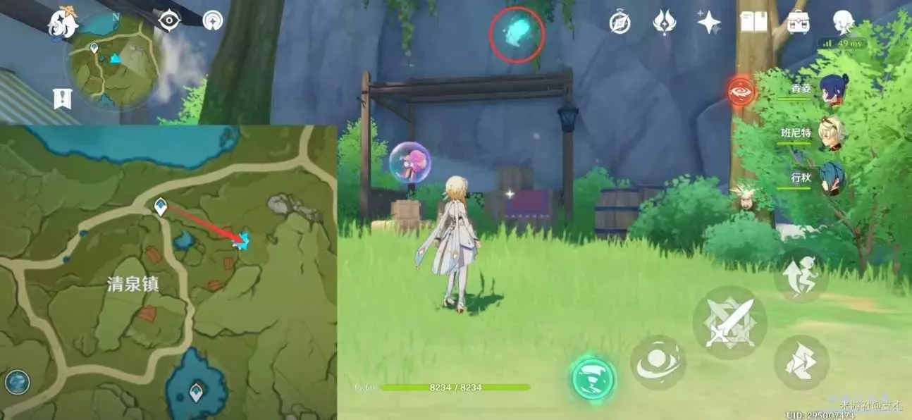 仙靈在斜柱周圍,跟隨仙靈歸位,獲得精緻寶箱(2原石)