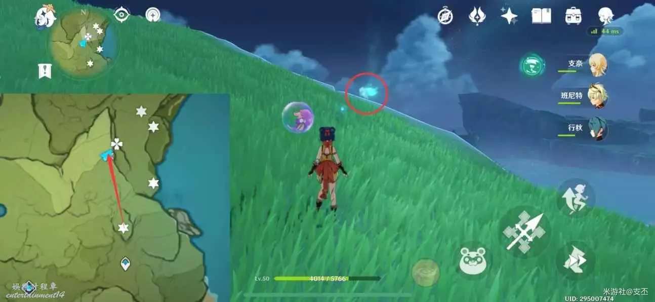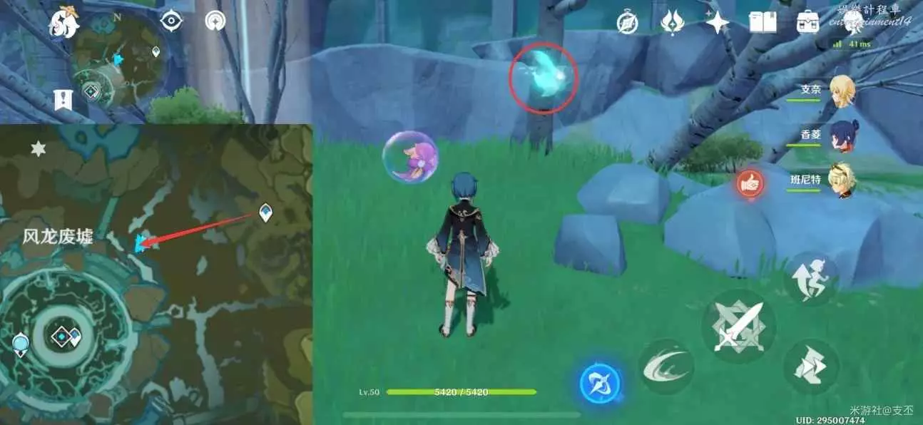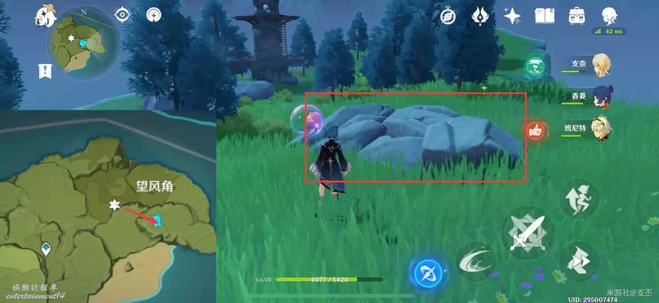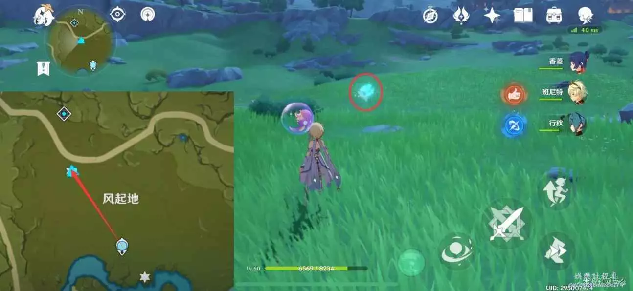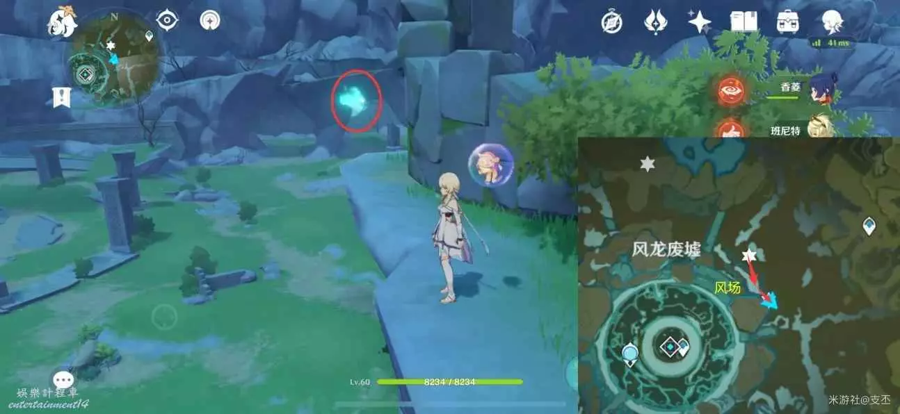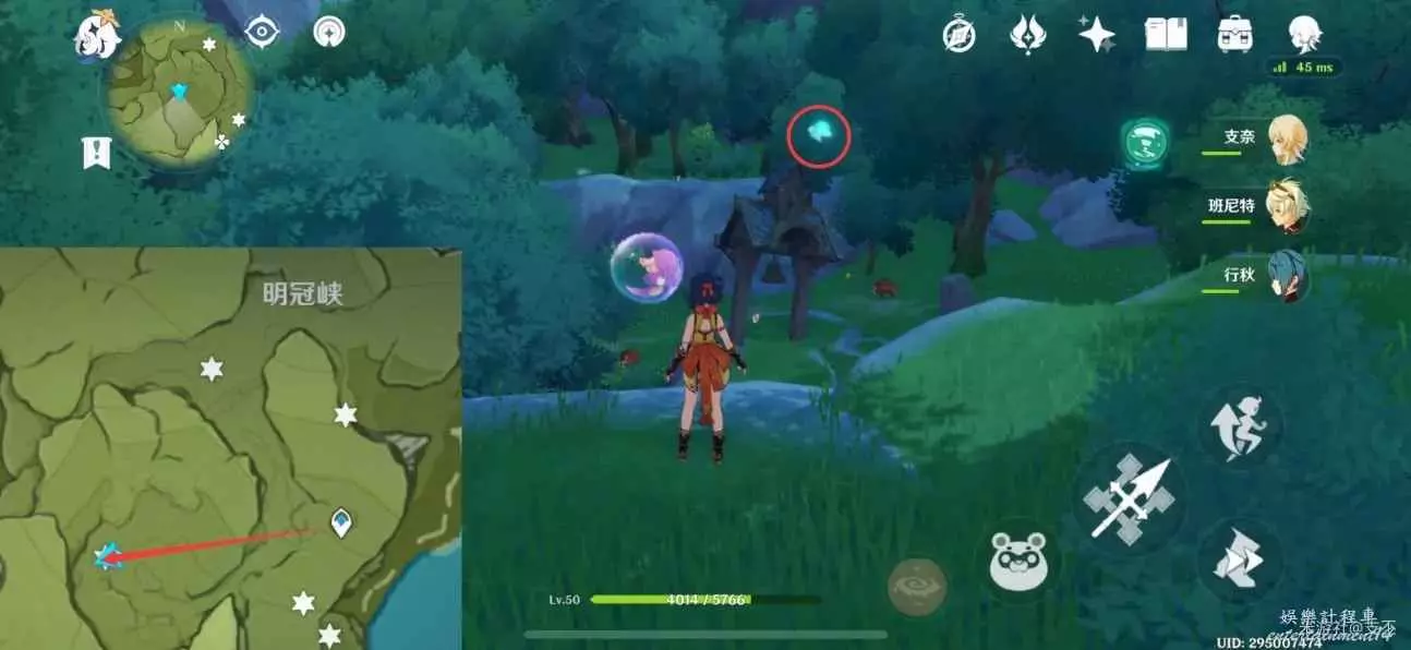 仙靈在灌木叢旁,跟隨仙靈歸位,然後穿過風圈,獲得精緻寶箱(2原石)