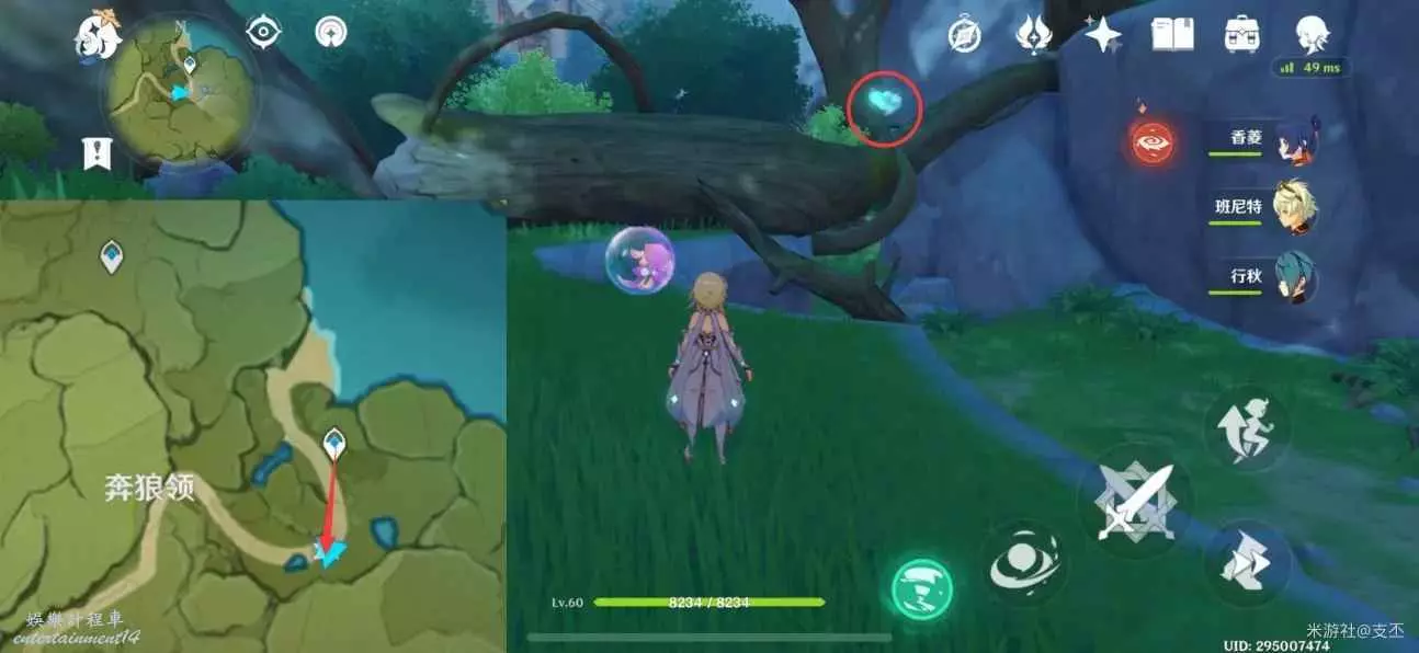 仙靈在橫著的樹處,跟隨仙靈歸位,獲得精緻寶箱(2原石)