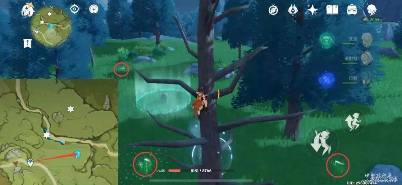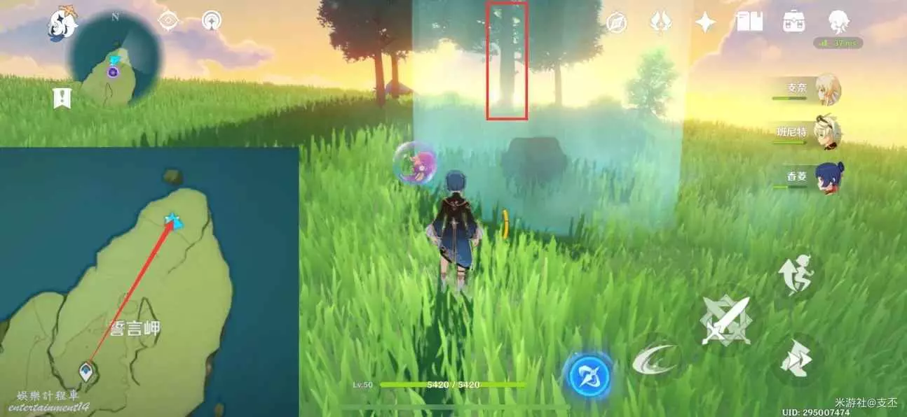 風屏障內有個珍貴寶箱(5原石),可以從樹上飛下來獲取
