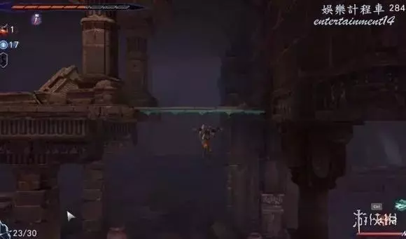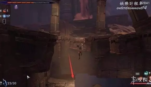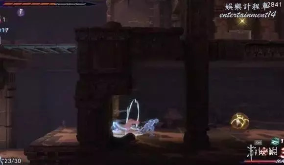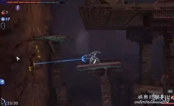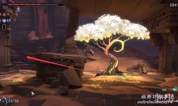 第三步:跳下來一直往右,可以看到一個黃色的能量石,擊碎它並快速返回往左跑。