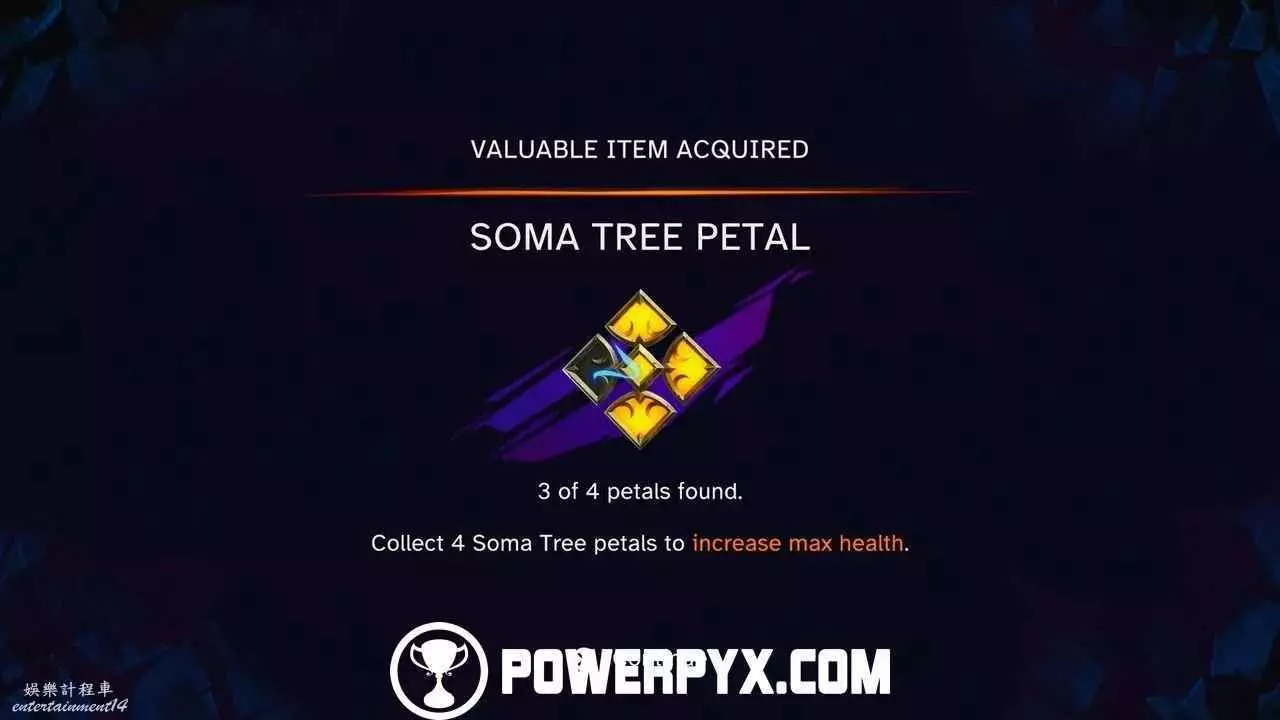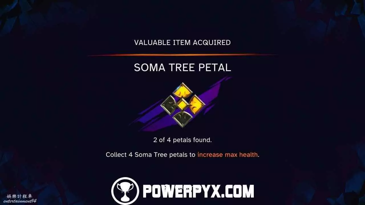 獲得4個小索瑪樹花瓣或者1個大花瓣可以增加生命值。不用擔心漏掉任何一個索瑪樹花瓣,在通關主線後依然可以自由探索並返回收集。