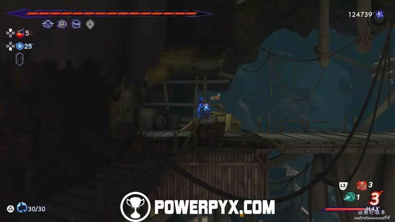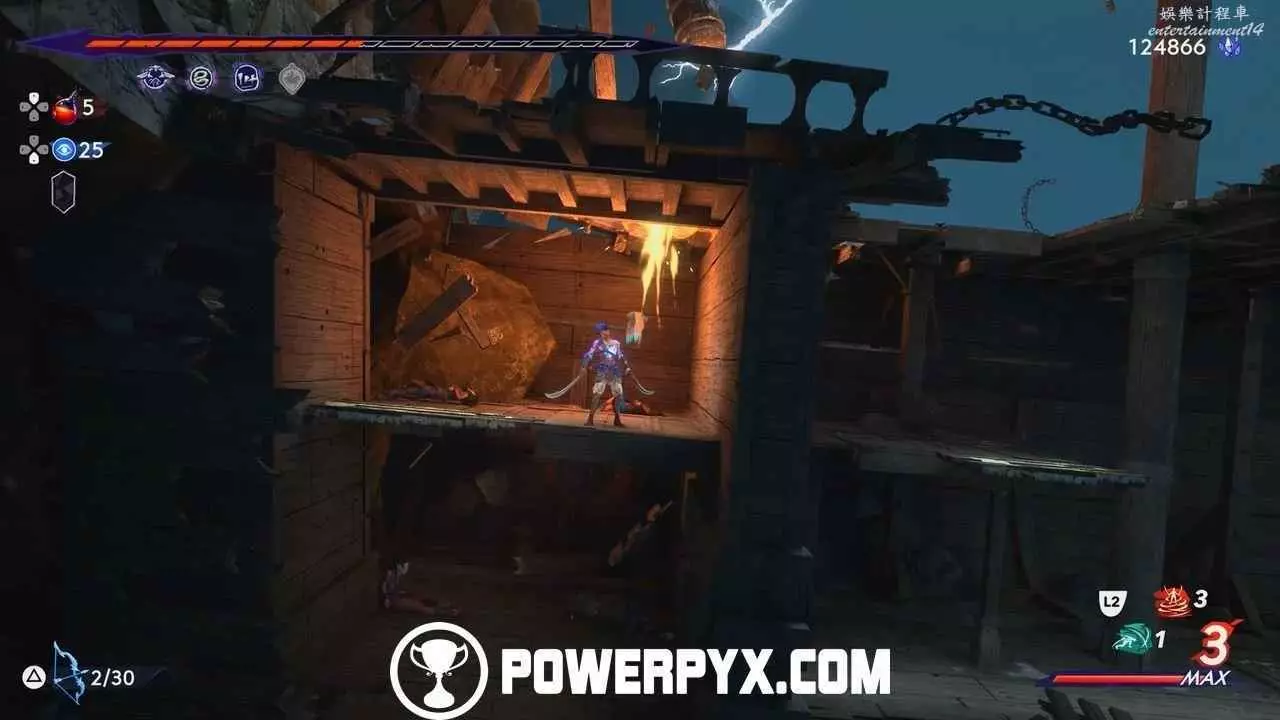 要進入幽靈船區域,需要先穿過索瑪樹,然後進入隱秘村落,沿路走到右側跑酷越過障礙,然後利用時之纖維能力下降到船所在位置。