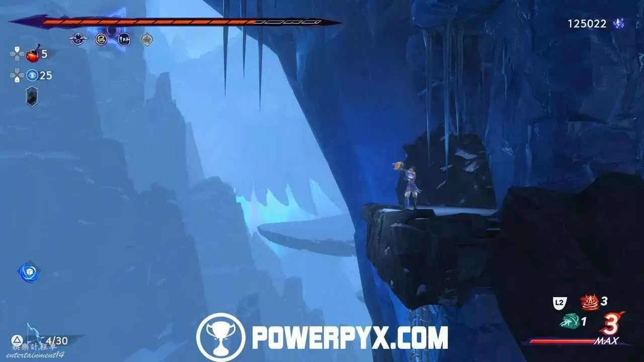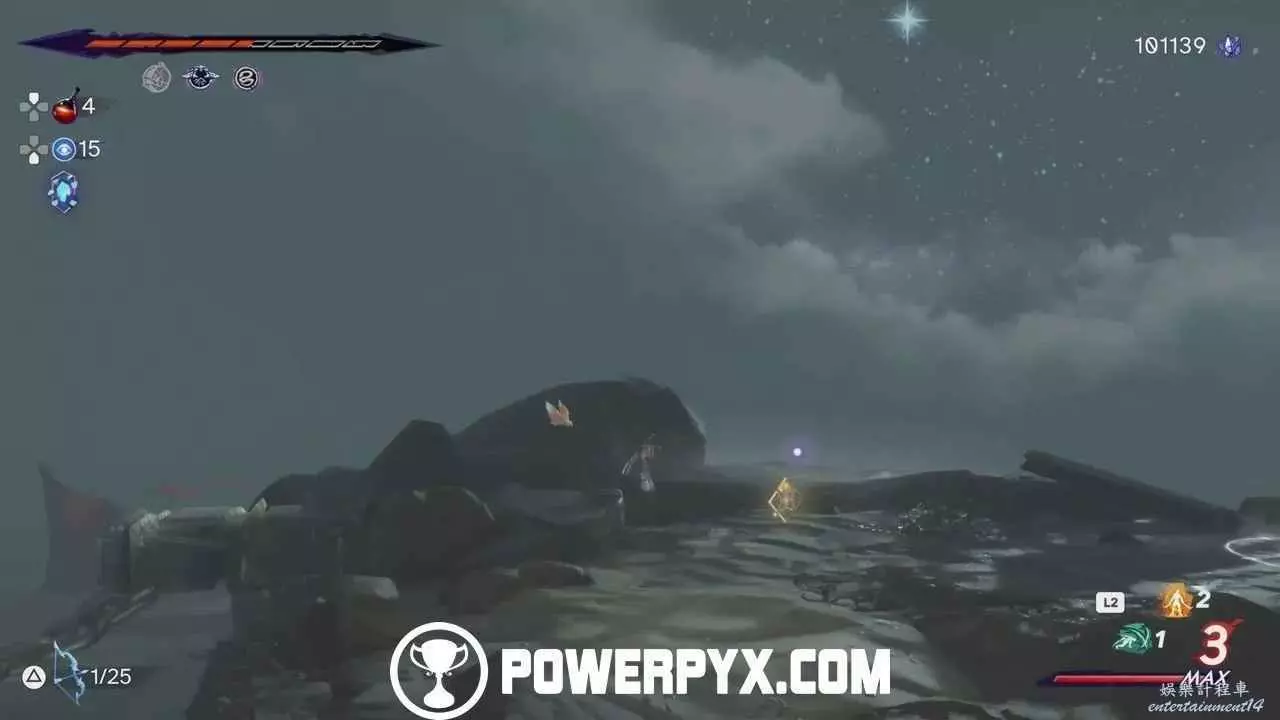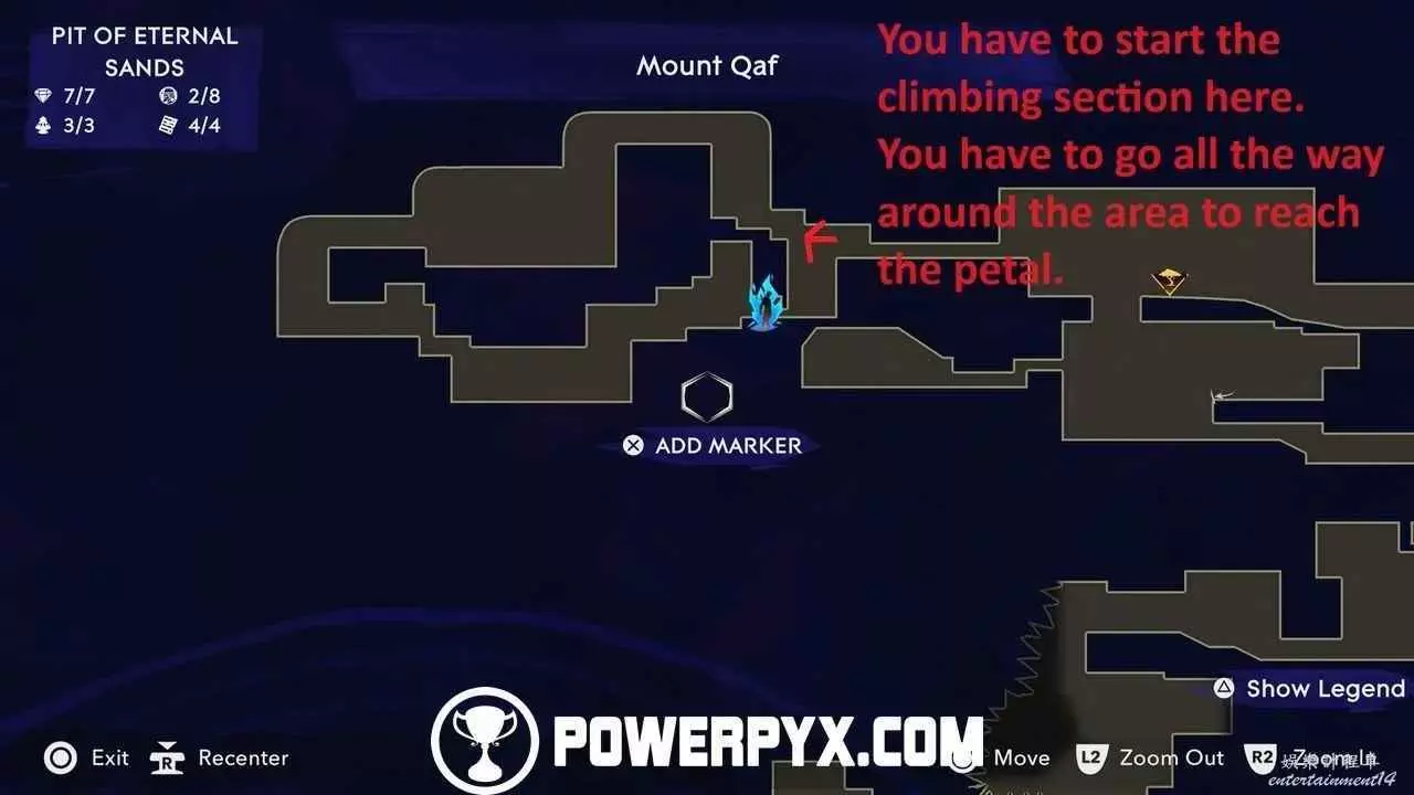 必須完成很長一段攀爬才能到達花瓣所在位置,在下圖所示區域的盡頭。