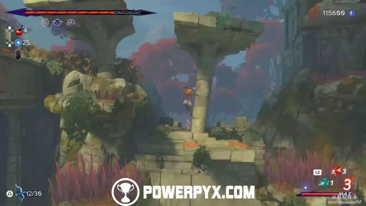 第三次跑到中間那層,直接跑到盡頭收集卷軸,上方會開啟一個區域,跳上去即可拿到索瑪樹花瓣。