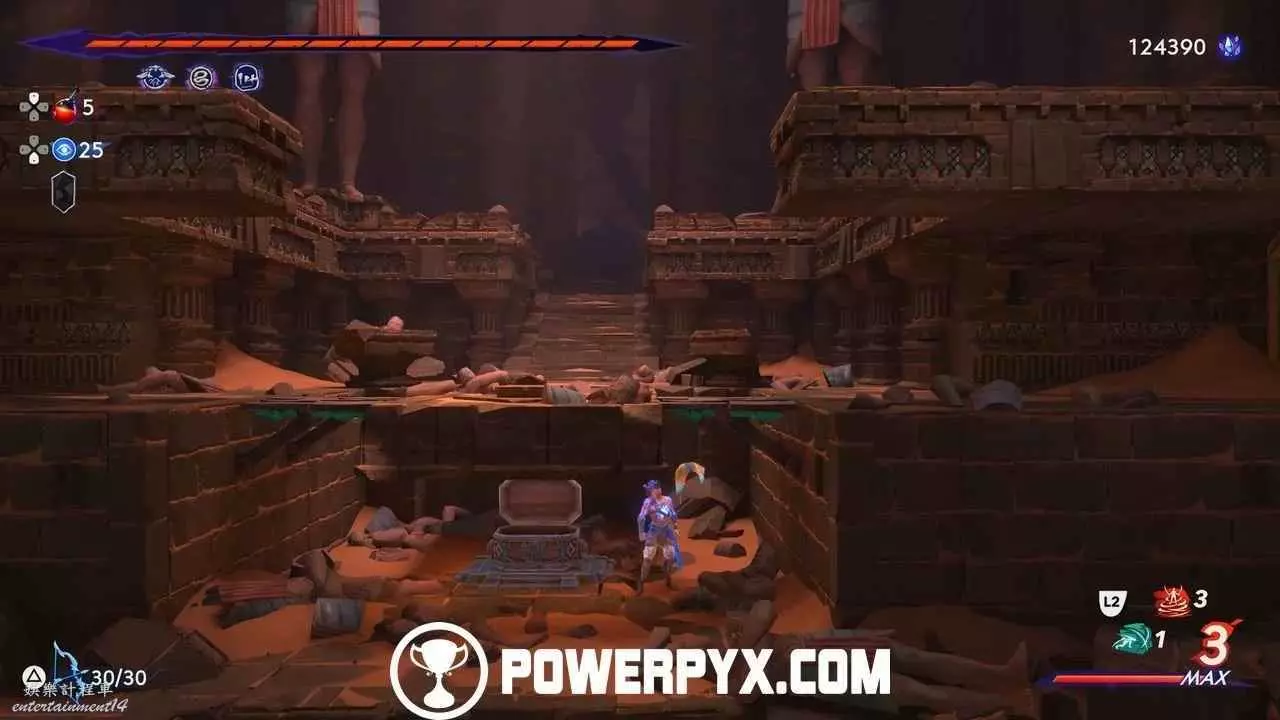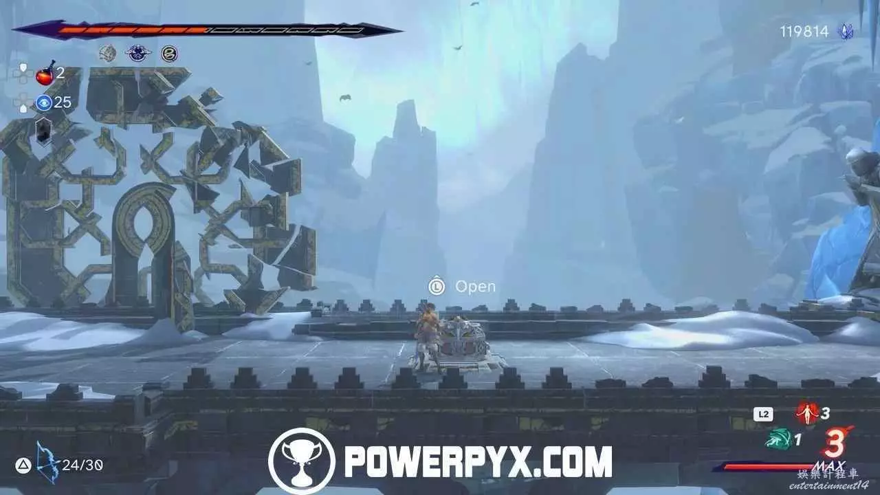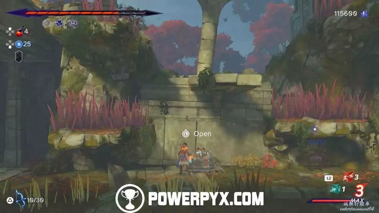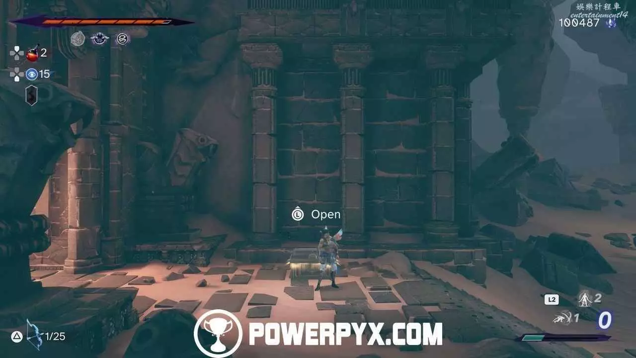 開啟此寶箱需要先用蛇石碾碎一個巨大的雕像敵人,敵人位置如下圖所示。