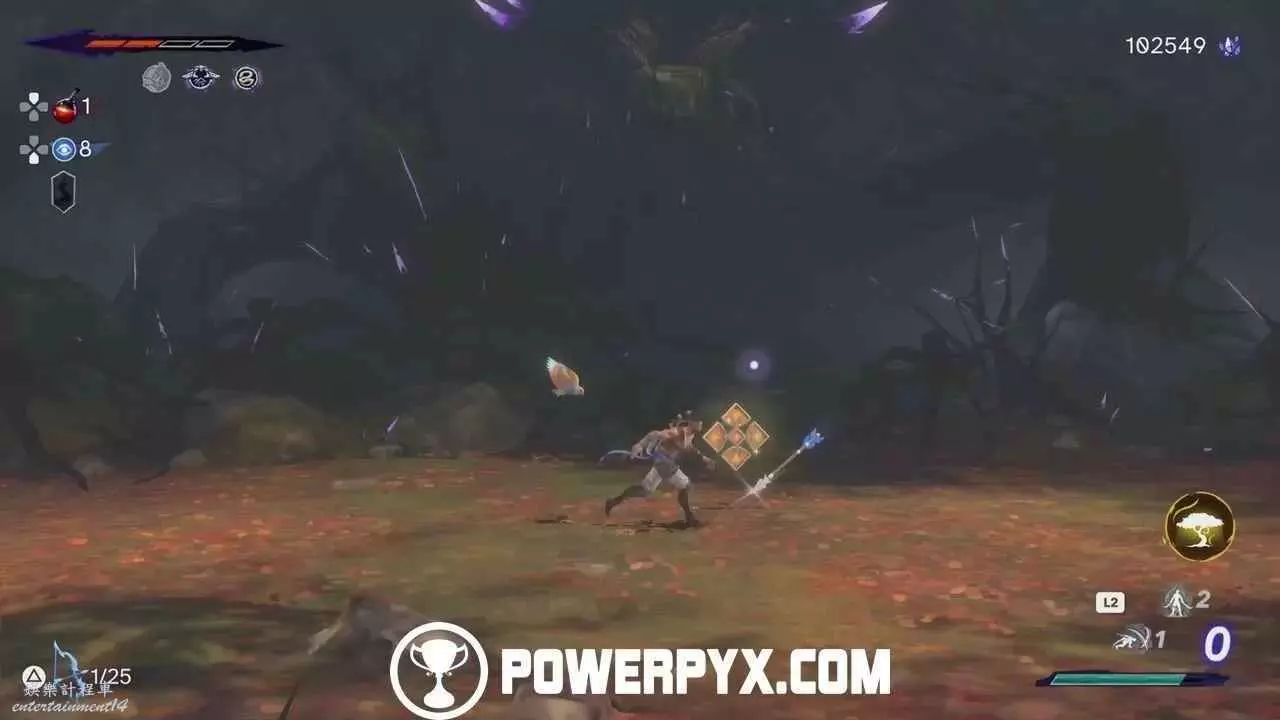 此謎題需要割掉四個平台上的所有紅色的草,在它們重新長出來之前保證四個平台上所有紅色的草都被割掉。一個比較簡單的方法就是在右上方平台上扔一個爪子。