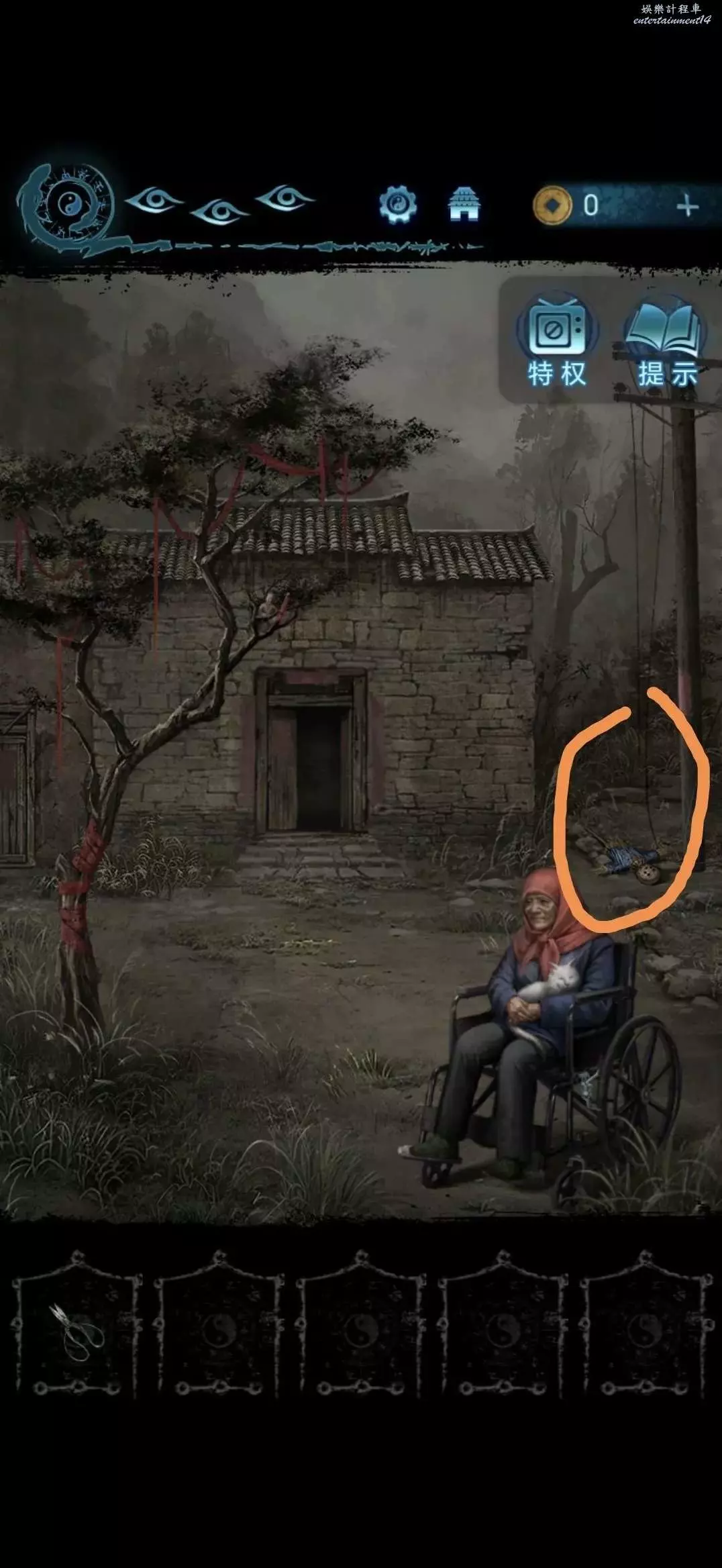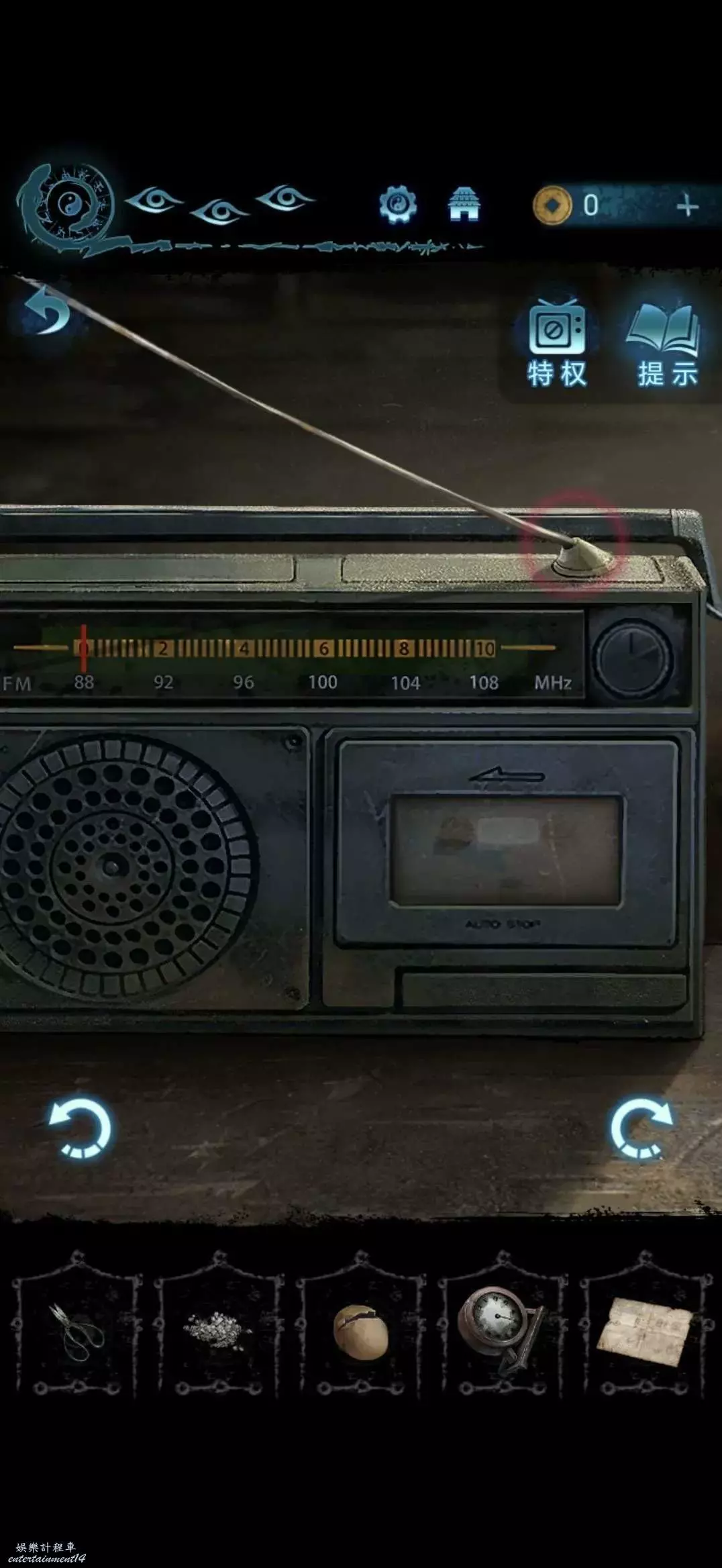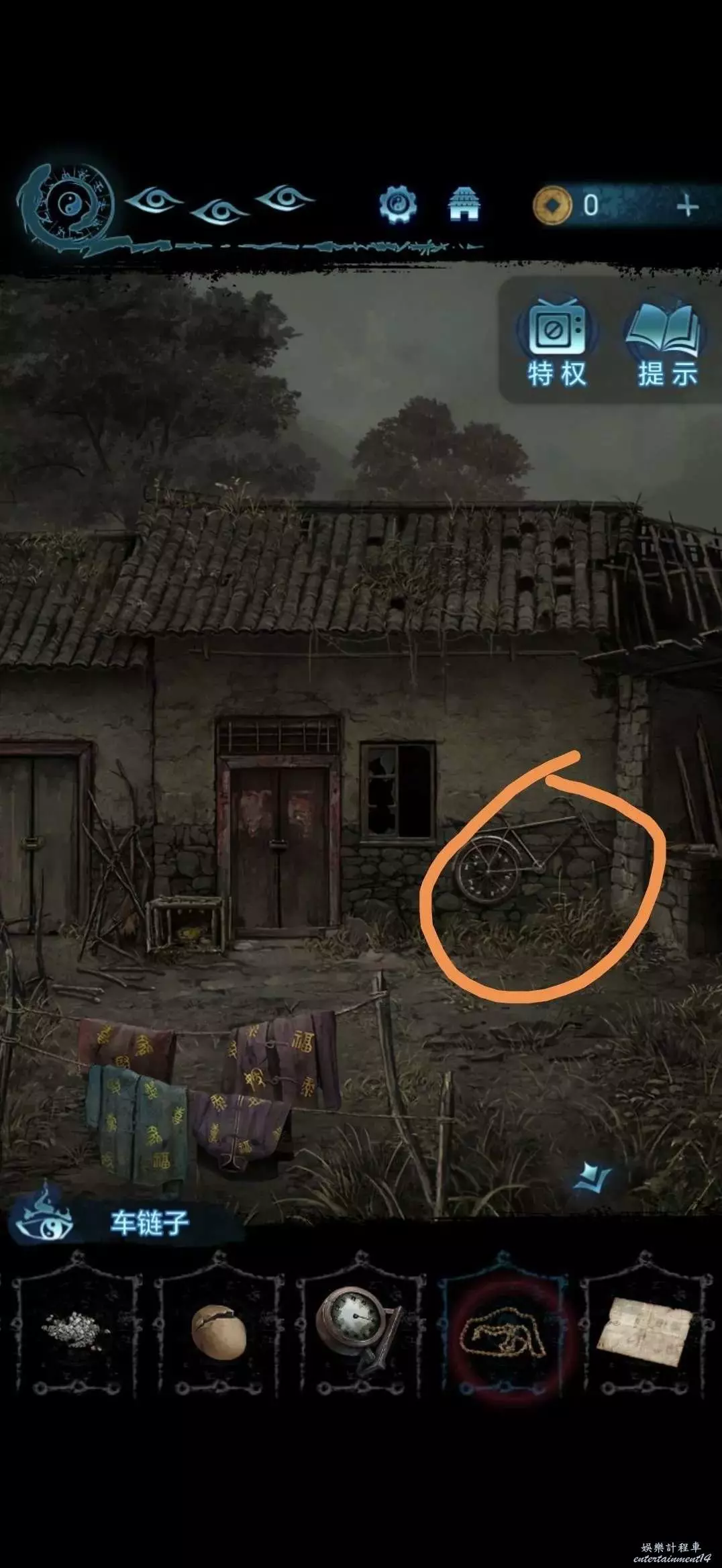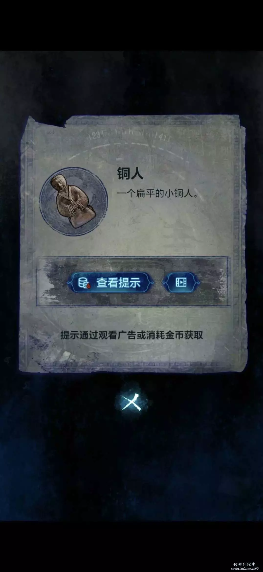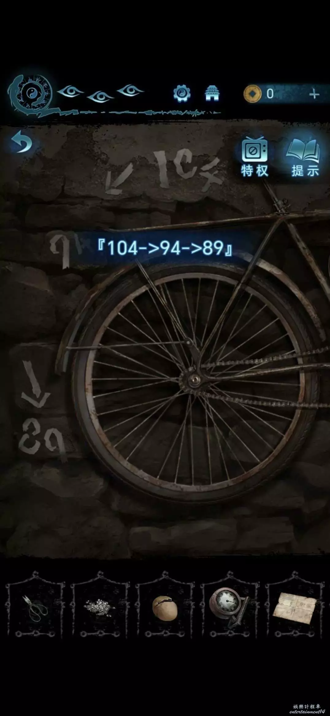 把輻條插在房間內桌子上的收音機上,根據自行車牆上給出的提示切換音訊(104→94→89),過劇情,點擊婆婆場景裡的樹枝,獲得銅人