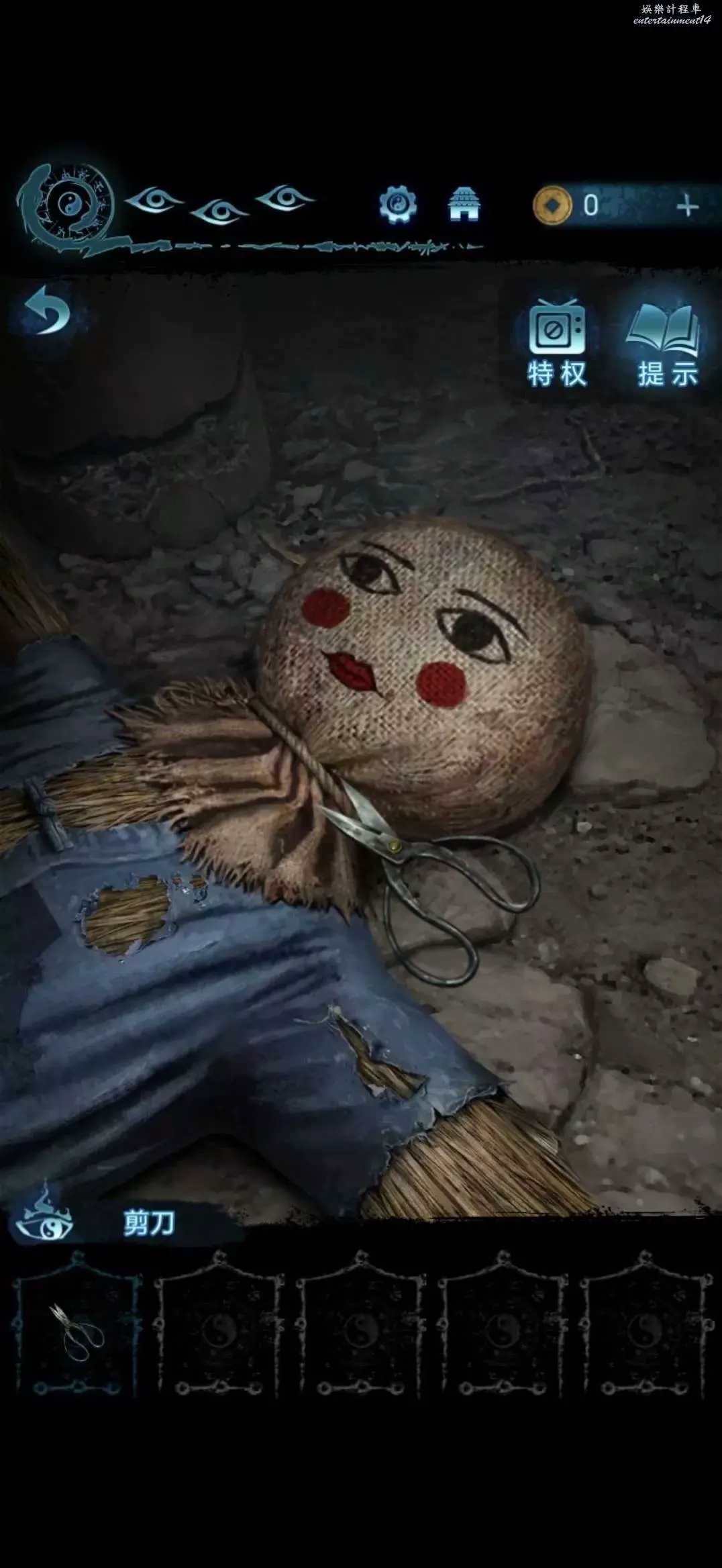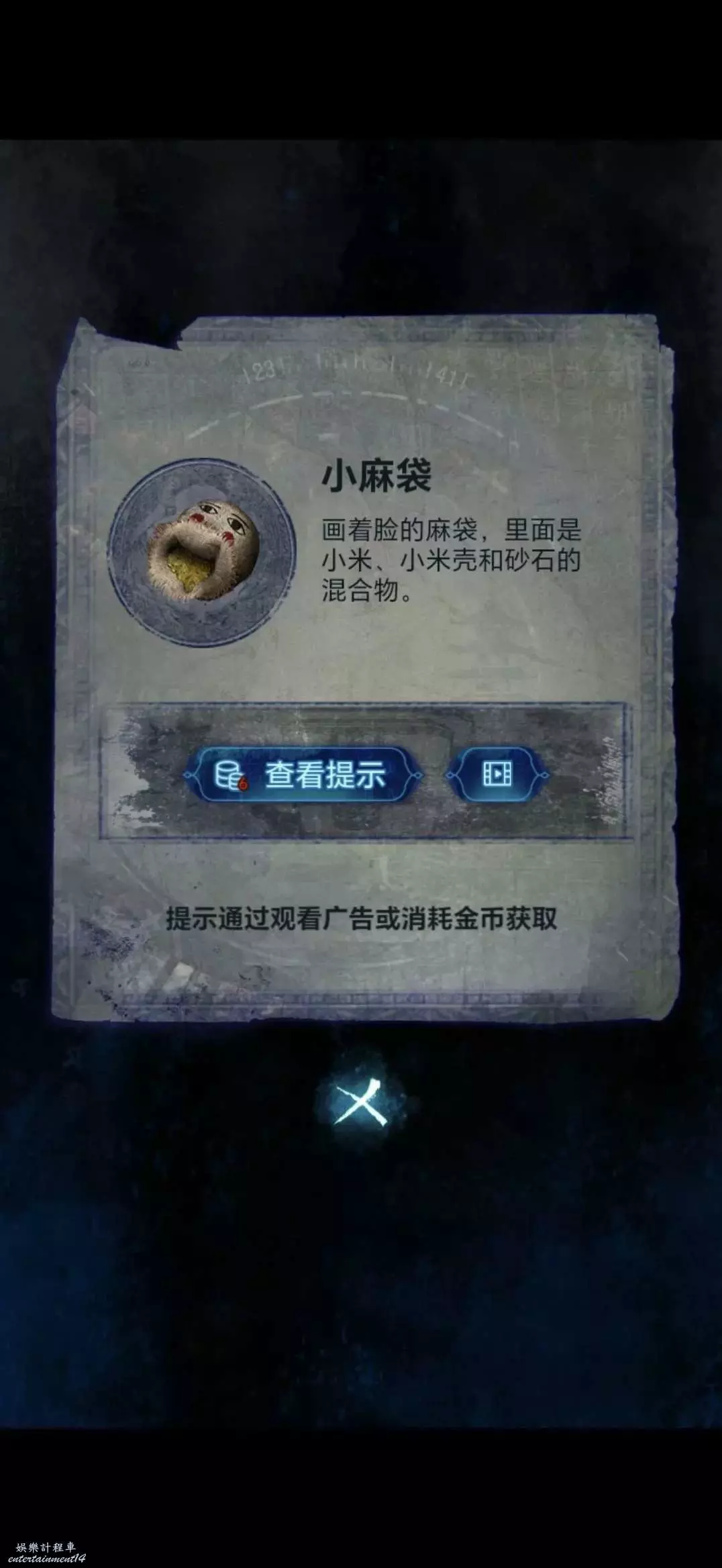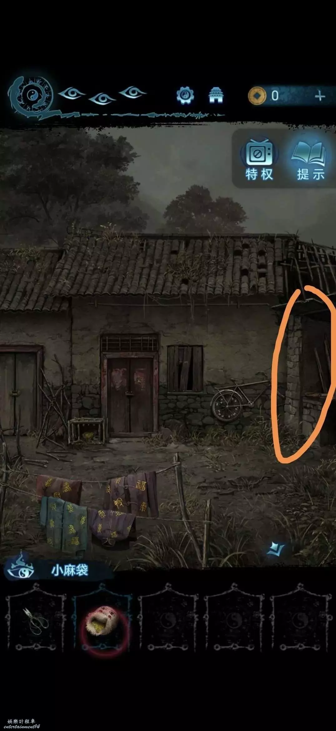 過劇情,點擊房子旁邊的稻草人,用剪刀剪開稻草人脖子上的繩子,獲得小麻袋