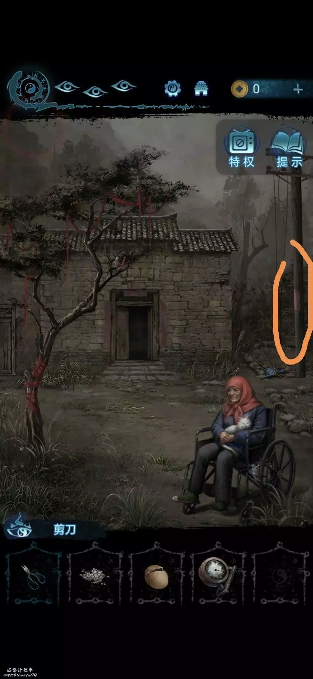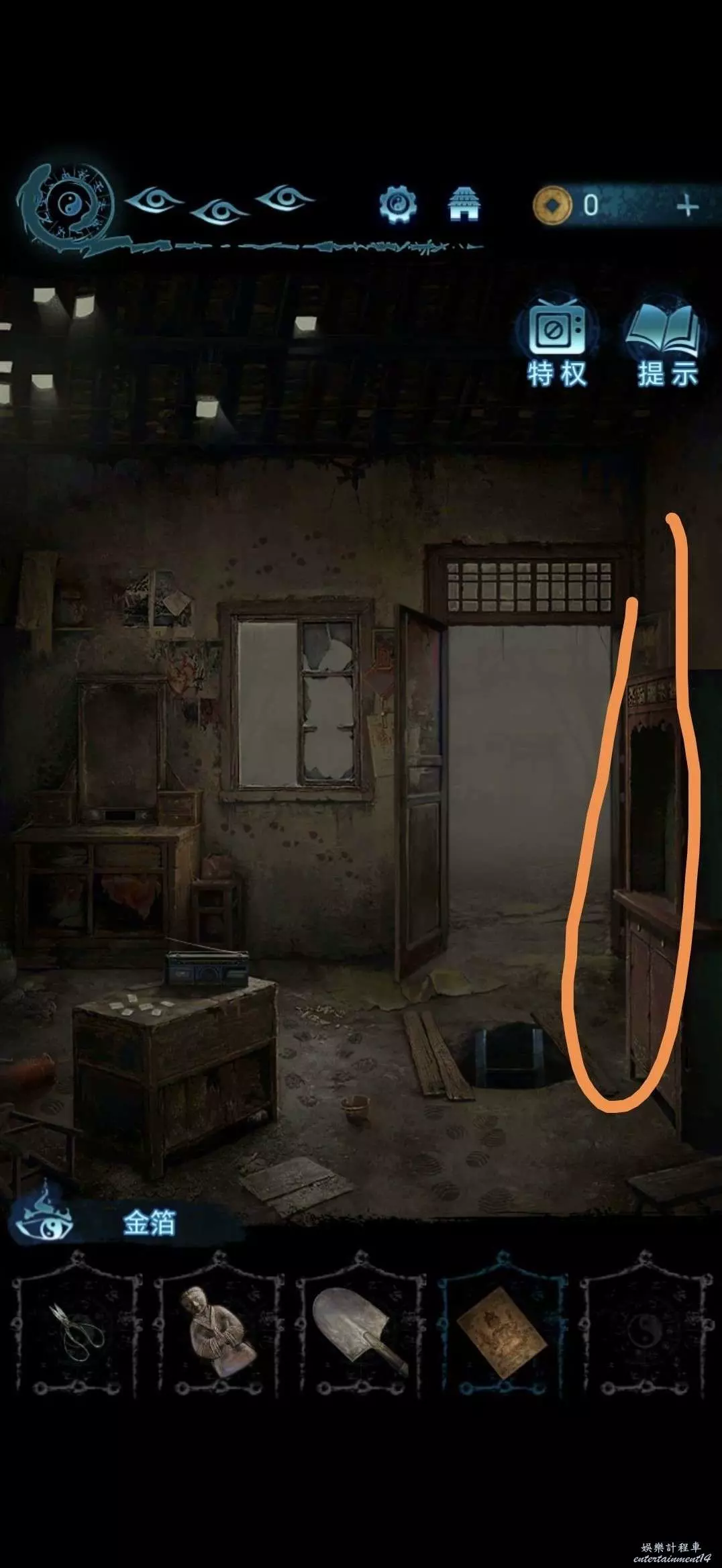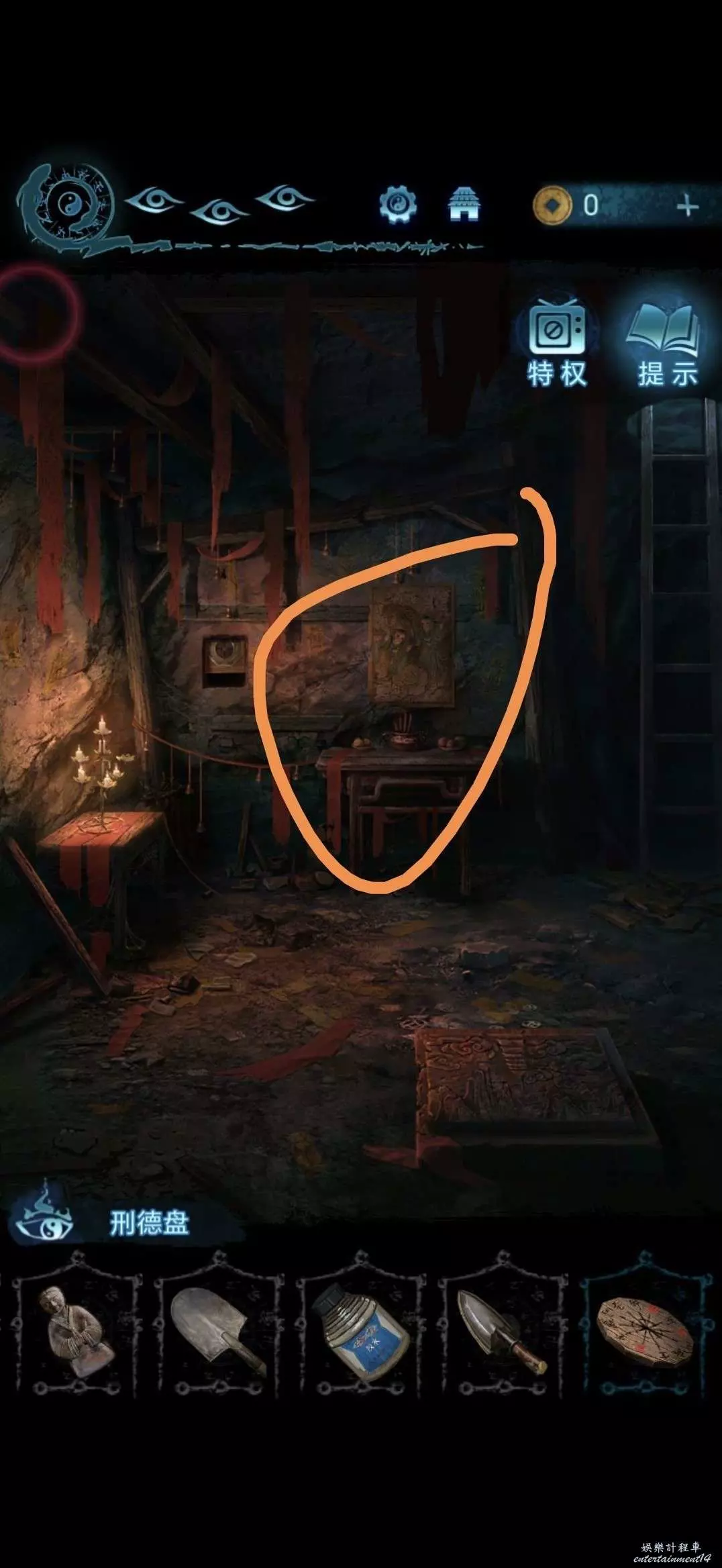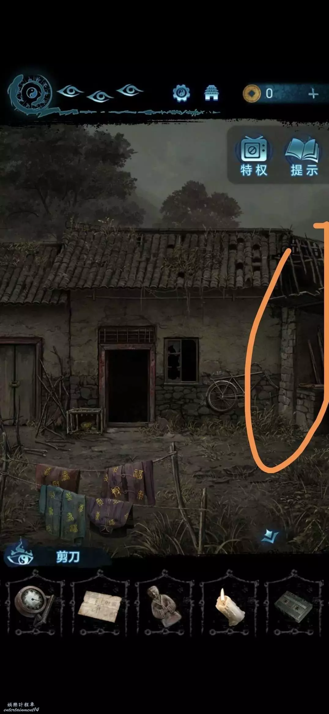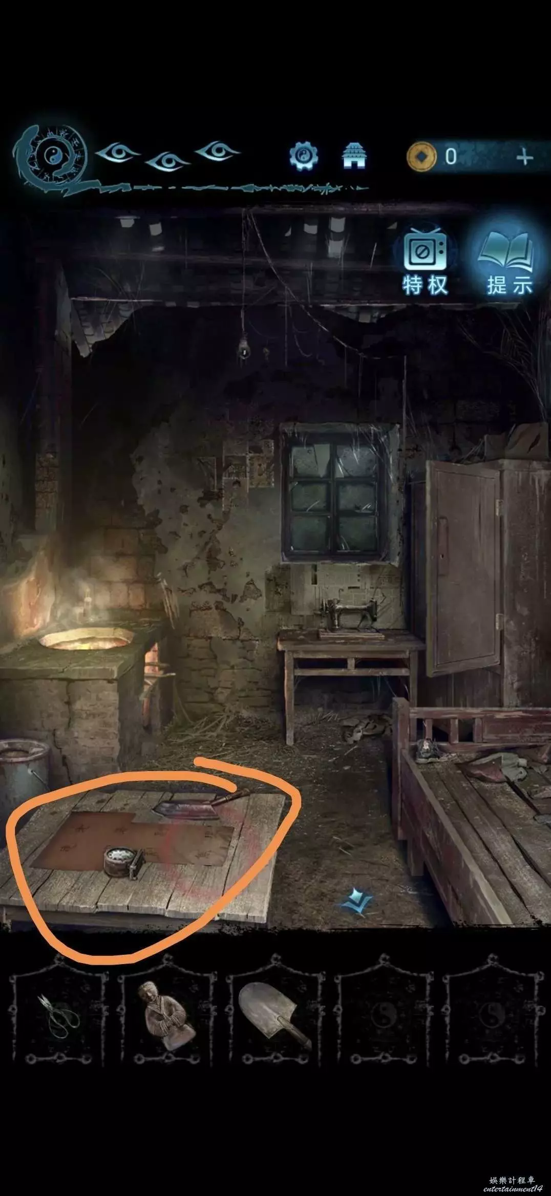 進入肖家地下的房間,把剪刀插進牆上的機關裡,獲得圓盤