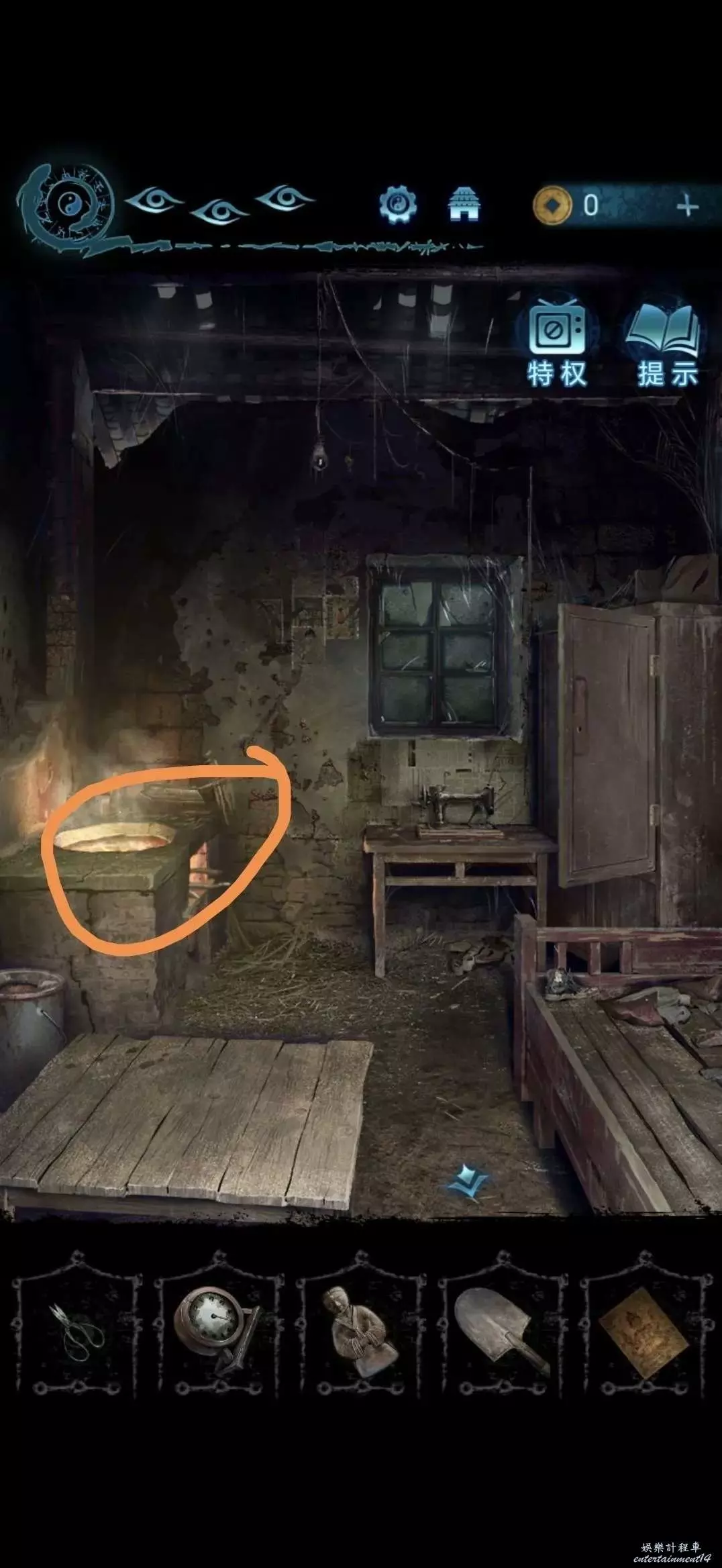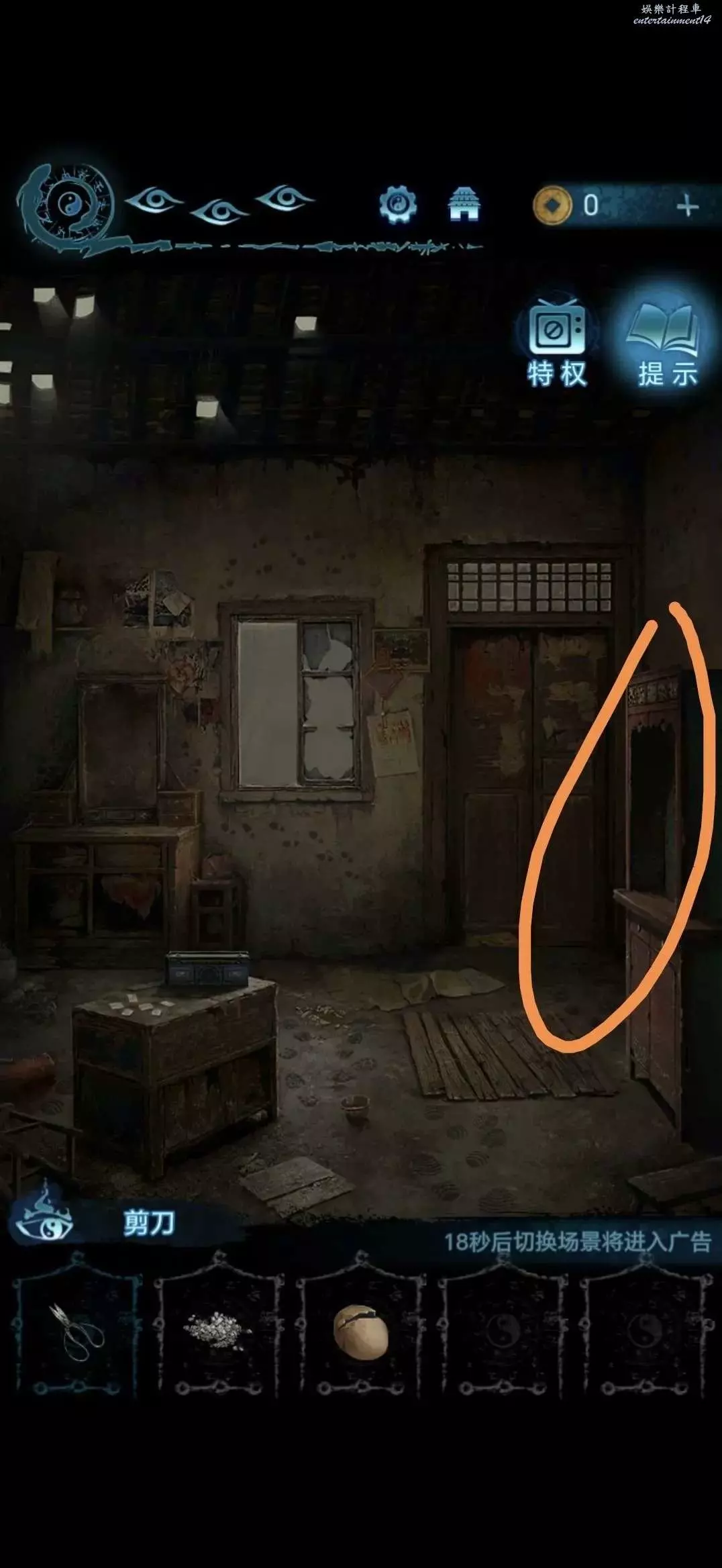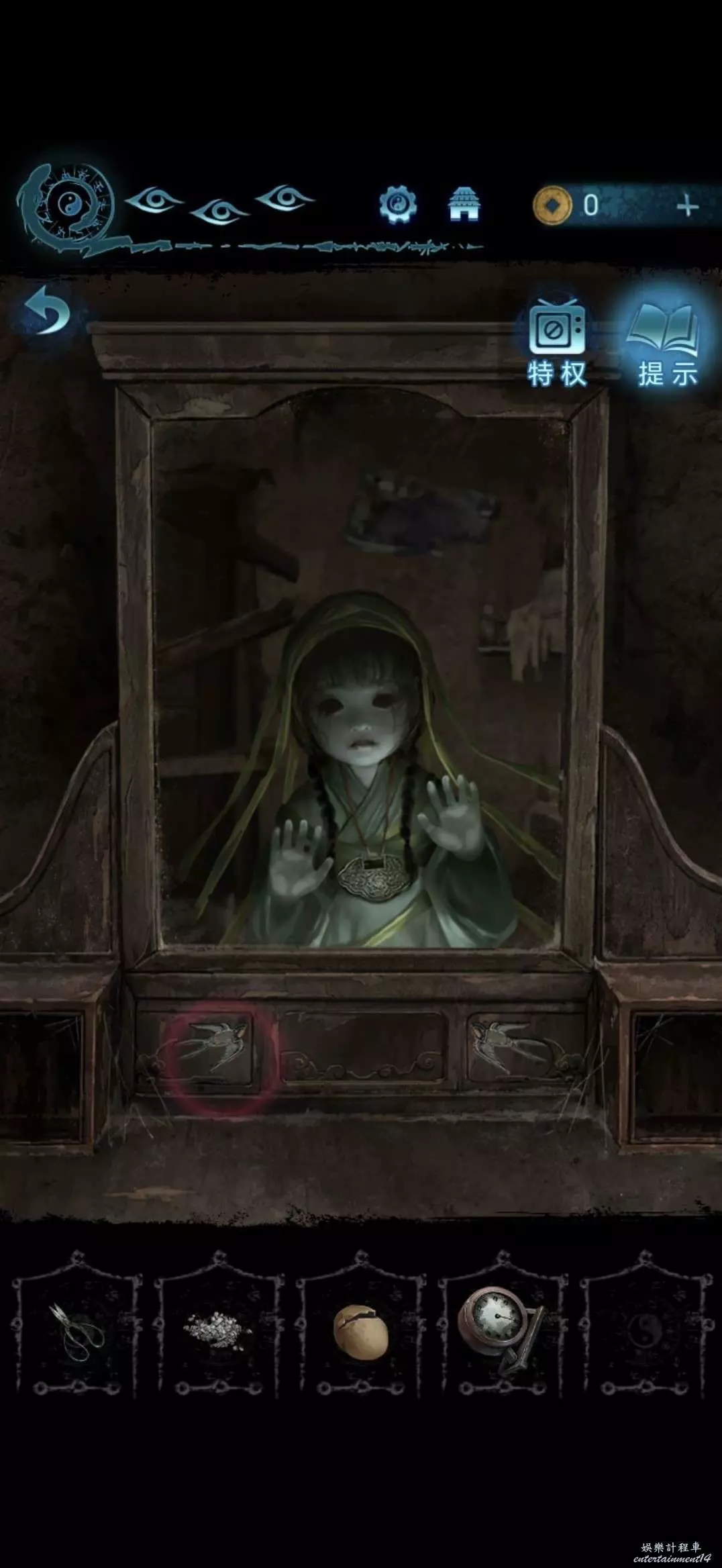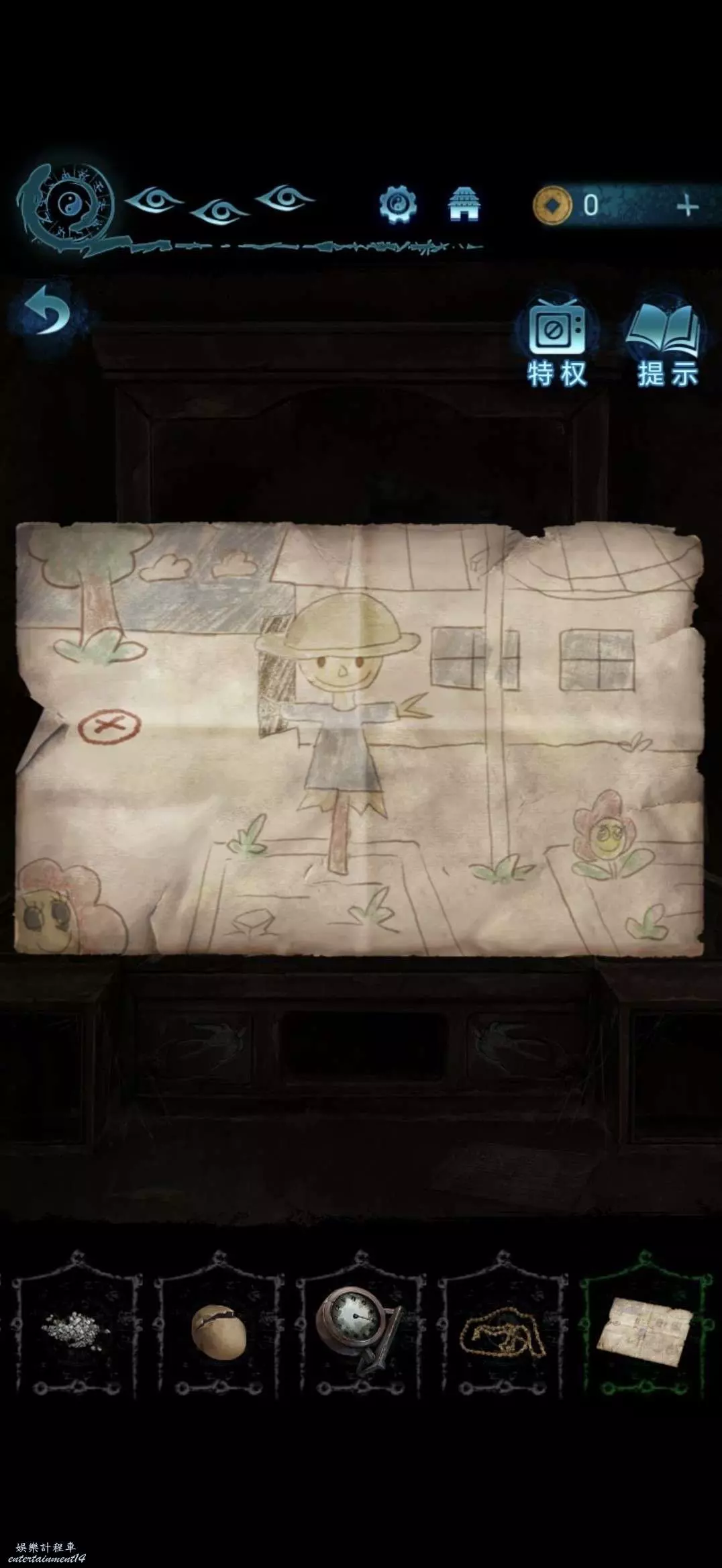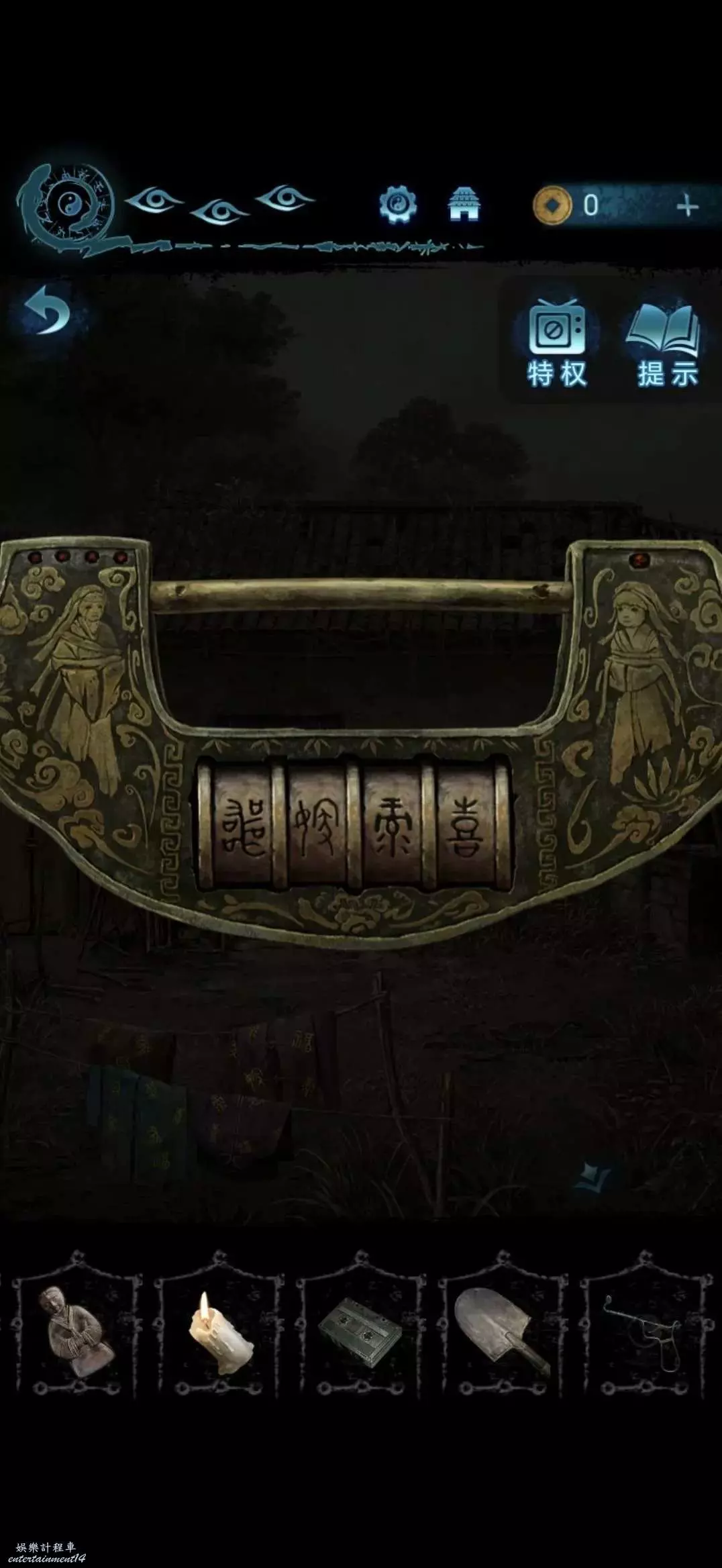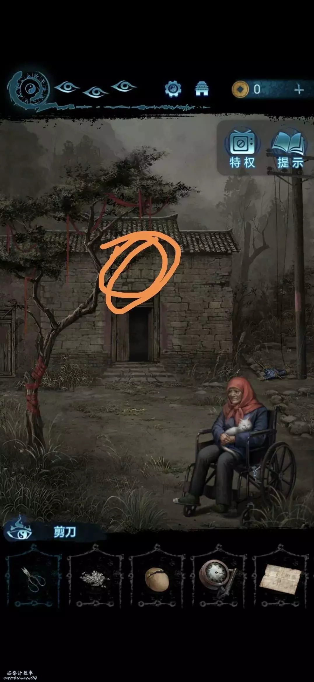 進入肖家地下的房間,把剪刀插進牆上的機關裡,獲得圓盤