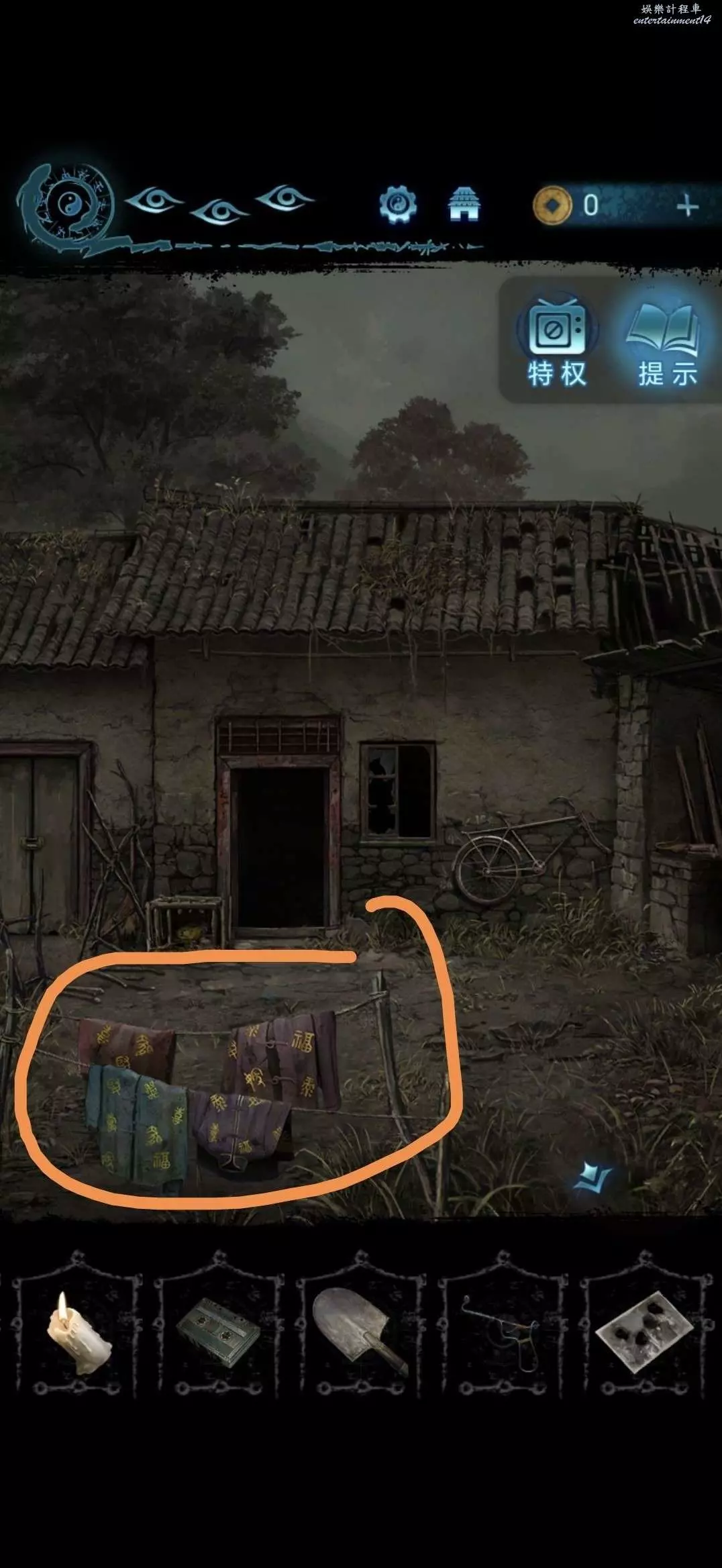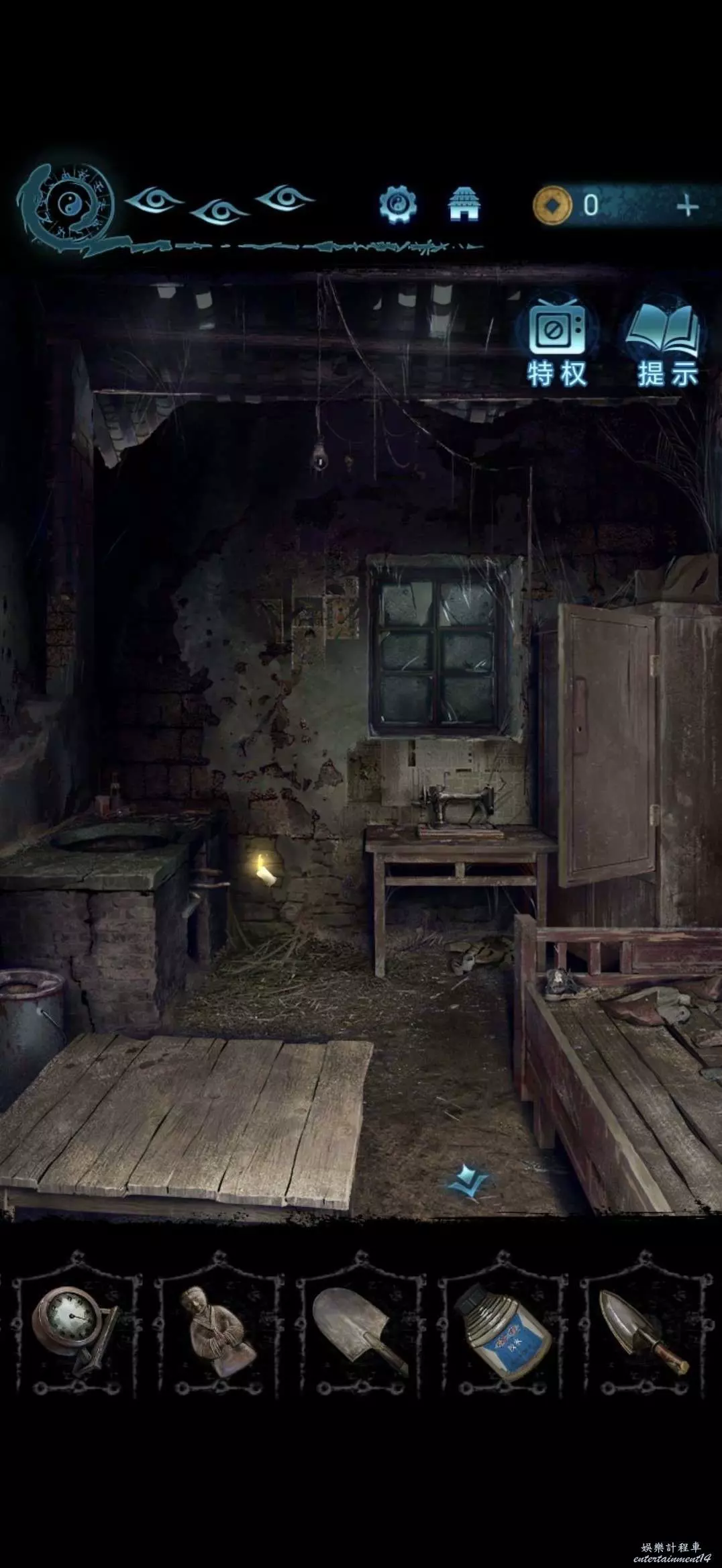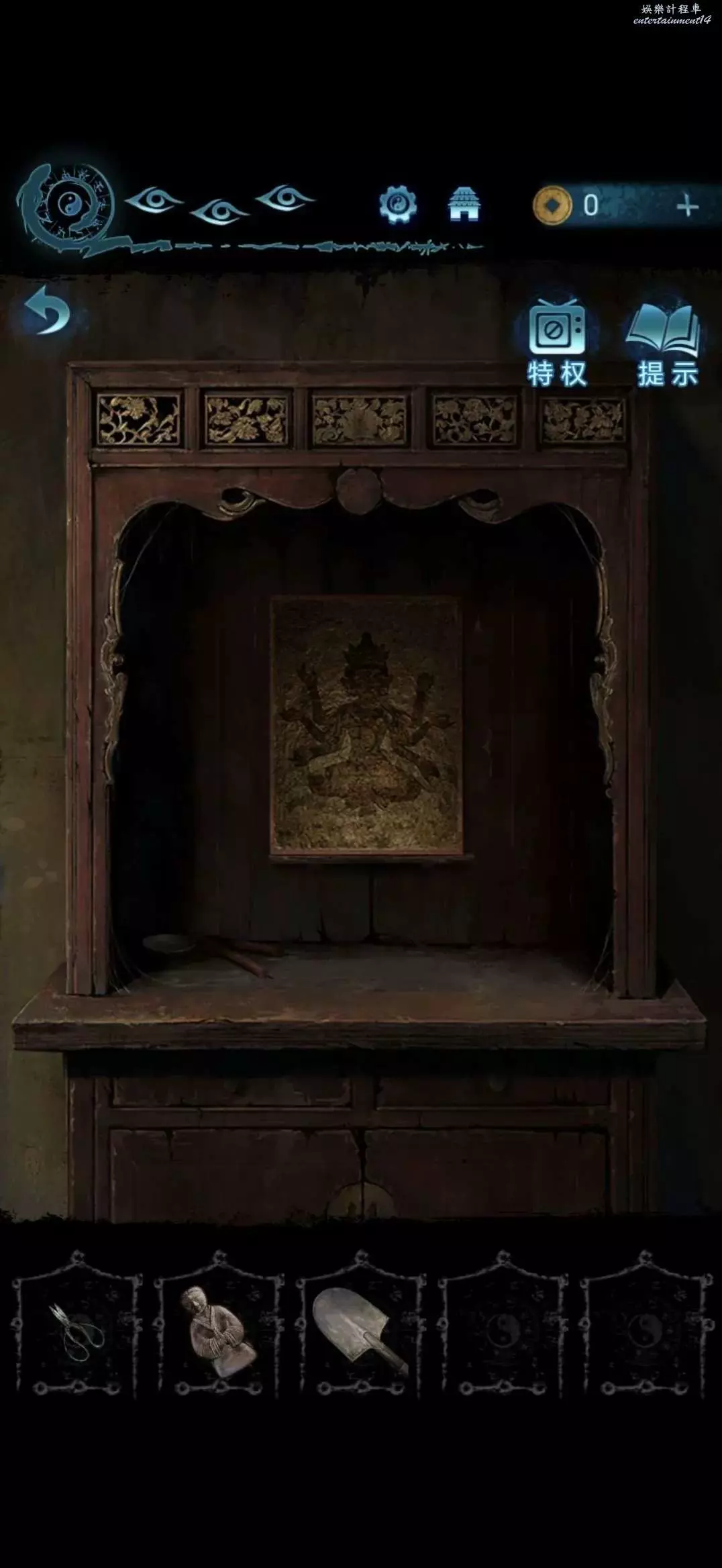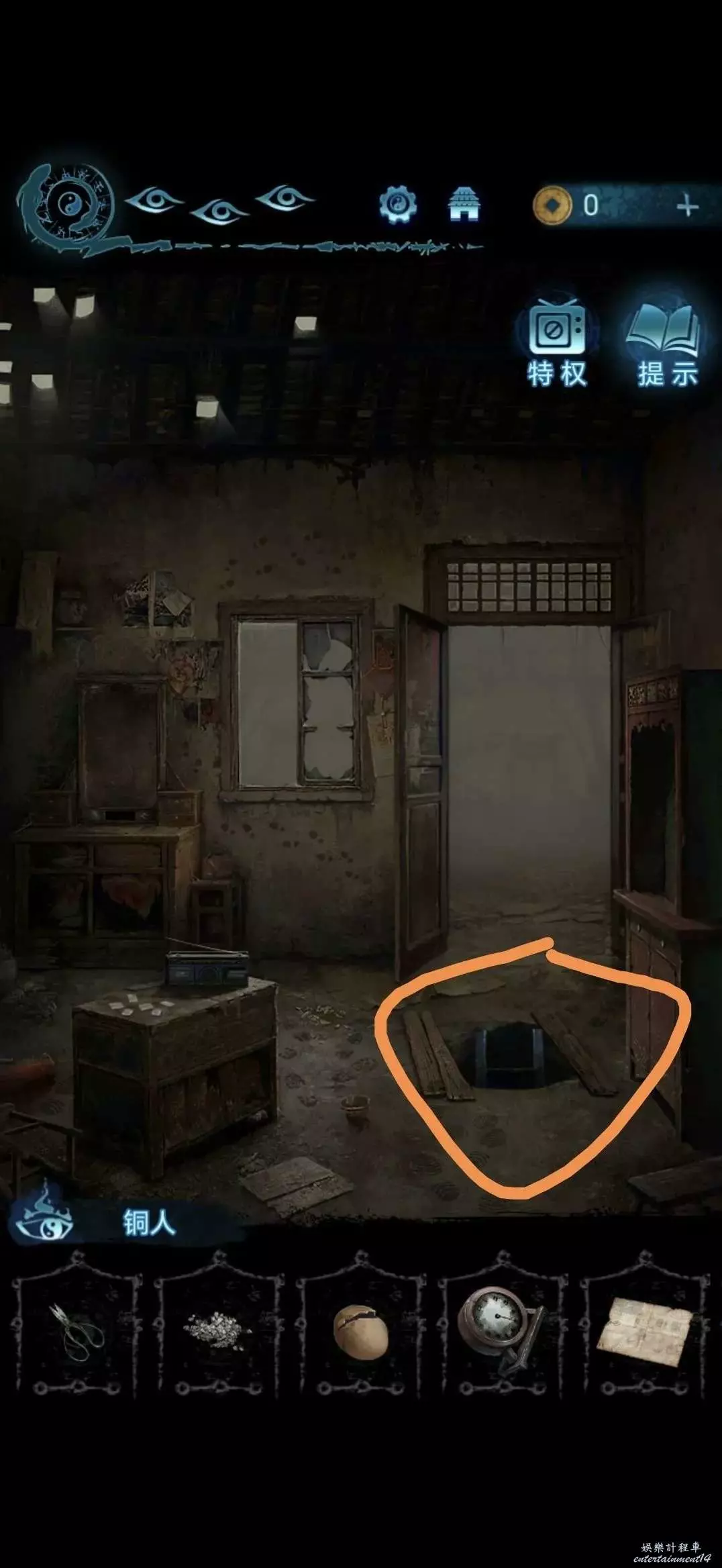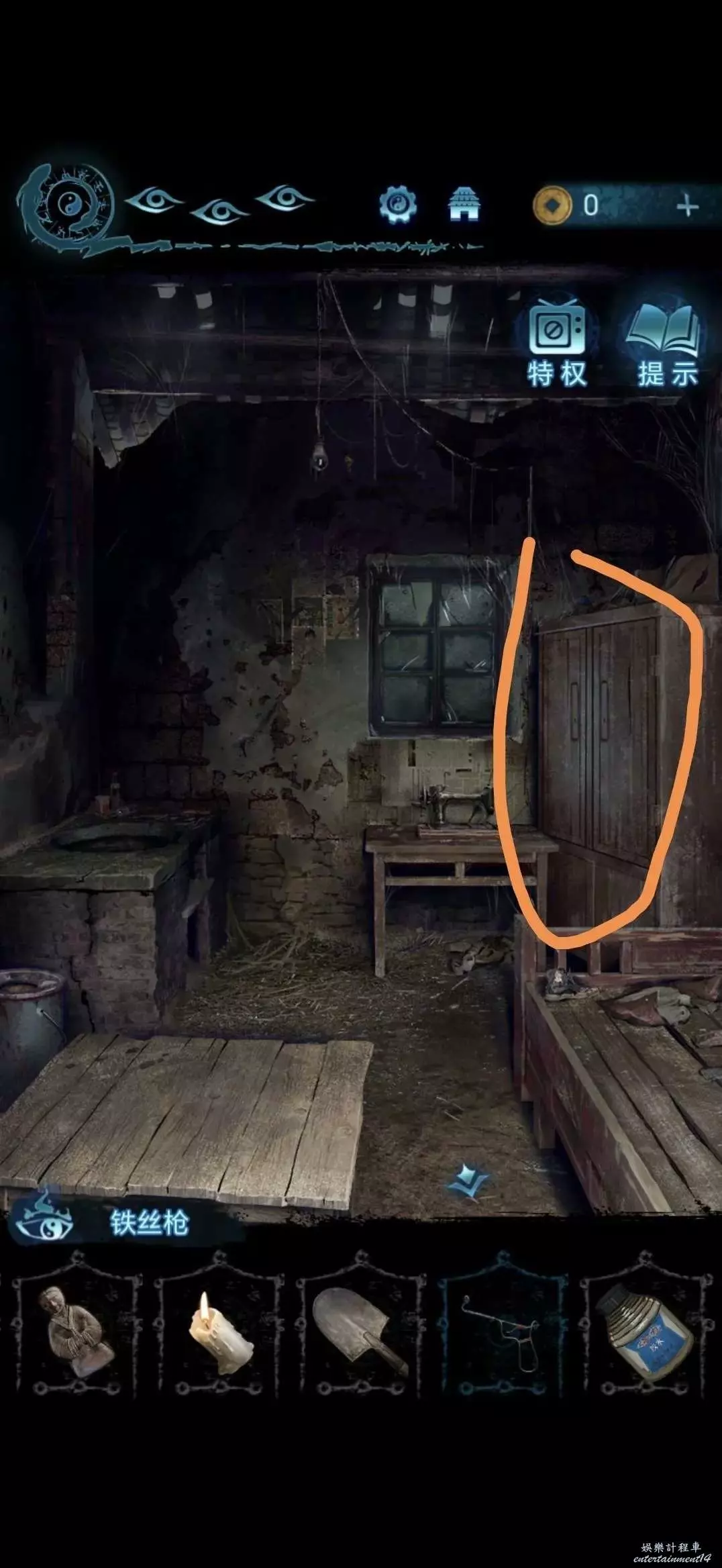 進入肖家地下的房間,把剪刀插進牆上的機關裡,獲得圓盤
