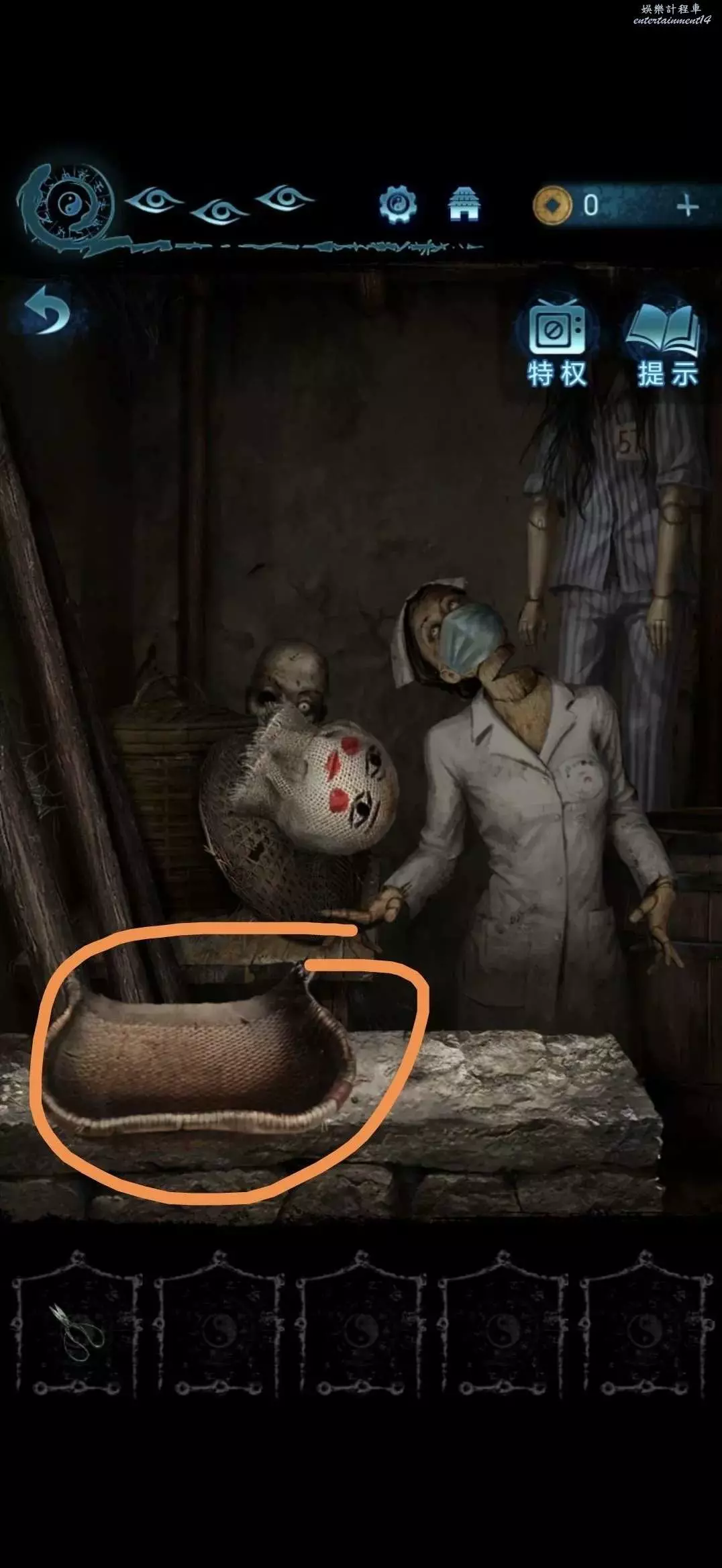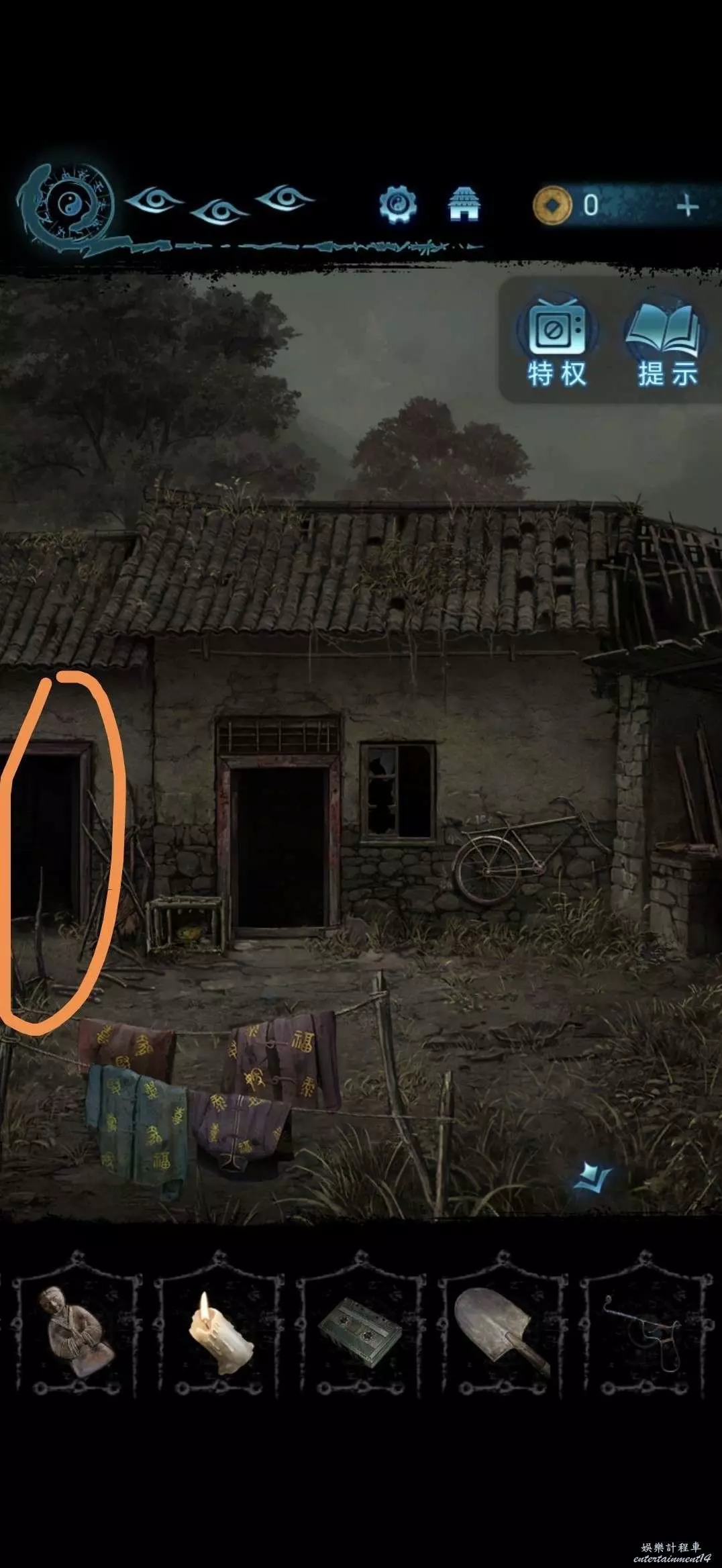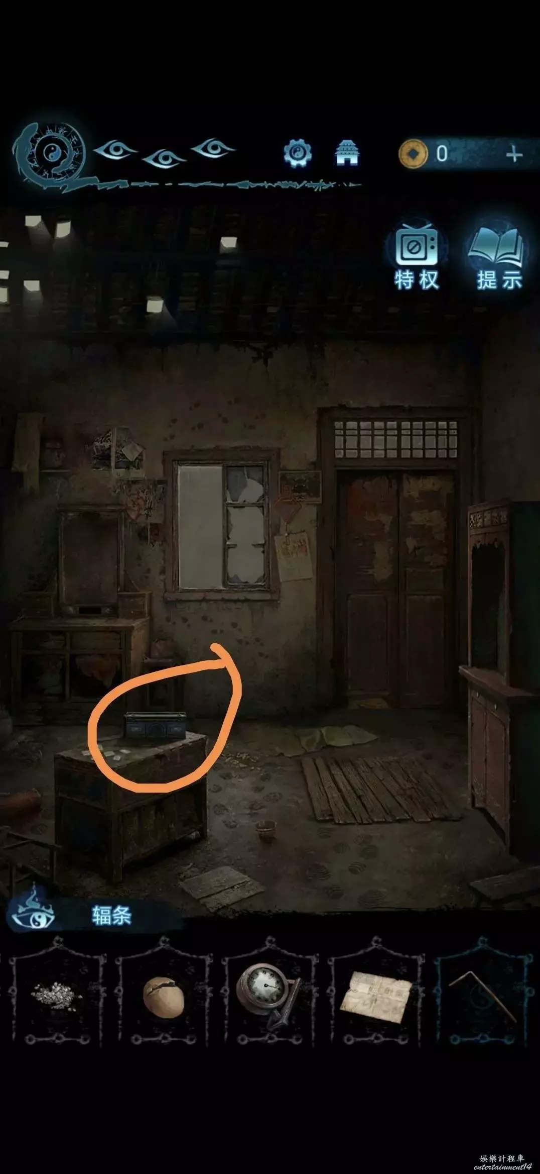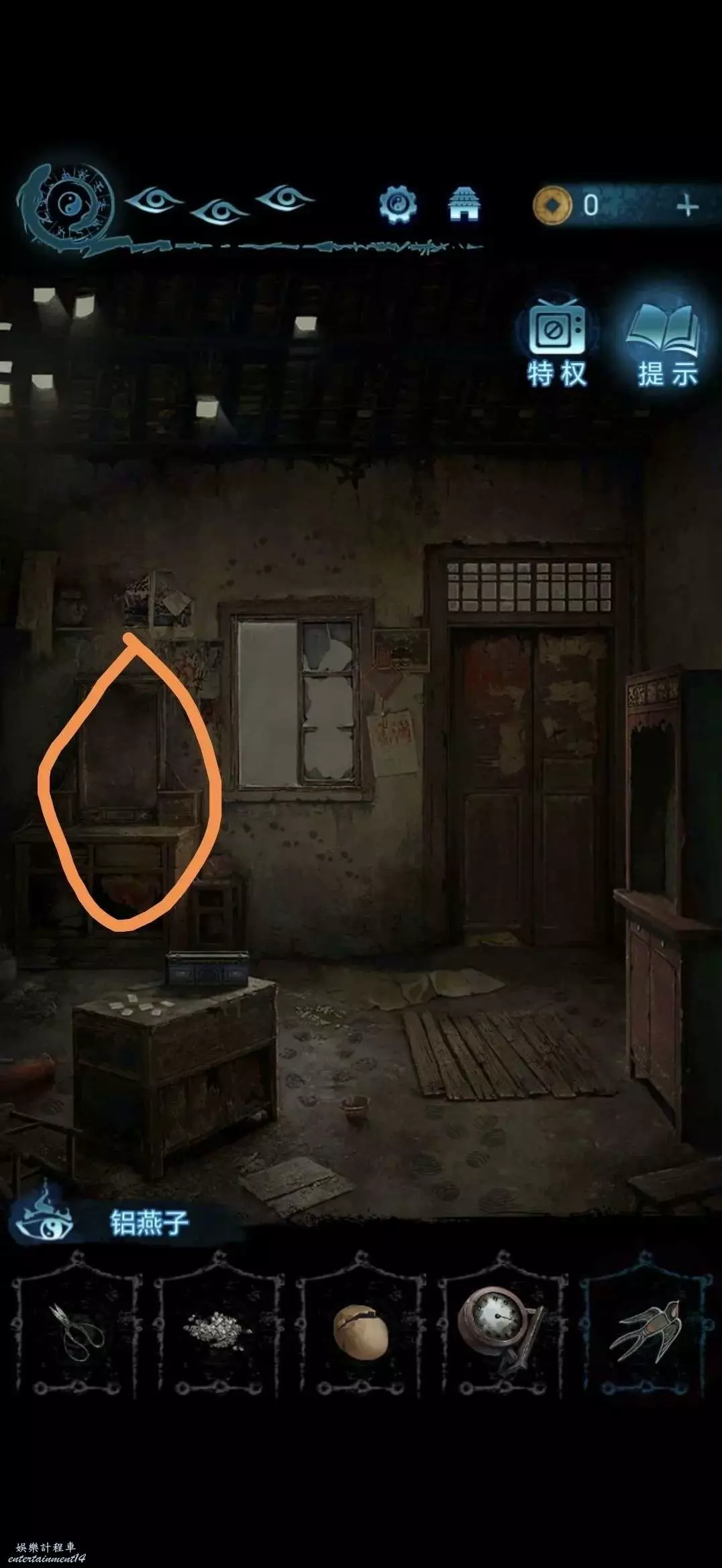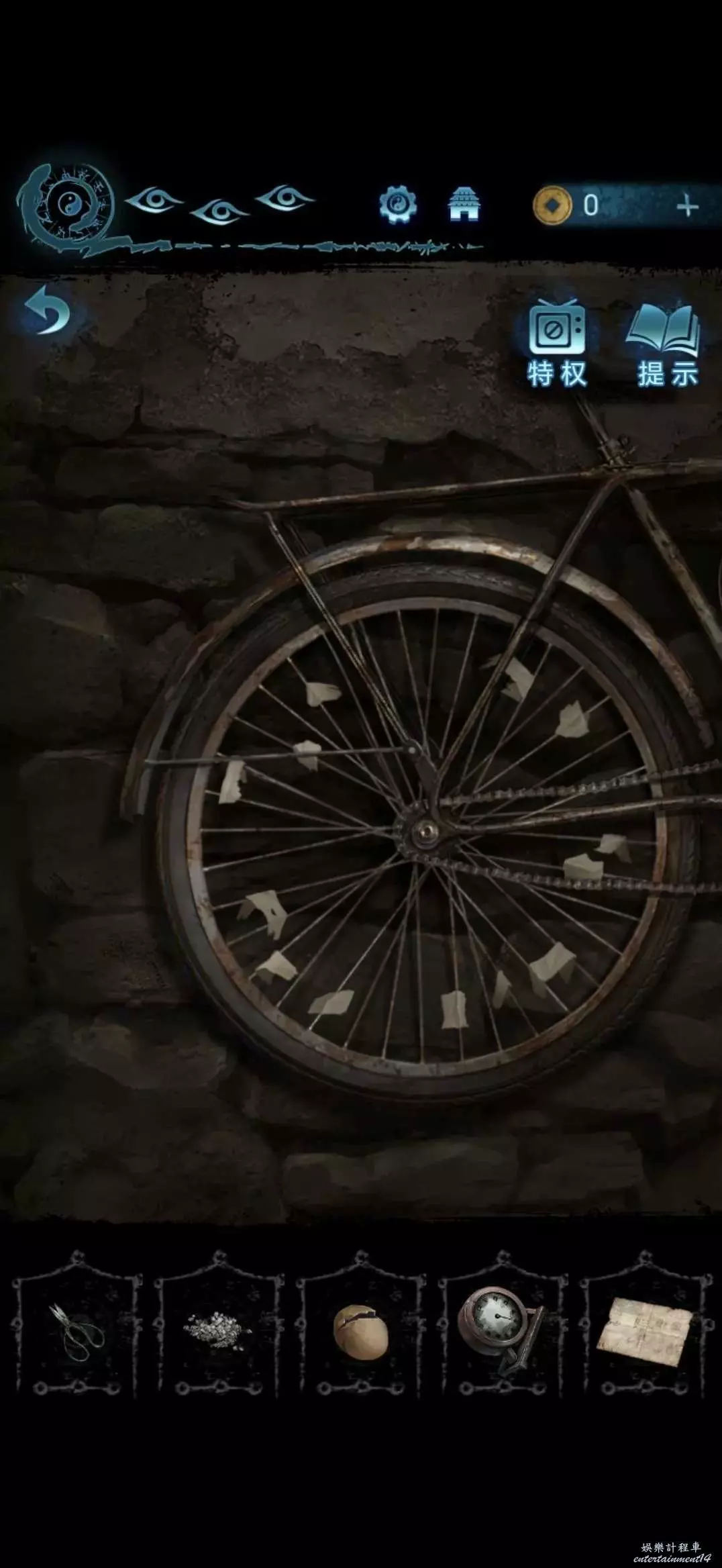 進入肖家地下的房間,把剪刀插進牆上的機關裡,獲得圓盤