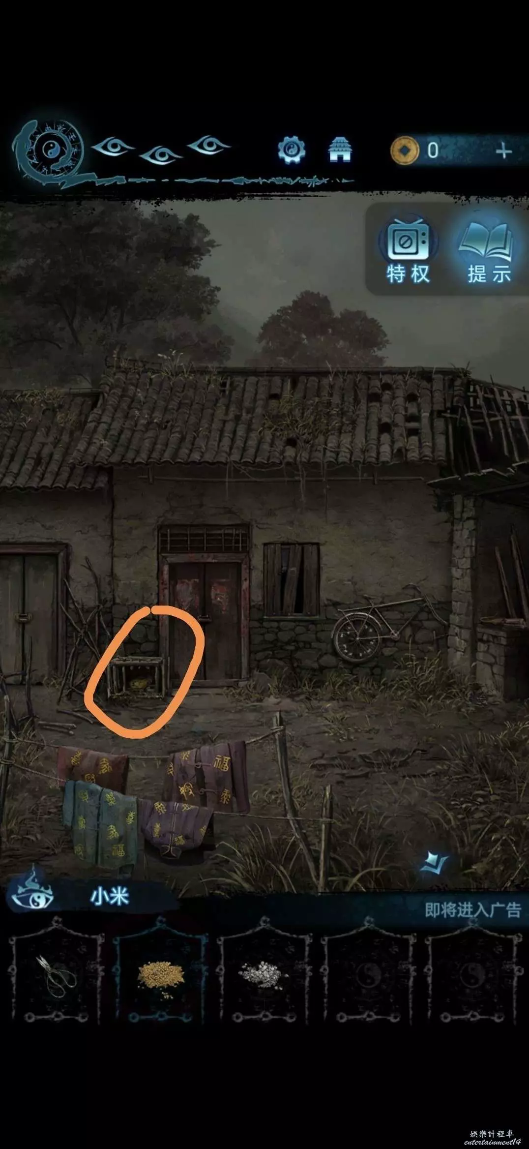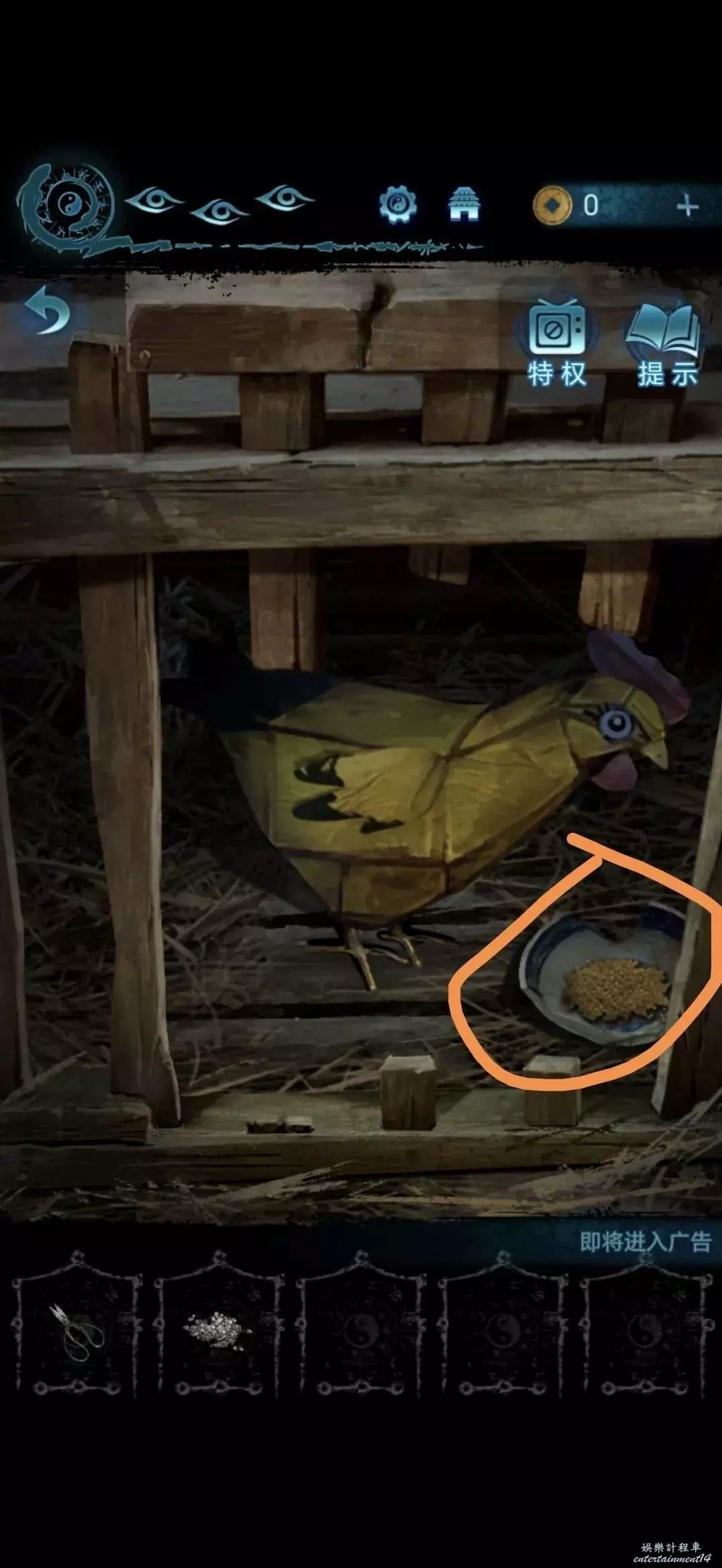 房門左側的雞籠裡有一個空碗,把小米倒進空碗裡,獲得診斷書和蛋殼