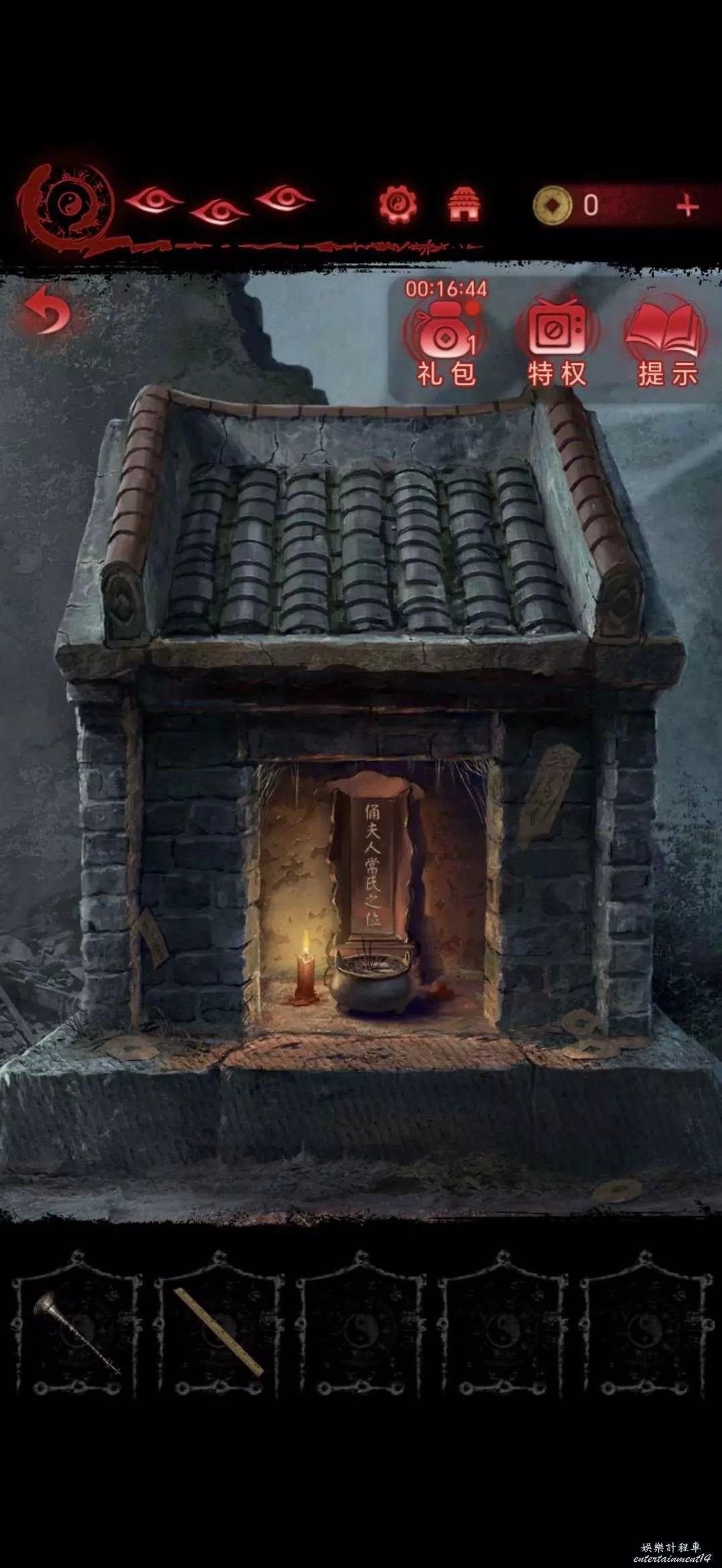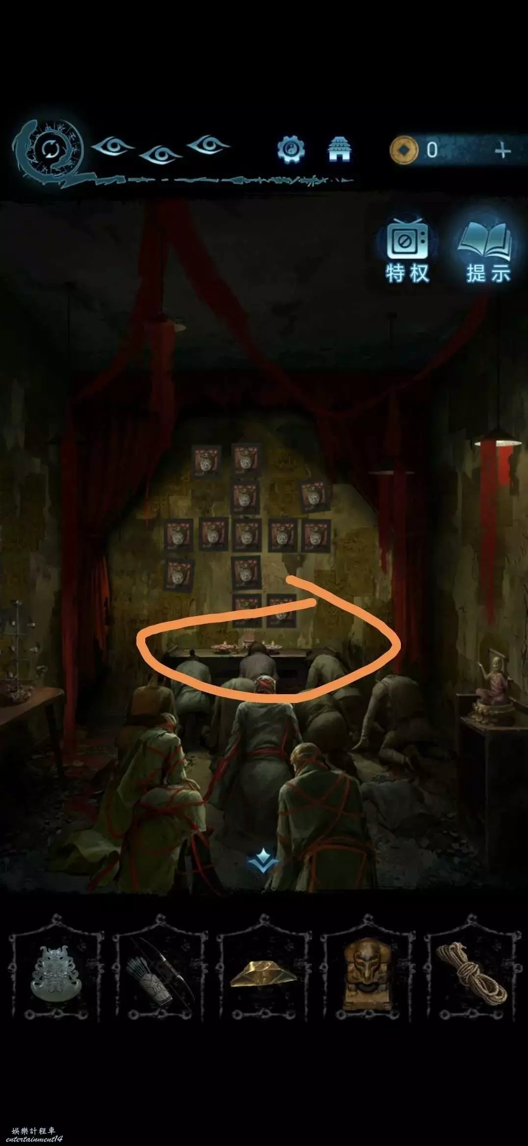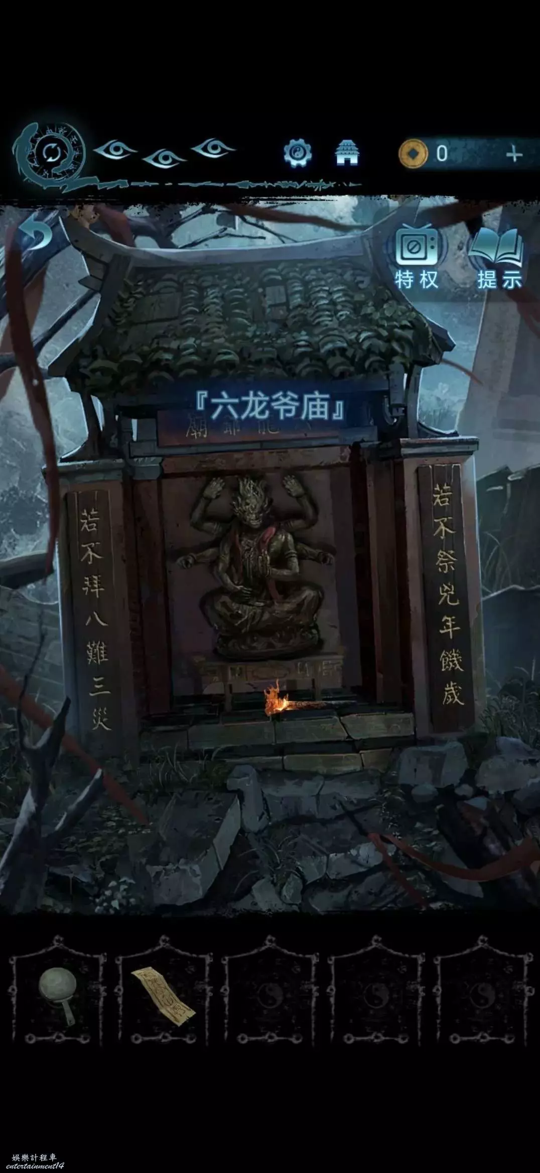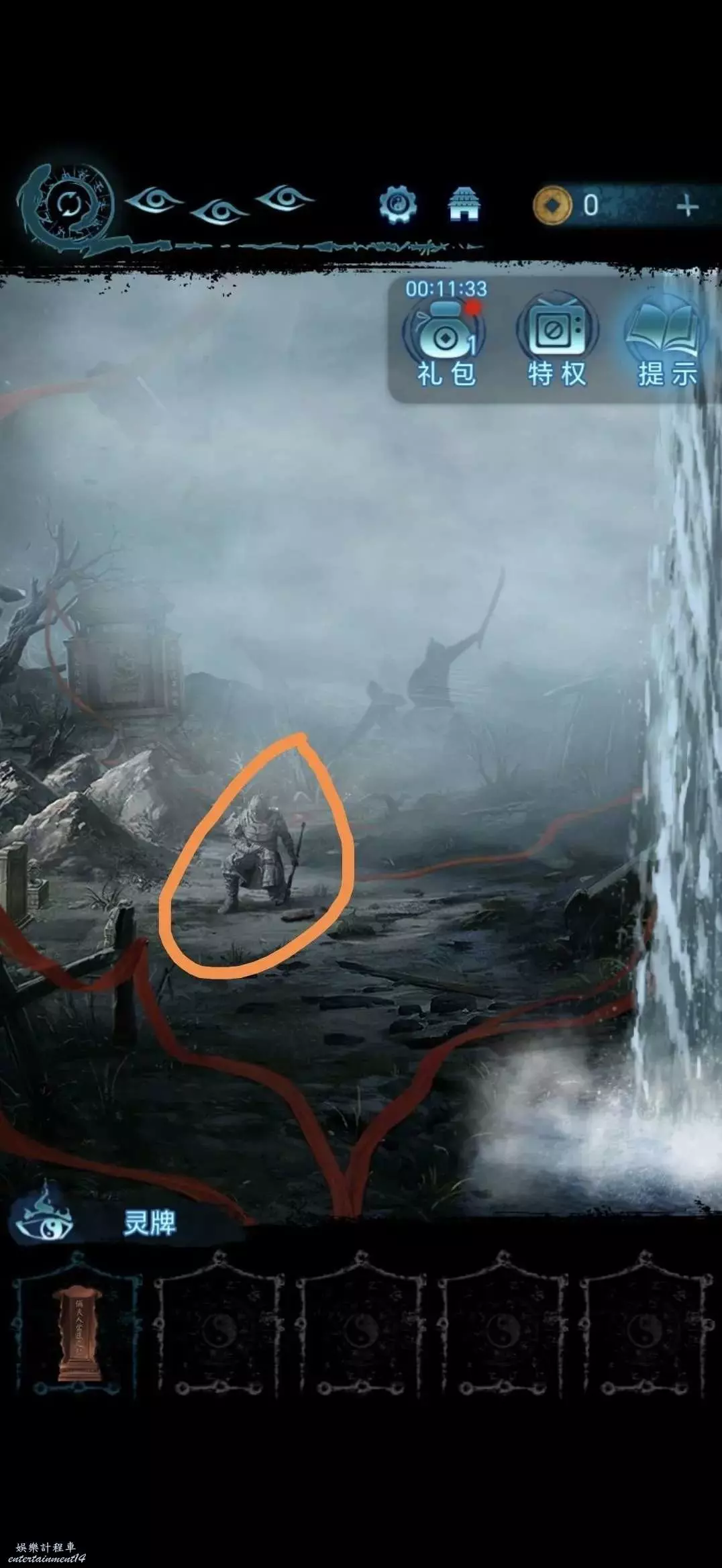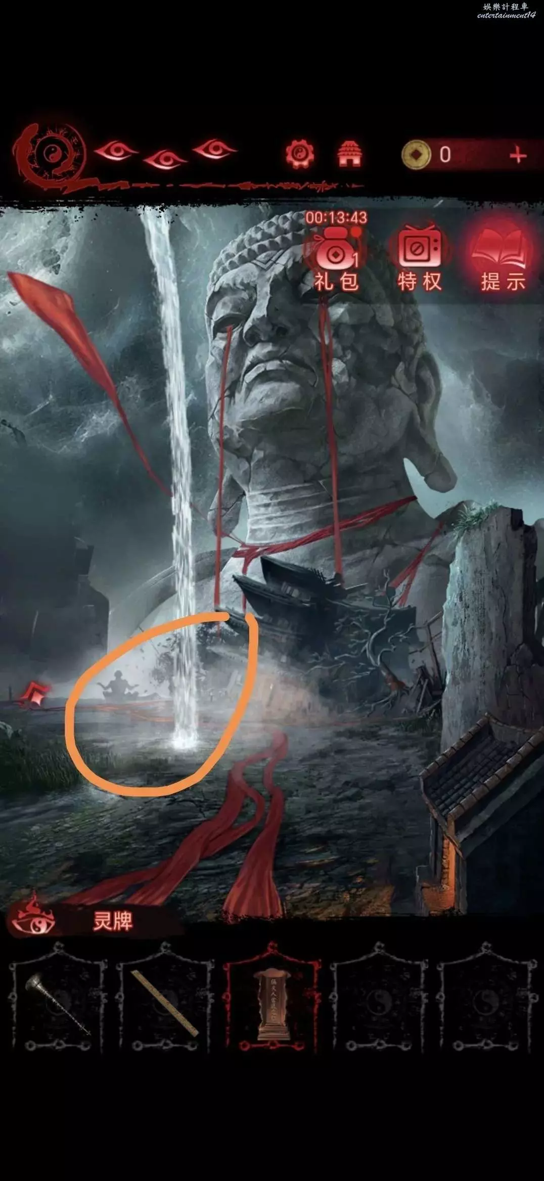 點擊中間的雕像,將靈牌放進凹槽裡,獲得搖鈴