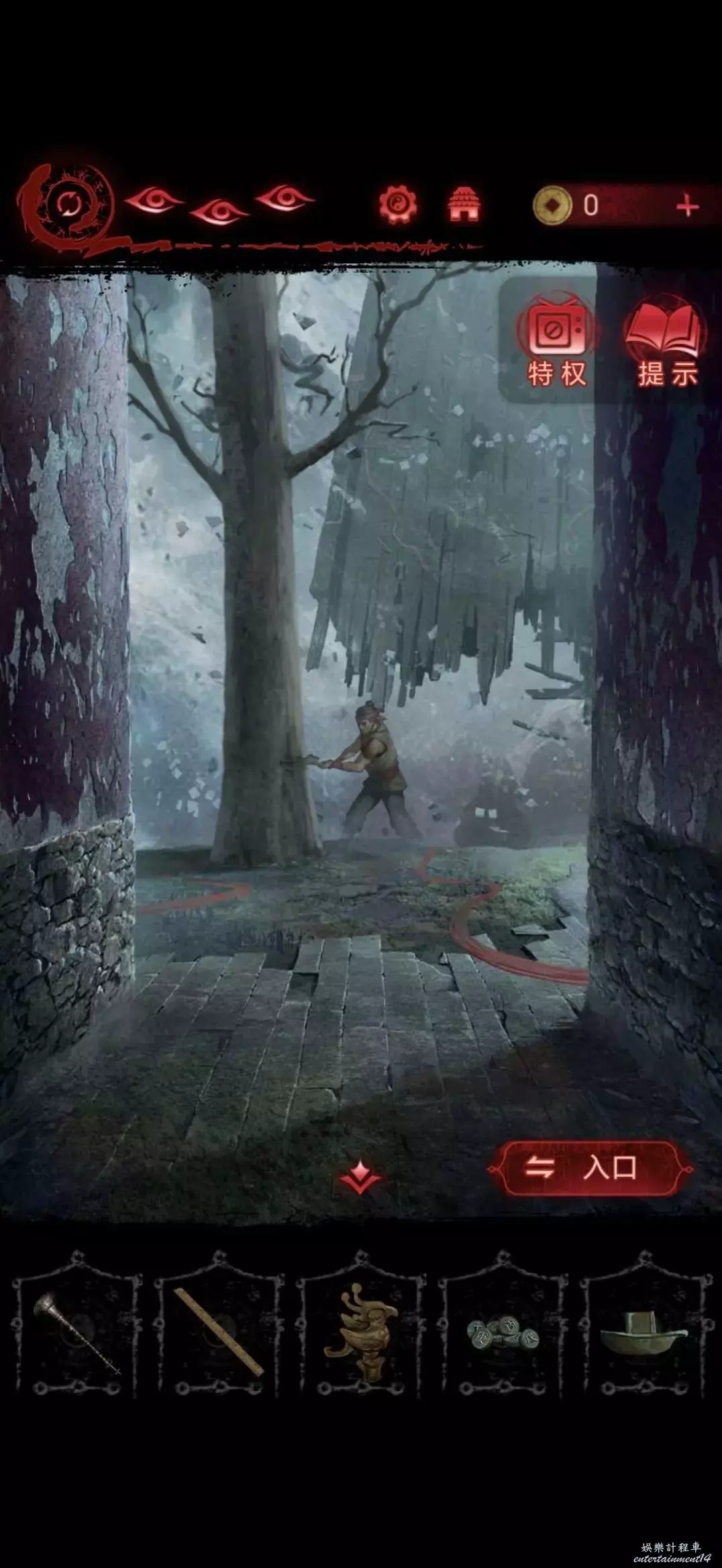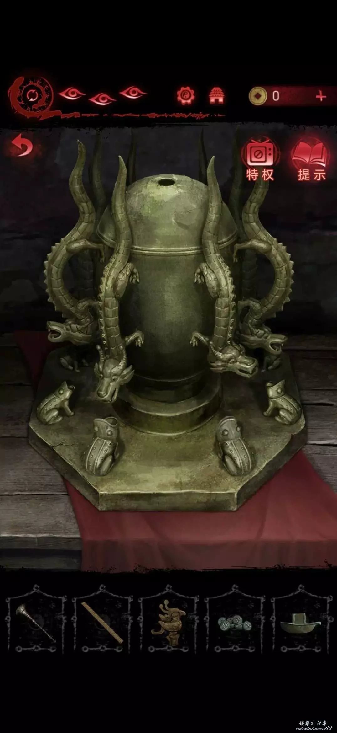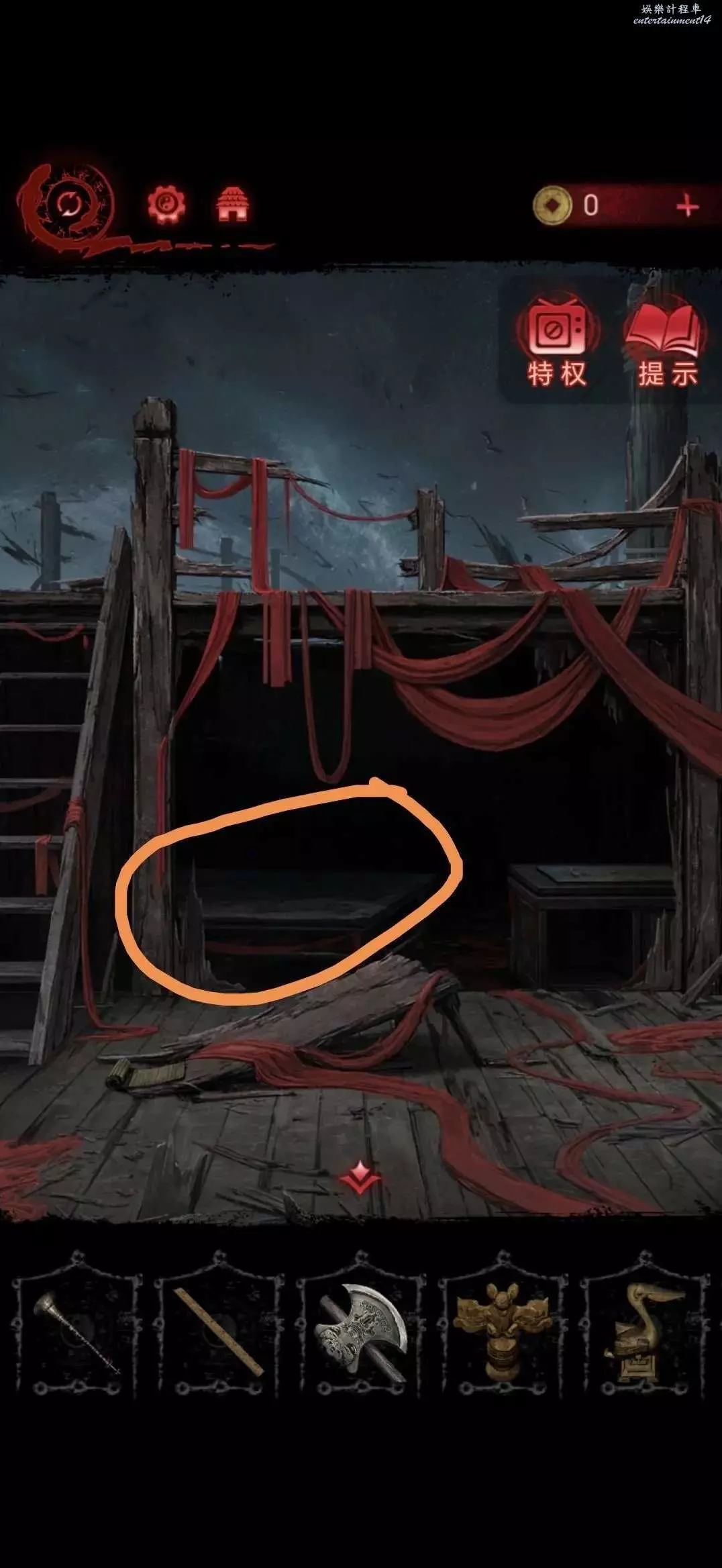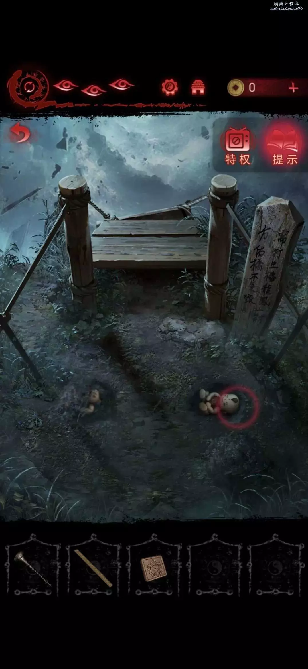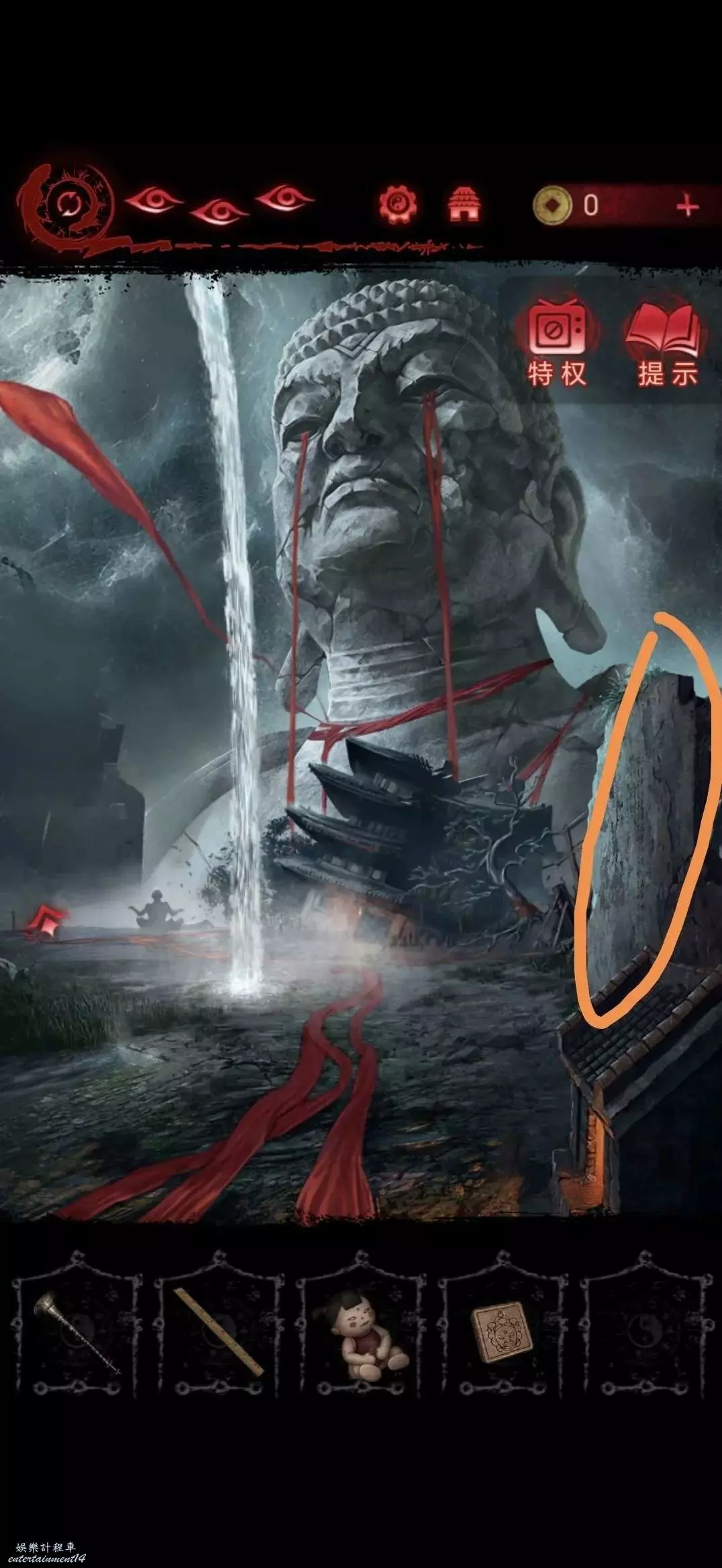 點擊中間的雕像,將靈牌放進凹槽裡,獲得搖鈴