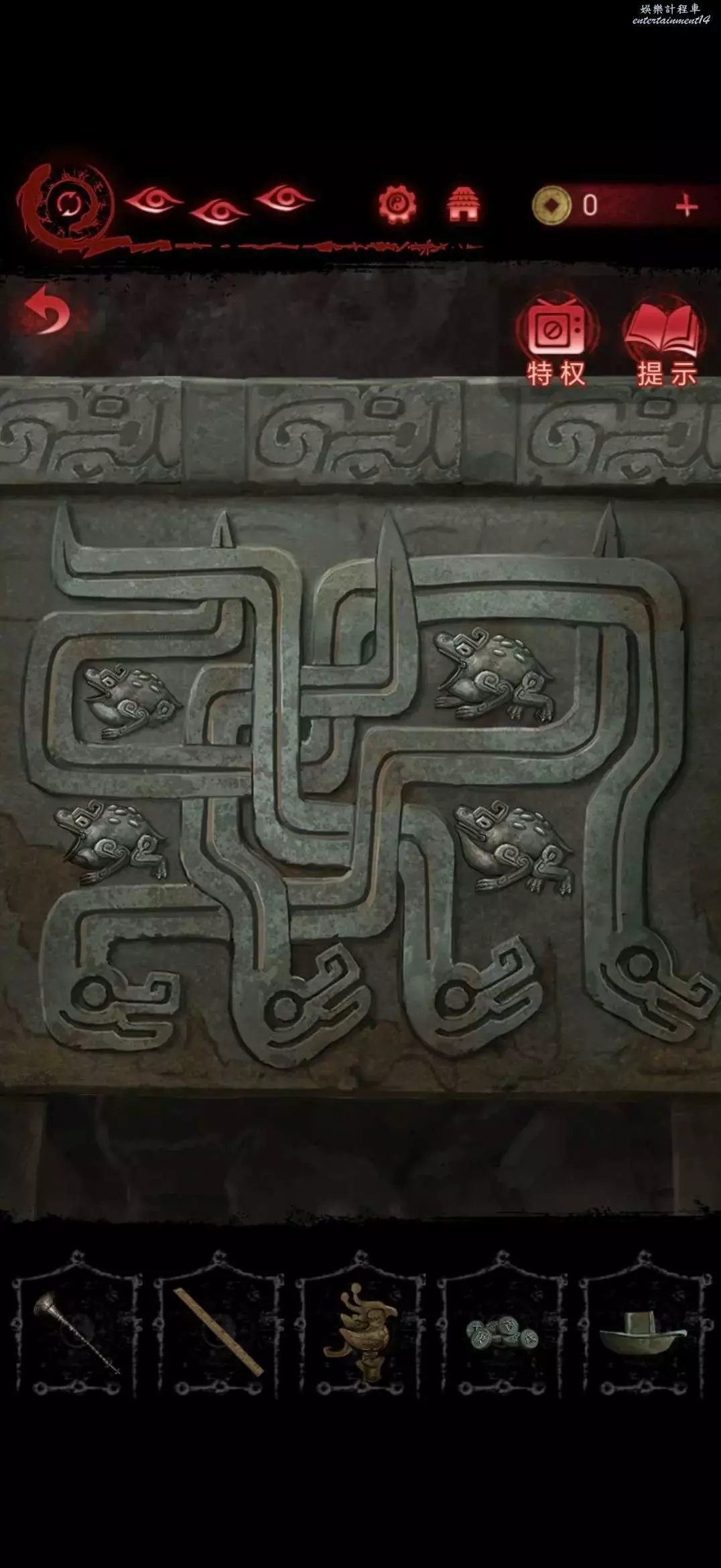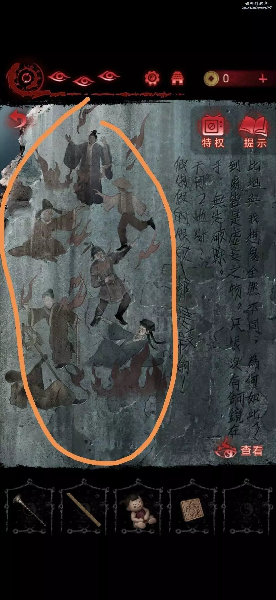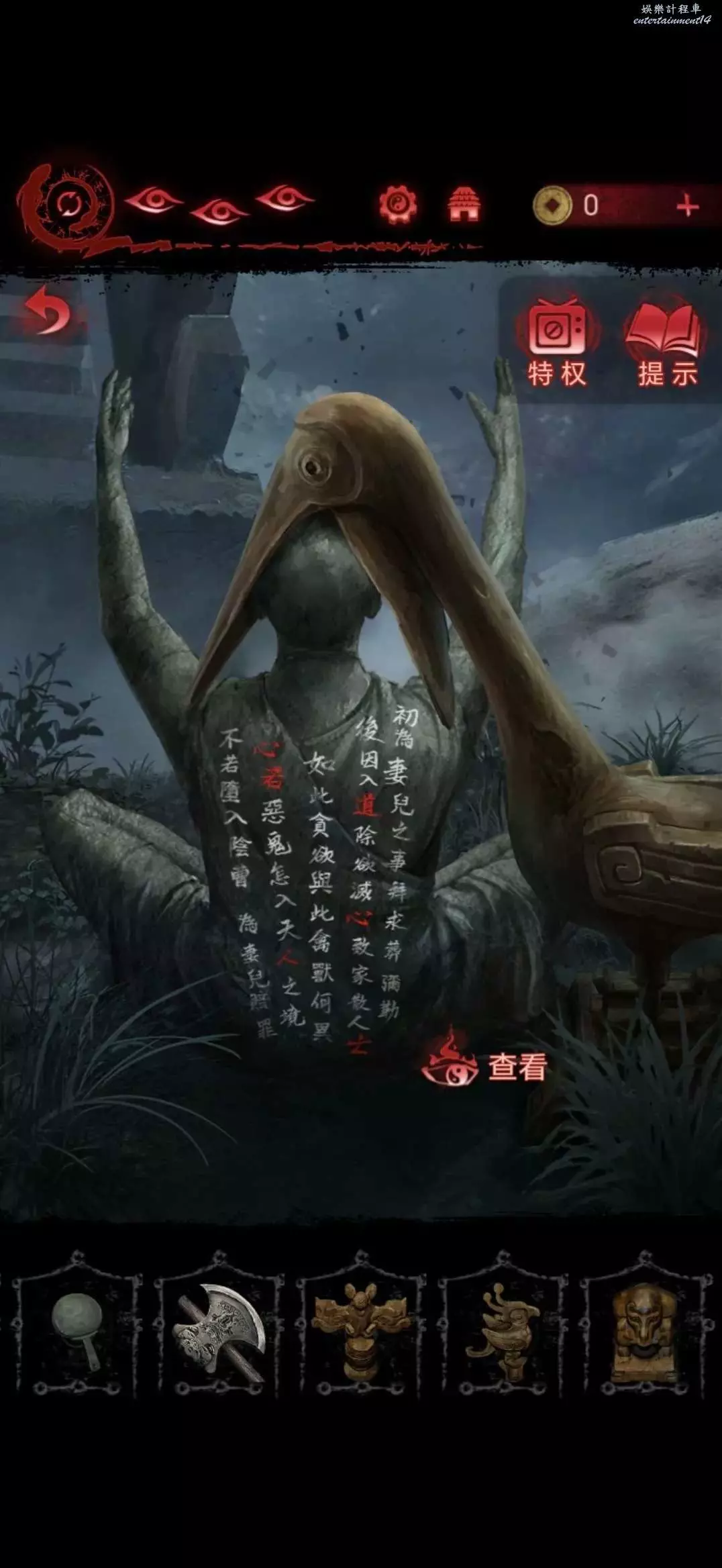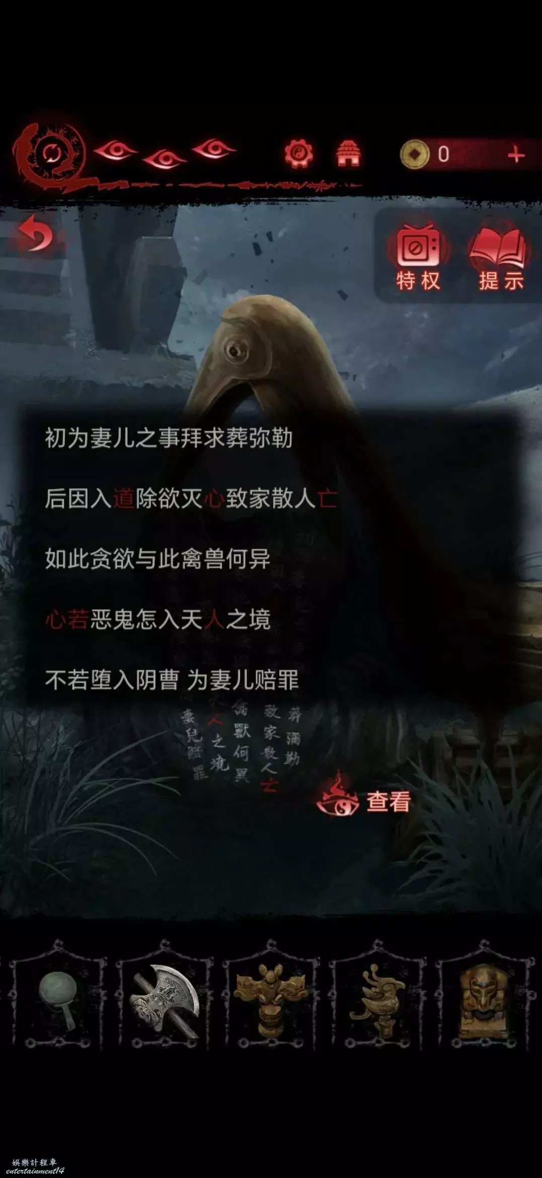 收回鵜鶘木雕,切換肖視角迷宮連同奚視角走至銅鏡處,根據資料點擊銅鏡旁的字,道心亡心若人,點擊完獲得紅塵願