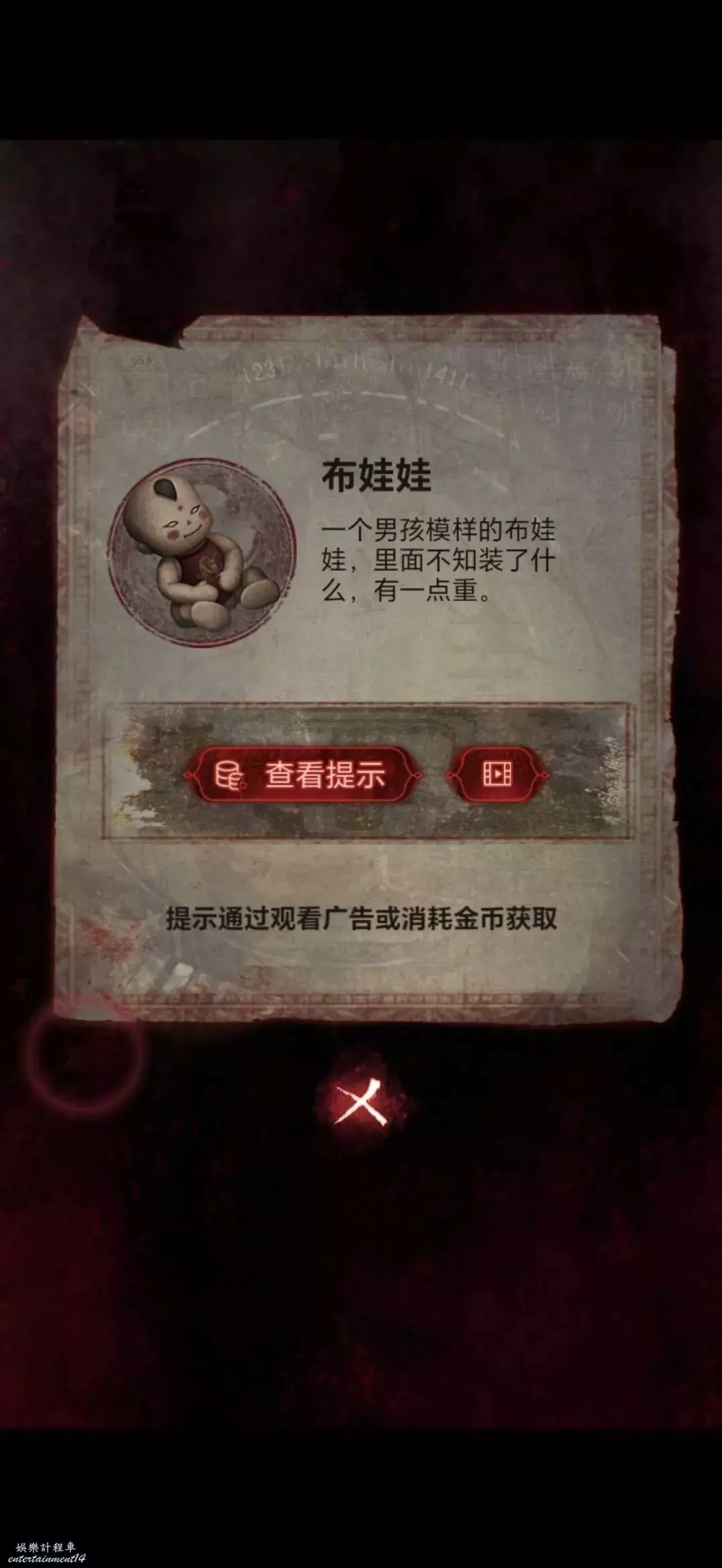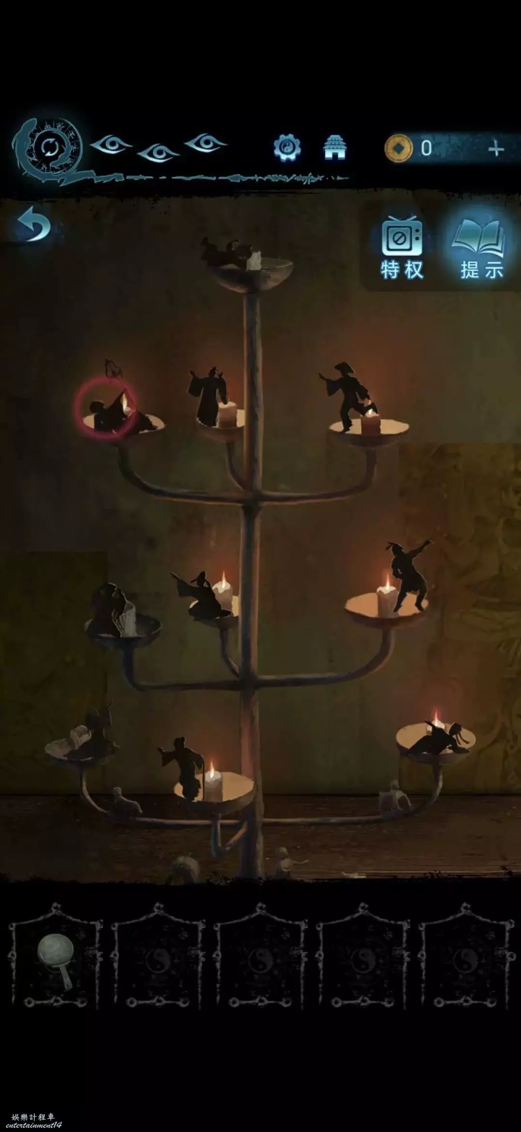 進入大樓,切換奚視角,查看天上,做小遊戲(建議跳過),切進奚視角,根據右側石碑上的畫面,點擊肖房間內左側燭台上的蠟燭,點完獲得布娃娃