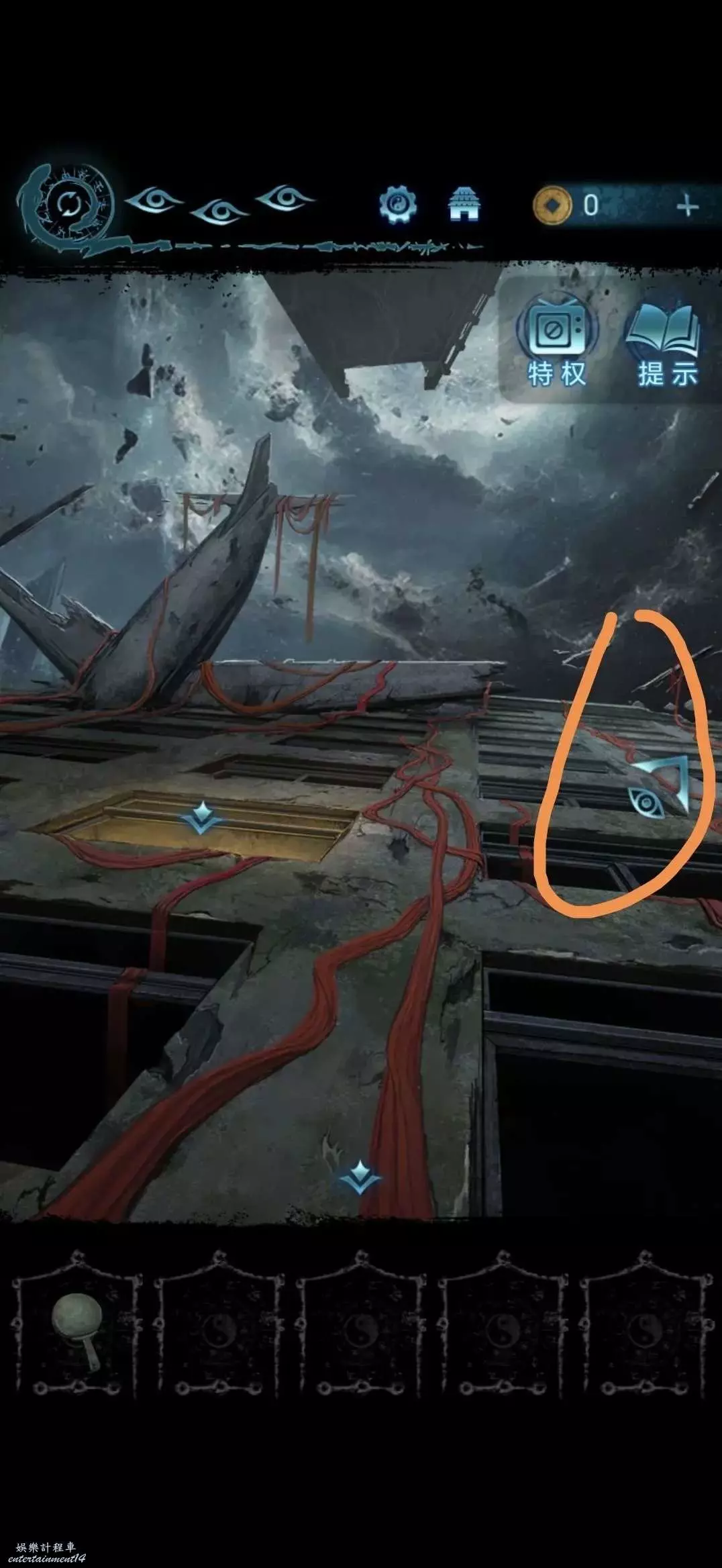 用弓箭插上咒符傳送至奚處,切換奚視角,獲得咒符
