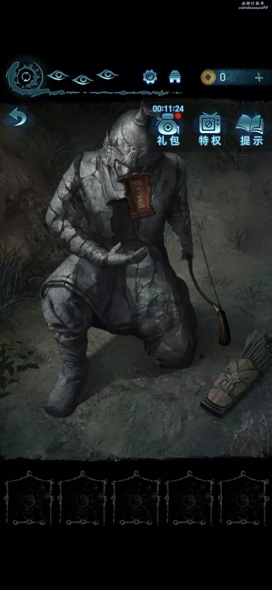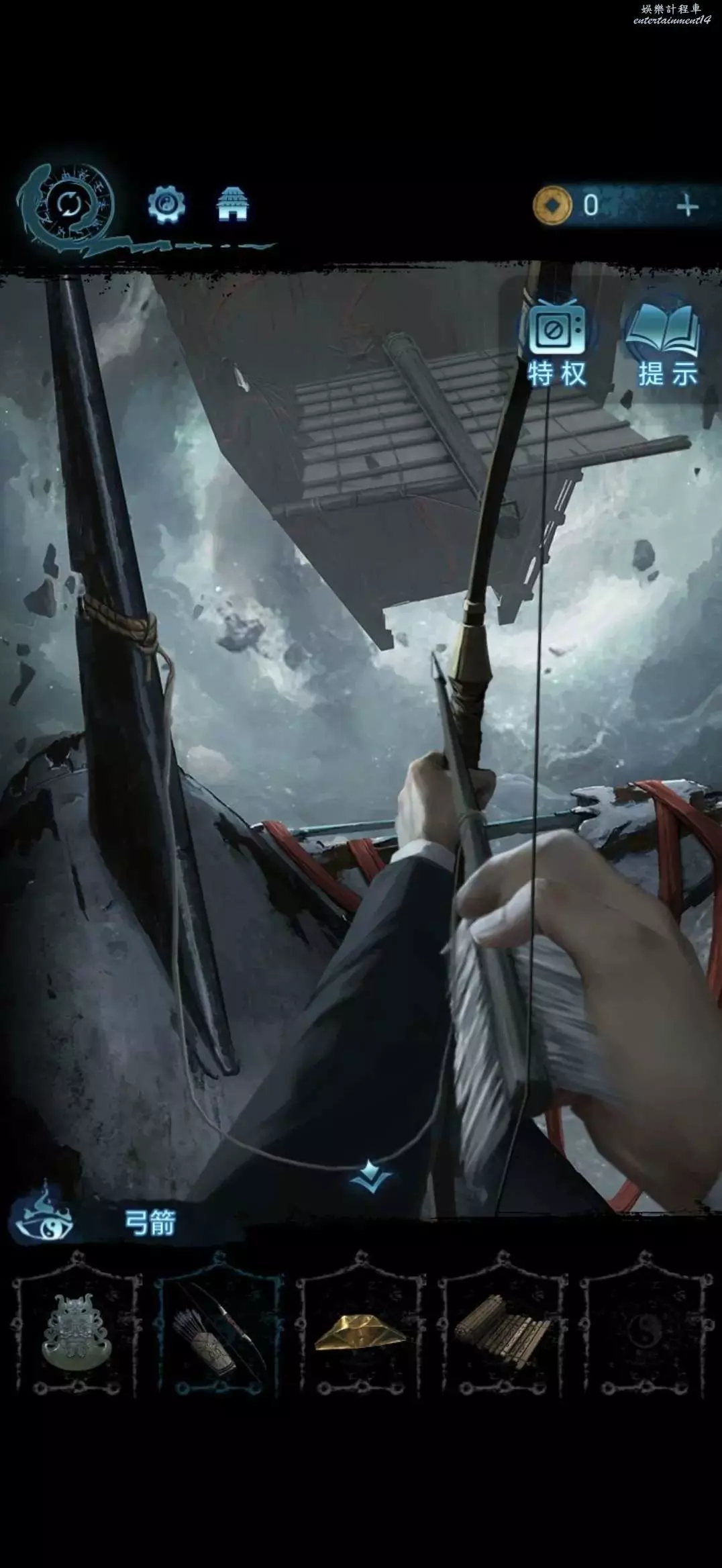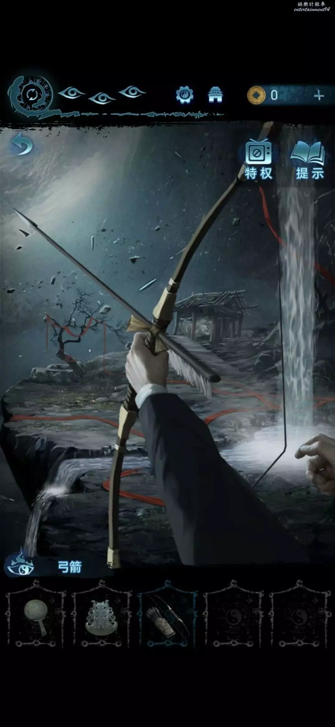 點擊中間的跪地雕像,獲得弓箭
