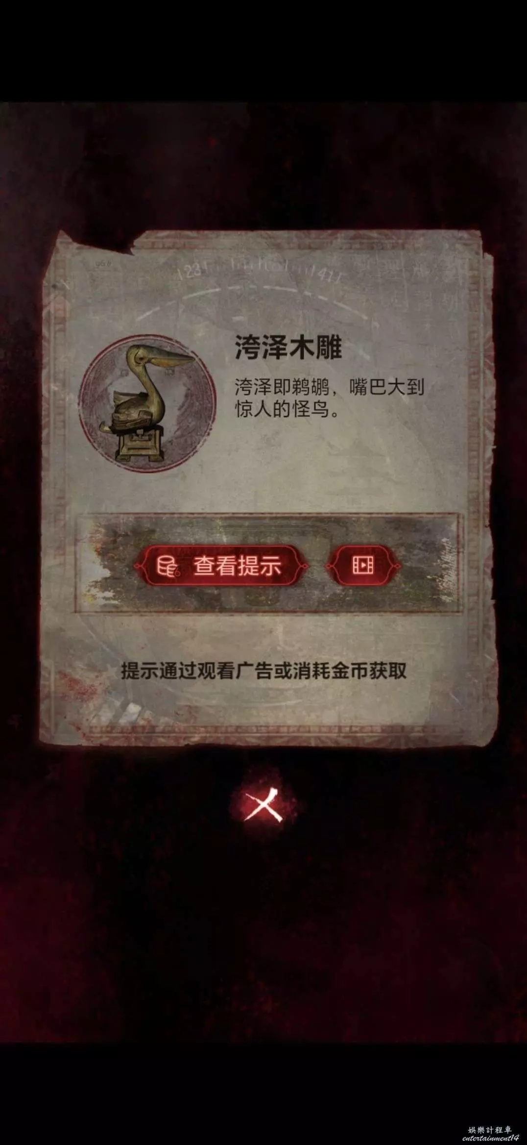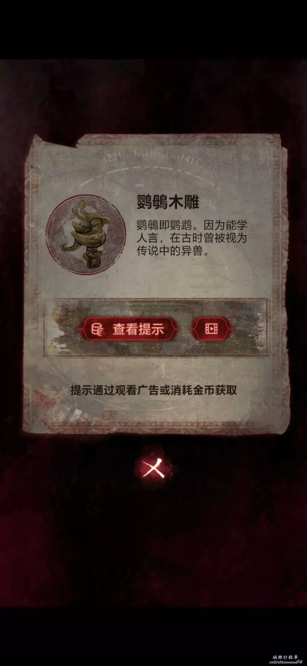 切換肖視角根據大樓前的迷宮配合奚視角,讓奚撿東西,奚獲得羅漢像,到達地動儀和銅鼎,將木塊放到拼圖上,做拼圖遊戲,做完獲得鸚鵡木雕和古幣