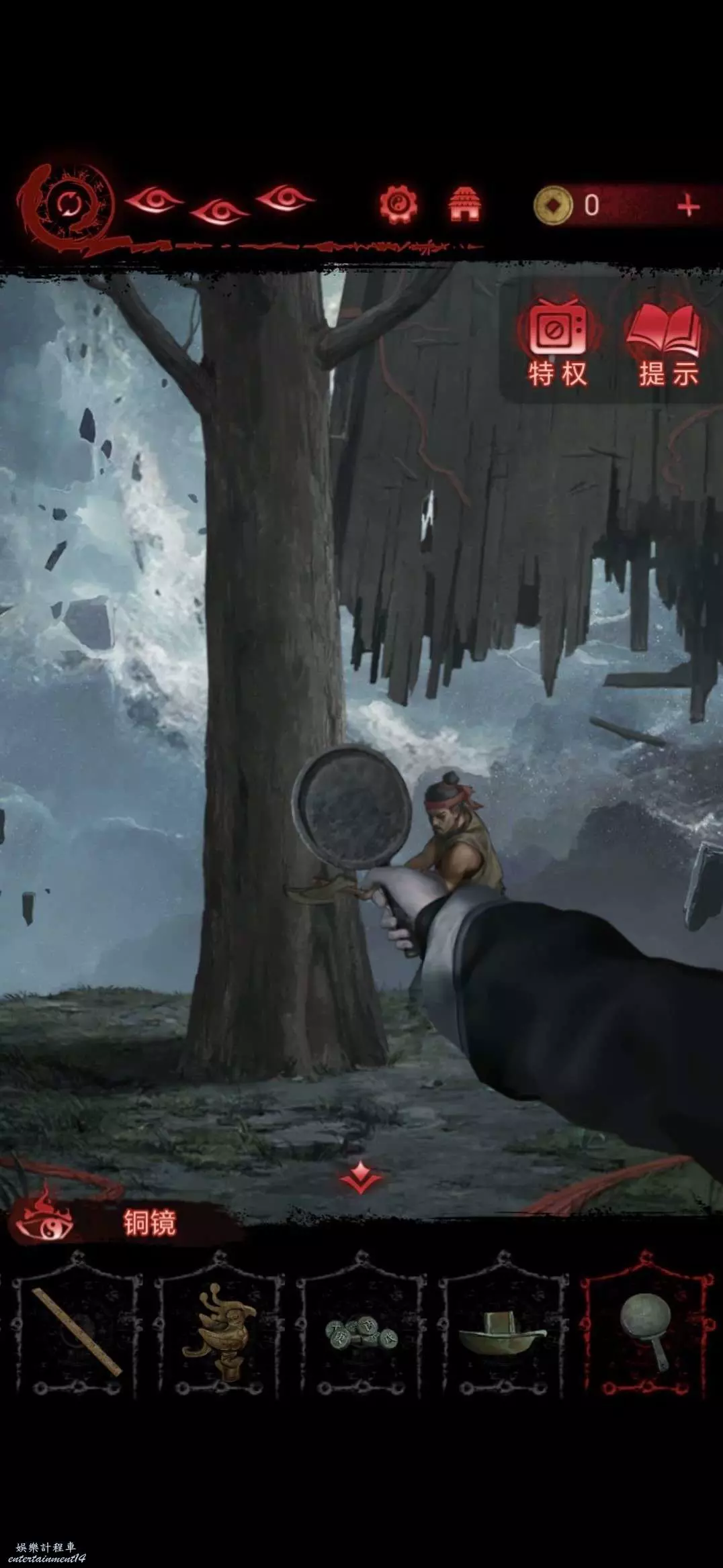 切換肖視角,將銅鏡傳送至奚視角,奚獲得銅鏡,用銅鏡照射迷宮出口處大樹,獲得圓滿願