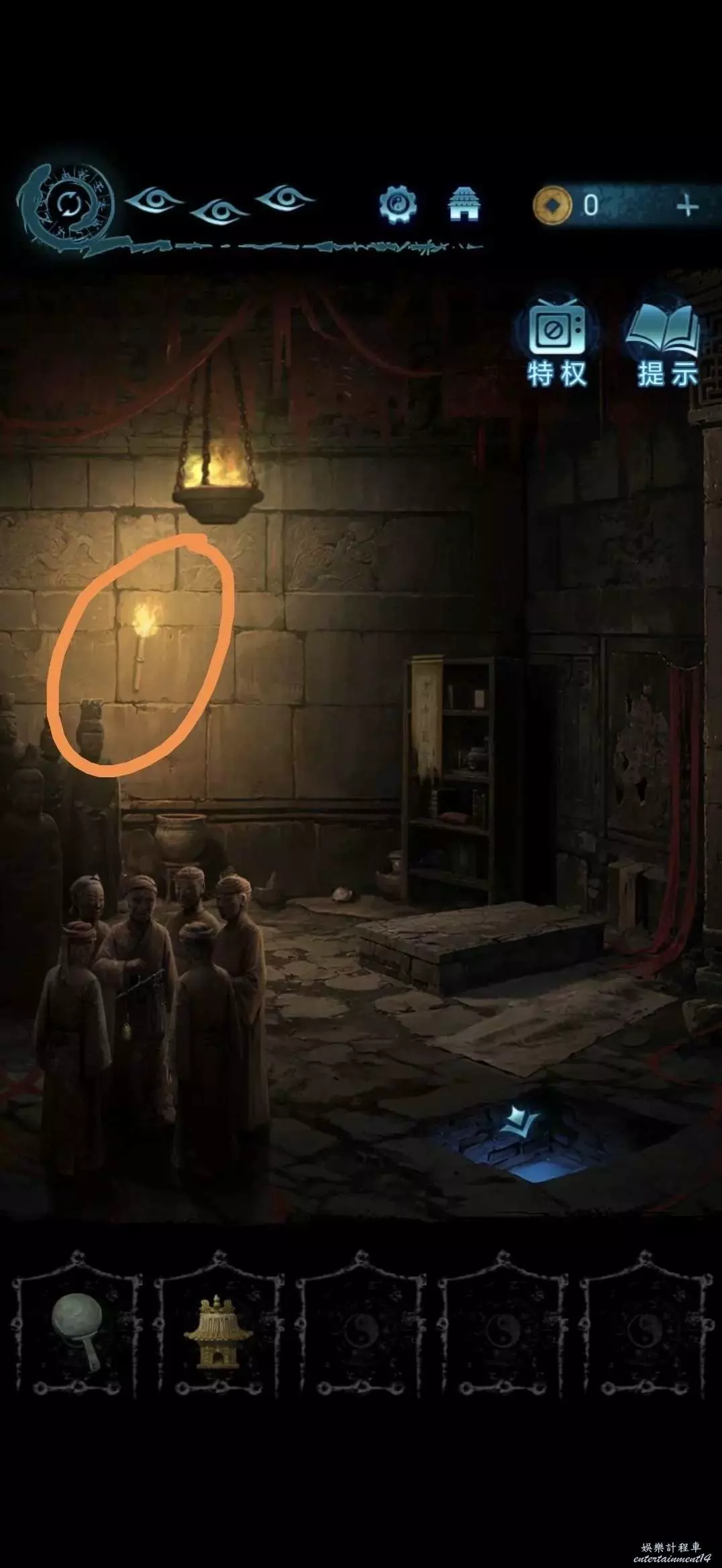 根據線索,可擺放左下方雕像方位,擺放完地道開啟