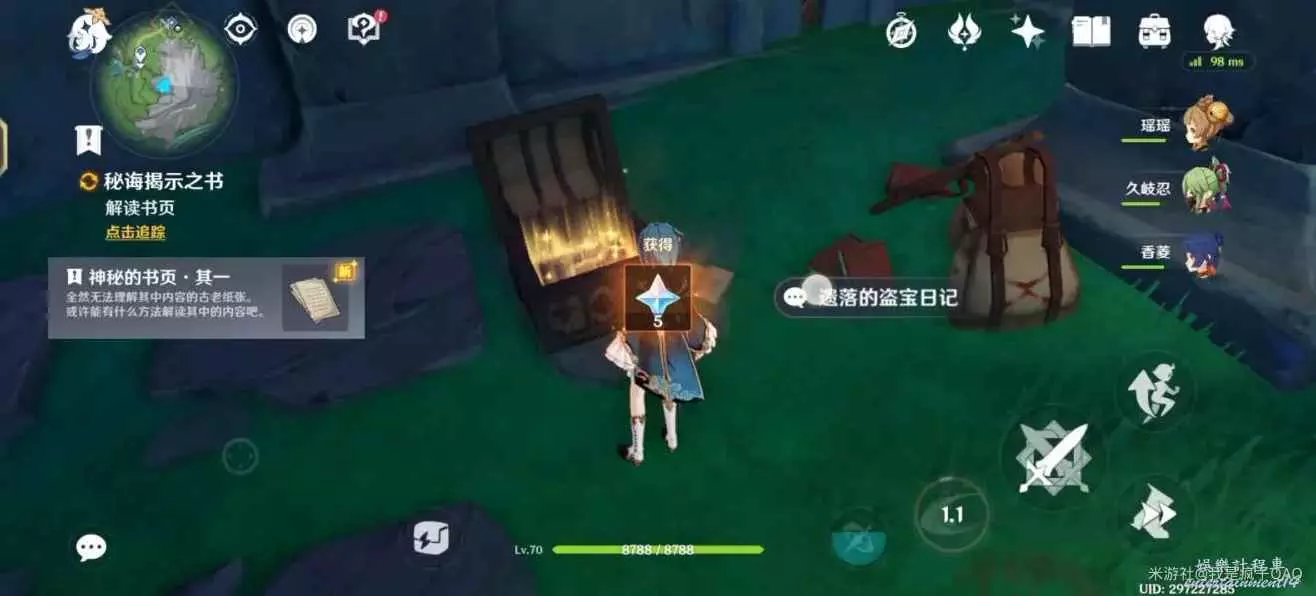 然後利用水晶解密,開啟寶箱,獲得書頁