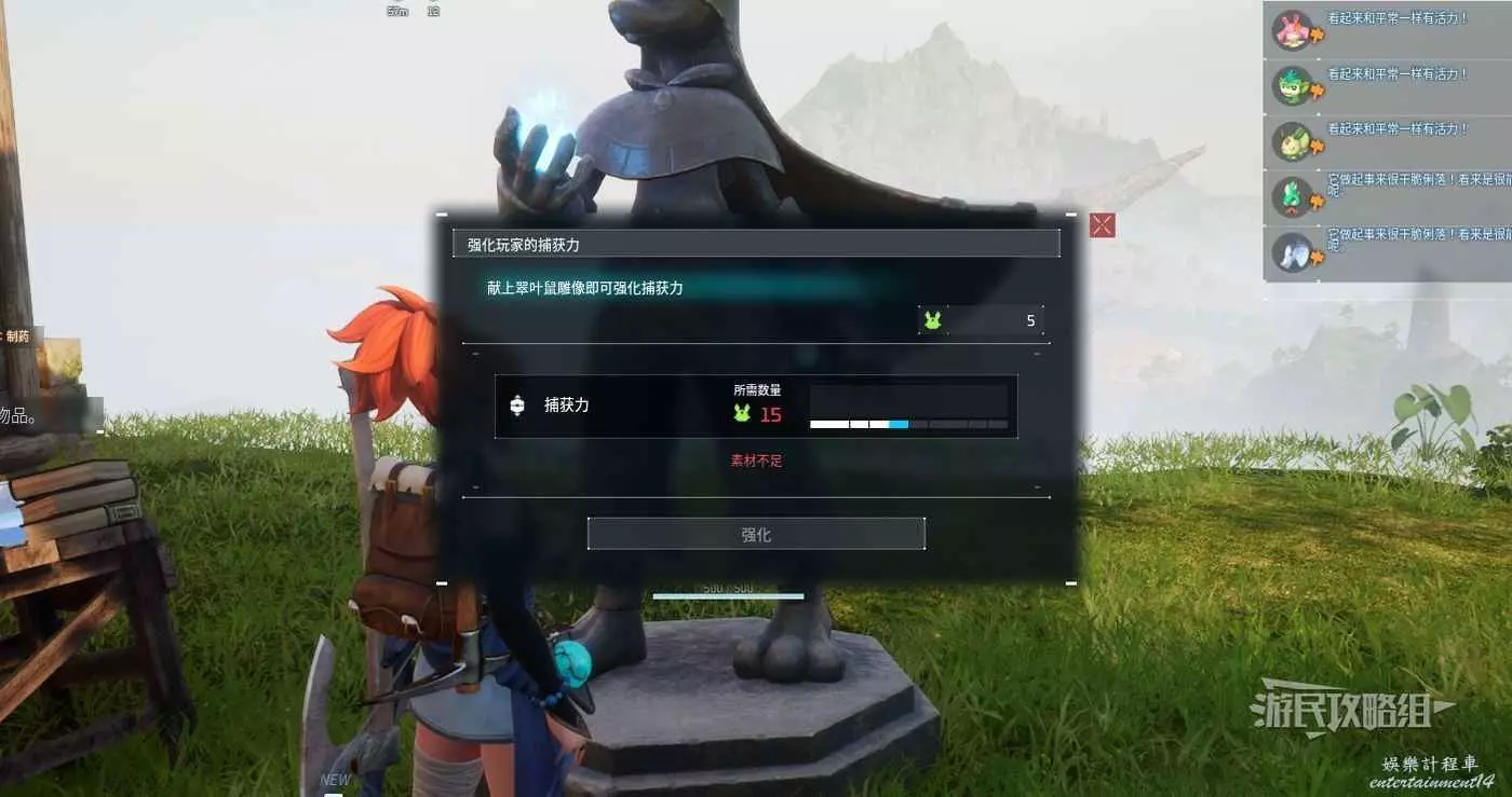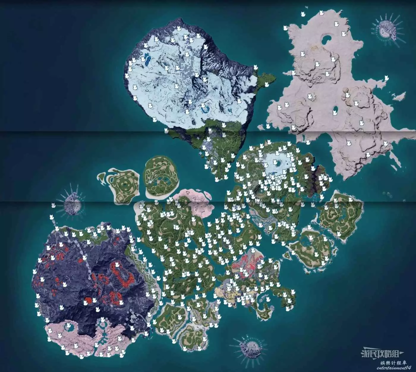 幻獸帕魯 (PalWorld) 翠葉鼠雕像位置地圖 24 1 月 2024-01-24 廣告 作者:瑞破受氣包 來源:遊民星空 翠葉鼠雕像是閃著綠色光芒的小型雕像,分佈在地圖的各個角落,調查即可獲得翠葉鼠雕像。推薦在夜晚收集,夜晚時會發出很亮的綠色光芒,非常顯眼。翠葉鼠雕像不會重置,收集之後不會刷新,因此無法在同一個地點多次收集。 收集翠葉鼠雕像之後,可以在據點中建造【力量石像】(需要Lv6解鎖),建造之後與力量石像互動,即可提交特定數量的翠葉鼠石像來提升捕獲力。 翠葉鼠雕像分佈地圖
