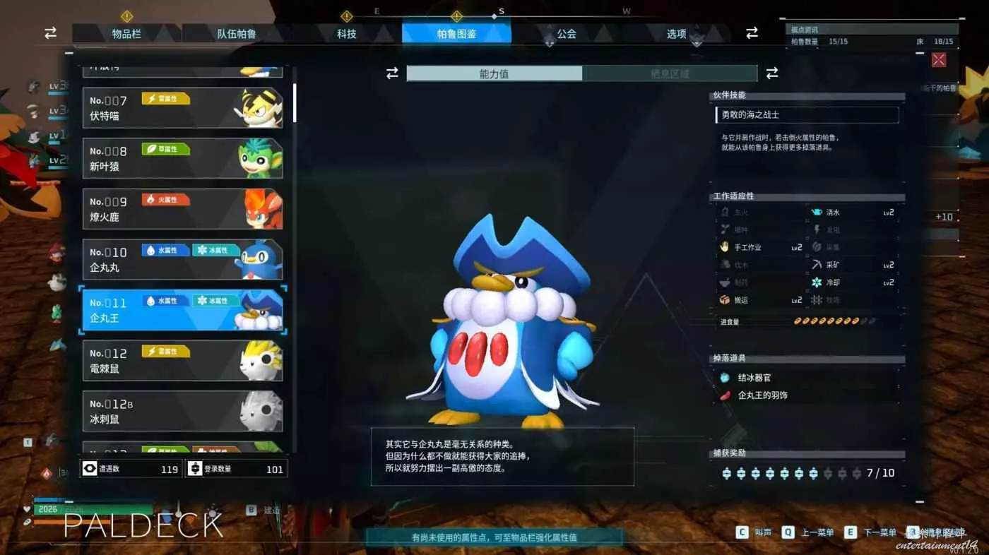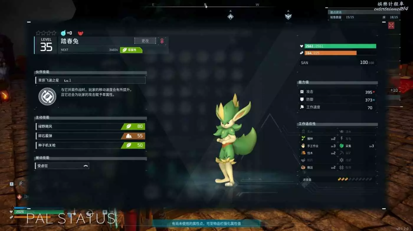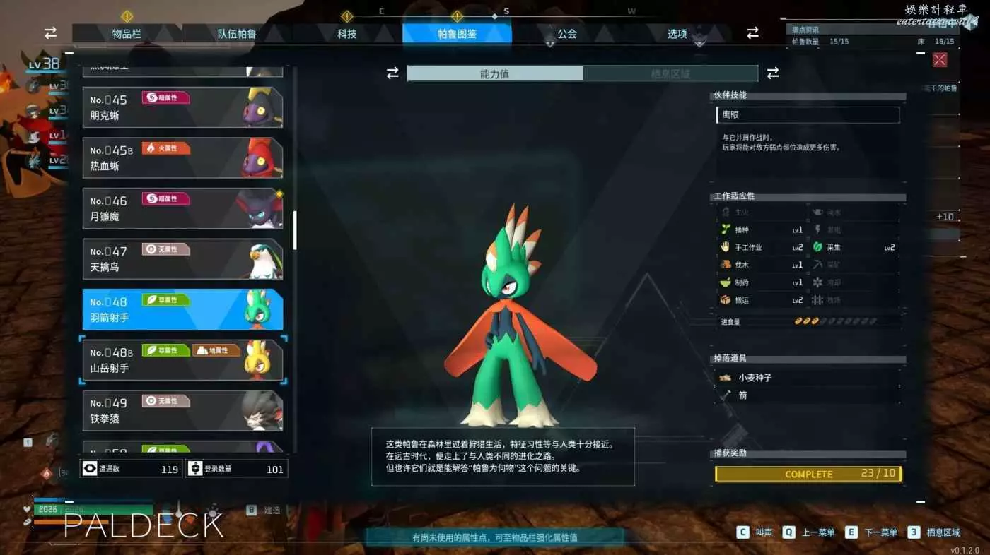 2. 吃的少幹的多(這裡點名企丸王)食量只有3點,但技能卻有播種2、伐木2、手工3、採集3、伐木2、搬運2。綜合來看強於所有其他多工種帕魯。