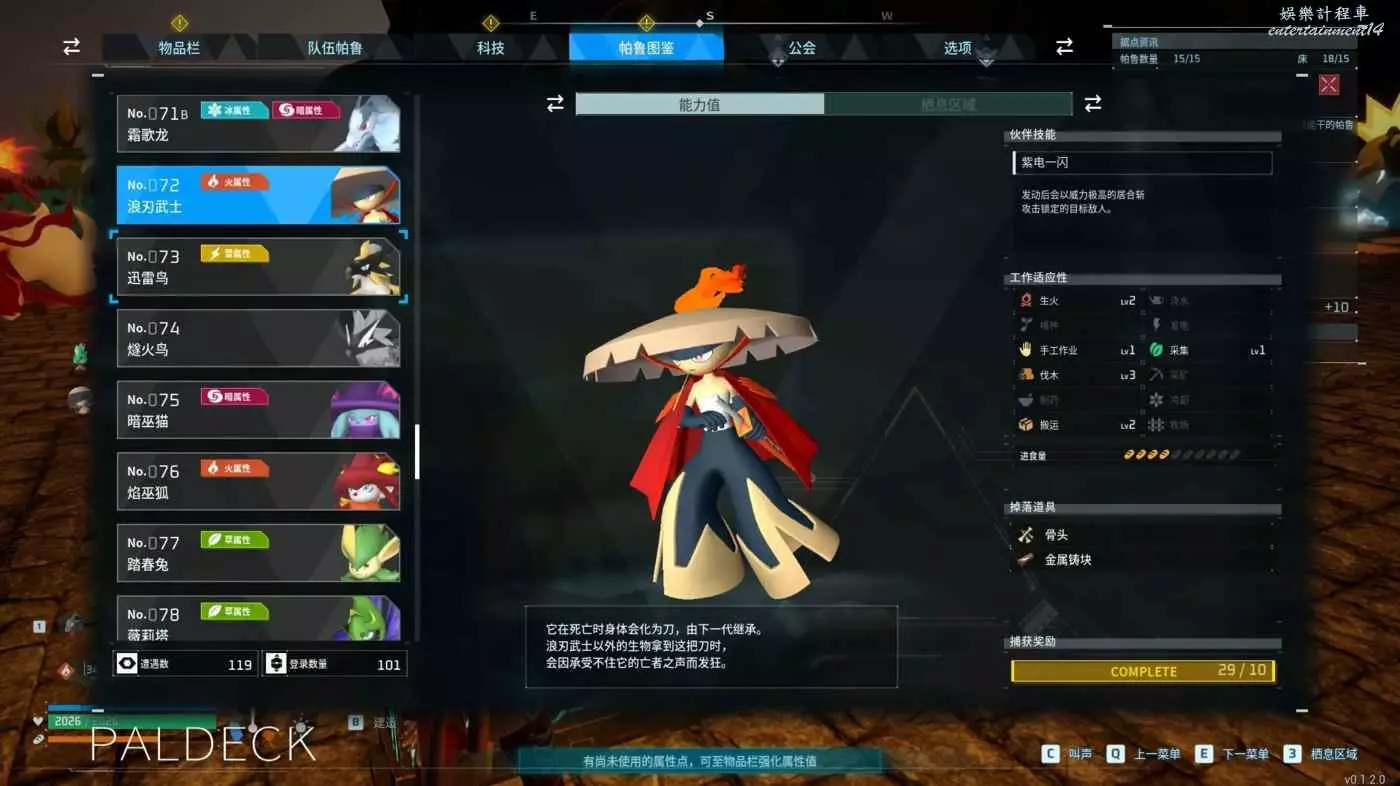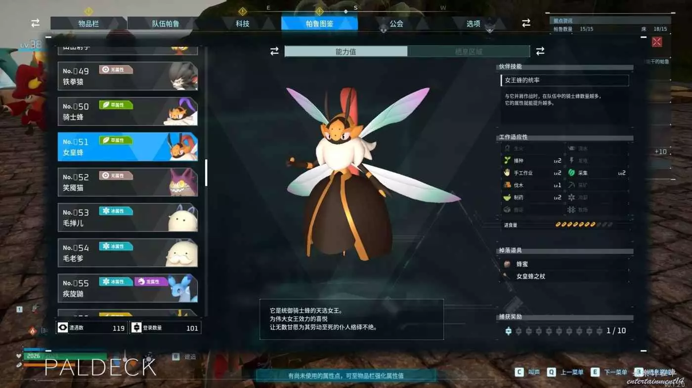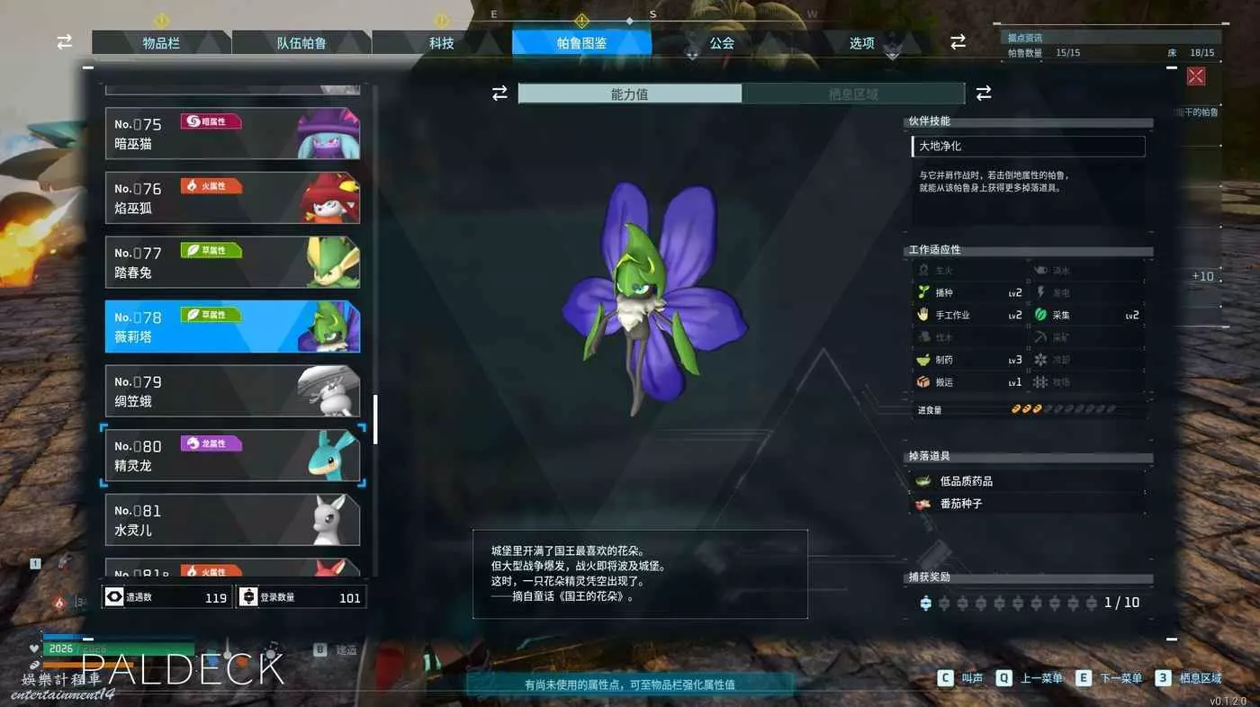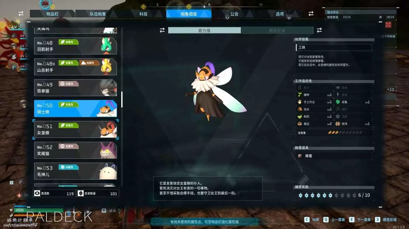 2. 吃的少幹的多(這裡點名企丸王)食量只有3點,但技能卻有播種2、伐木2、手工3、採集3、伐木2、搬運2。綜合來看強於所有其他多工種帕魯。