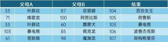 當計算結果在繁殖力位於兩隻帕魯正中間時,會生出繁殖力大的哪一隻,比如說(浪刃武士+雲海鹿)/2=810,位於疾旋鼬(800)和花冠龍(820)之間,最終會繁殖出花冠龍。