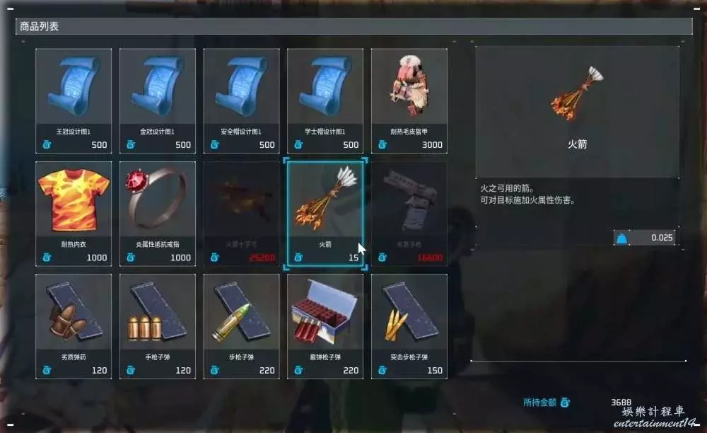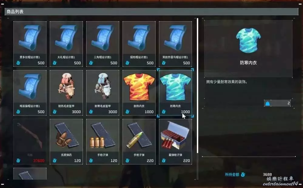 綠衣流浪商人出售設計圖、耐熱裝備、飾品、彈藥。