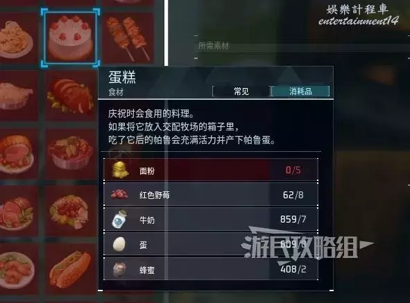 ③在料理鍋選擇製作蛋糕,使用生火適應性等級較高的帕魯來烹飪,縮短製作時間