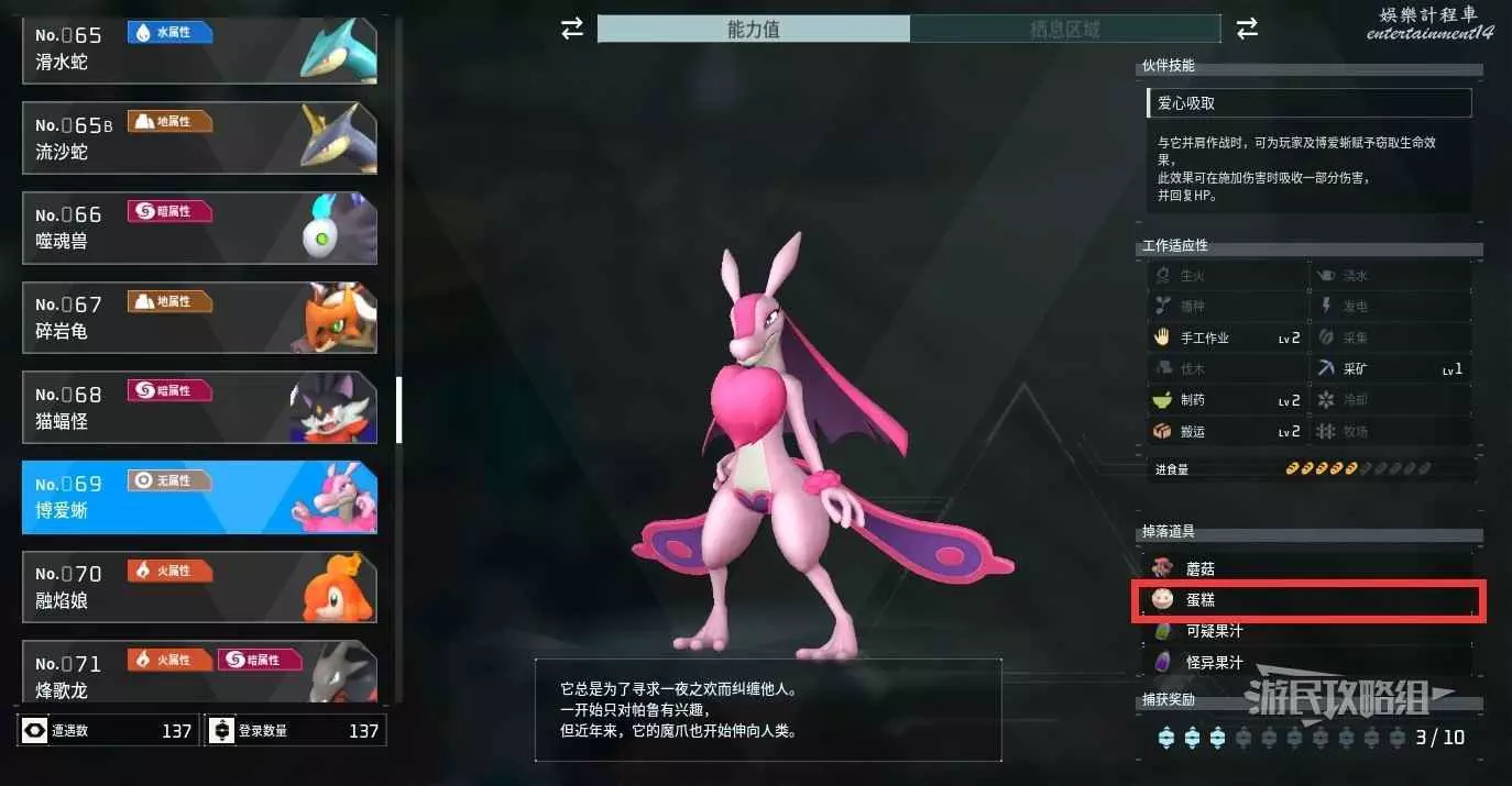 擊敗或捕捉博愛蜥有幾率掉落蛋糕,但幾率非常低,不建議通過此方式收集。