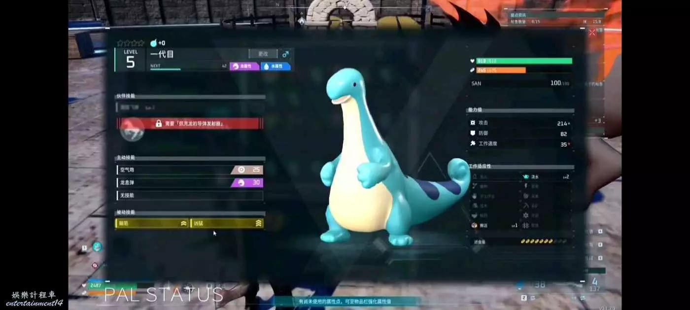 這隻兇猛腦筋的佩克龍也可以作為前期的戰力,克制十分常見的火系和暗系的帕魯。
