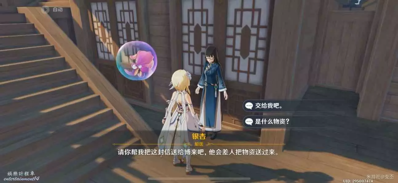 跟銀杏對話,詢問有什麼需要幫忙,需要我們送信給博來
