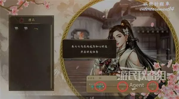 多送禮,親密度達到“知心好友”時,觸發好友任務“才女朱七七”。